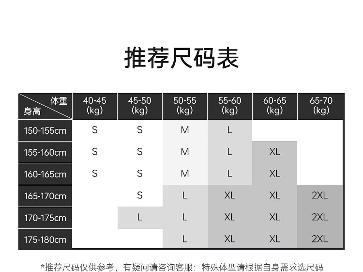 China (cm) 160-165/84-86 165-170 / 88-90 167-172 / 92-96 168-173 / 98-102 170-176 / 106-110