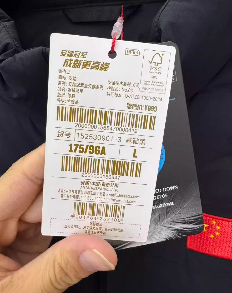Anta Champion All-Weather Series 2025 Autumn Men's Slim Fit Stand Collar down Vest 152530901