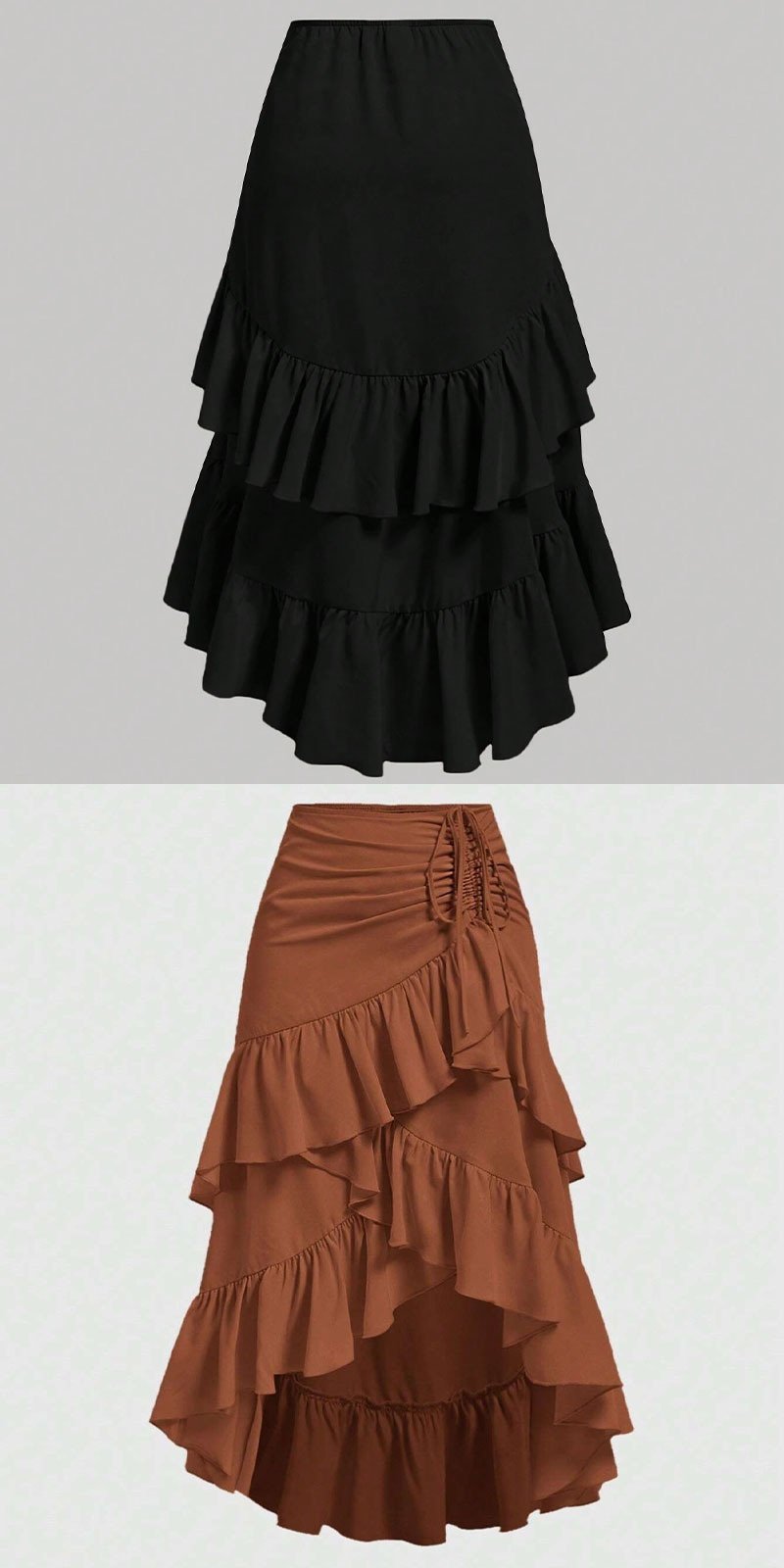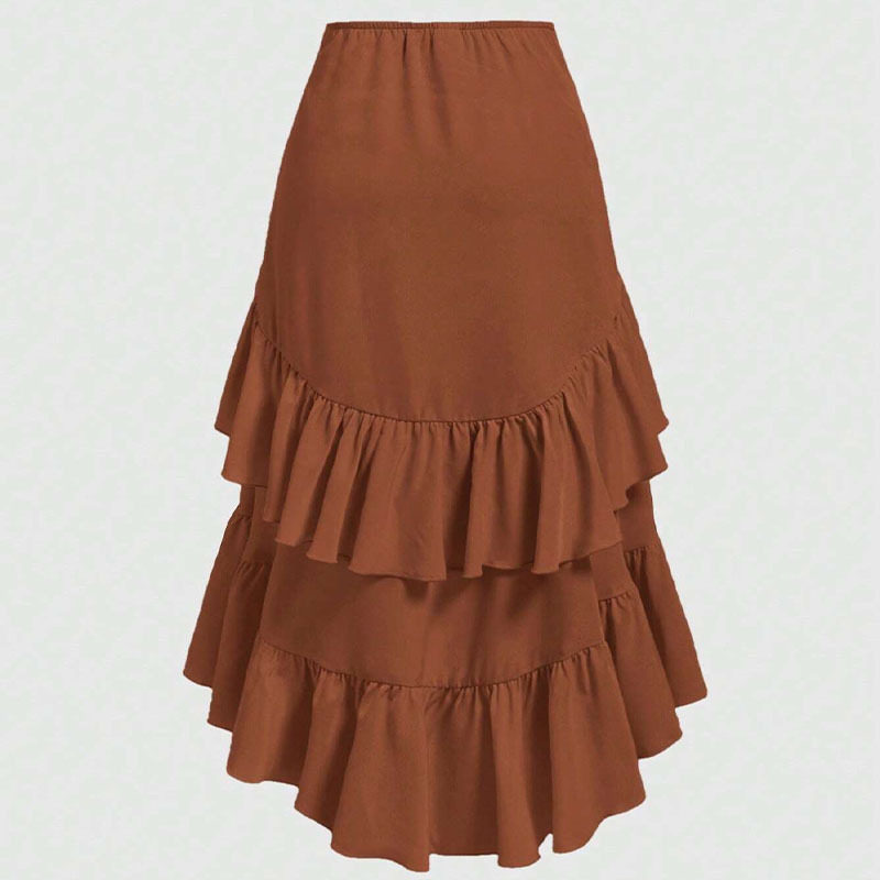 2025 European and American New Style Amazon New Irregular Sweet Style Layered Ruffle Tie Skirt