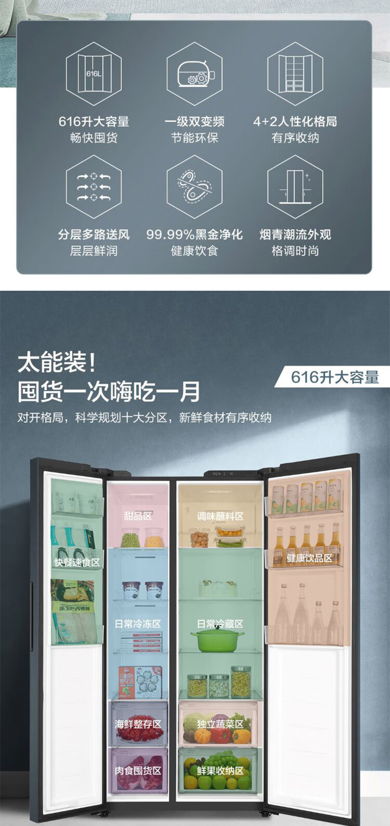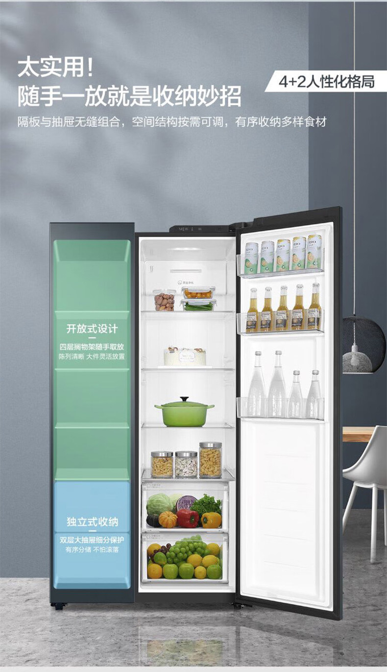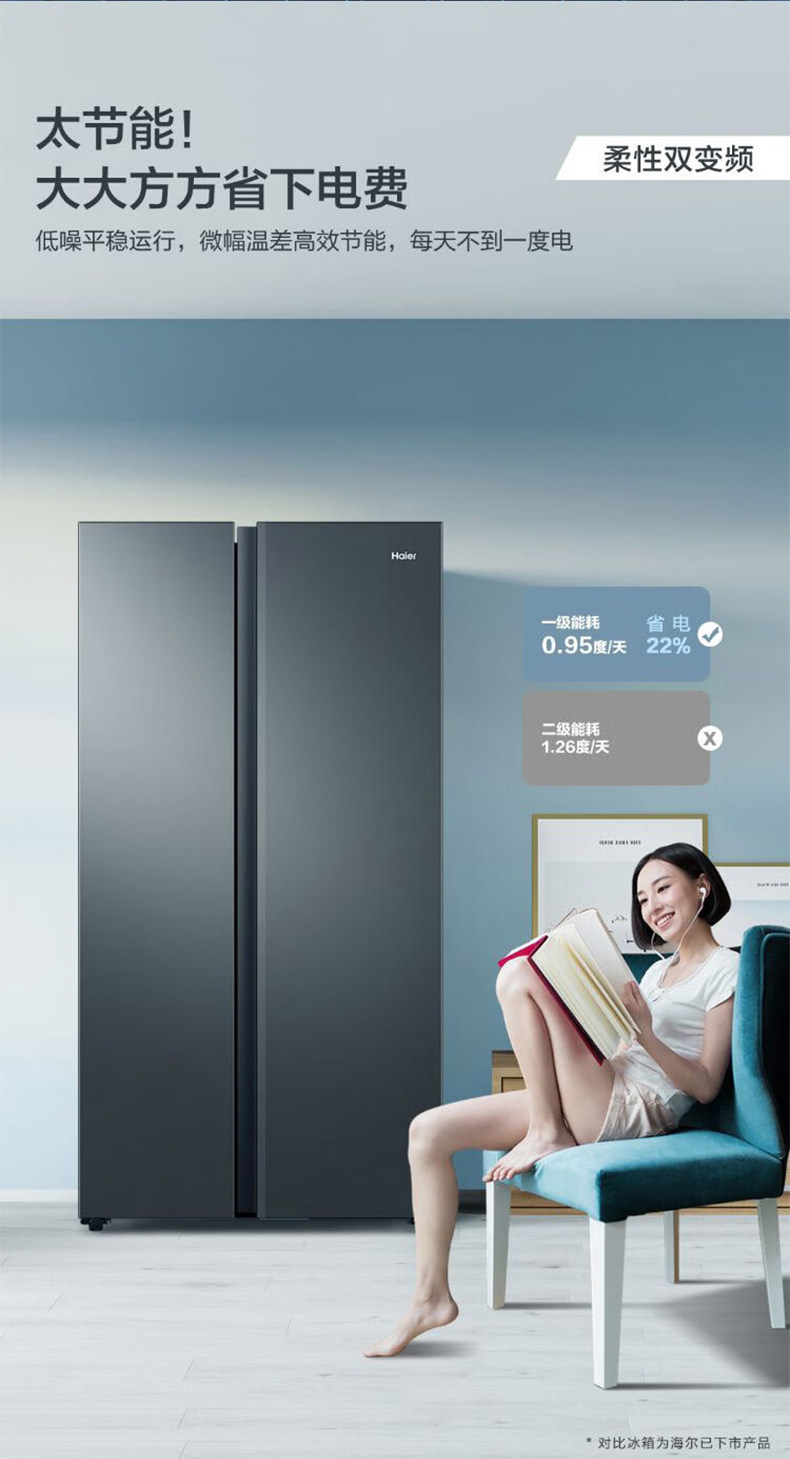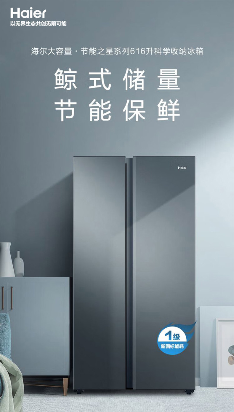 Haier refrigerator 616L large-capacity double-door household first-class energy-saving frequency conversion embedded air-cooled frost-free