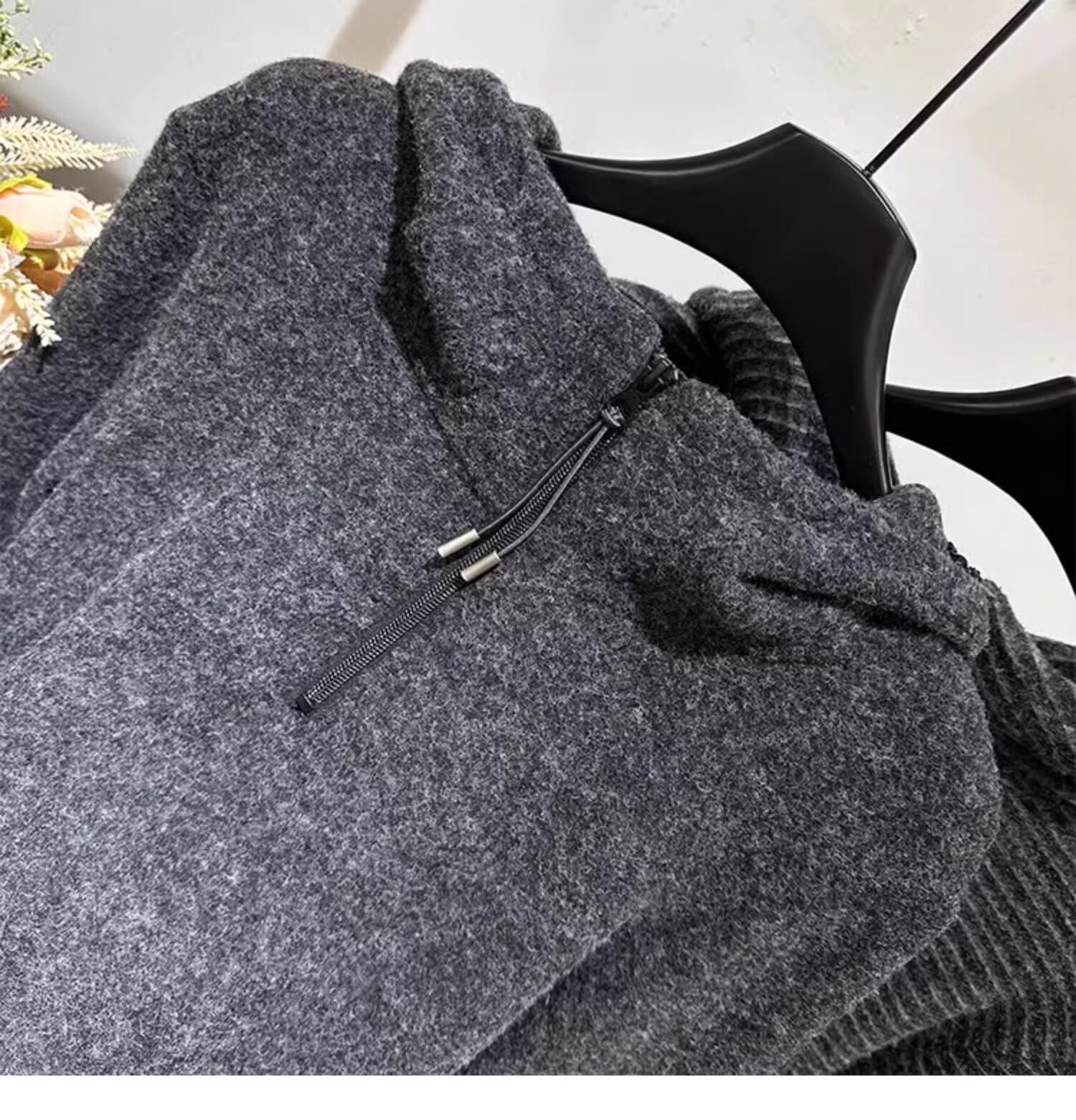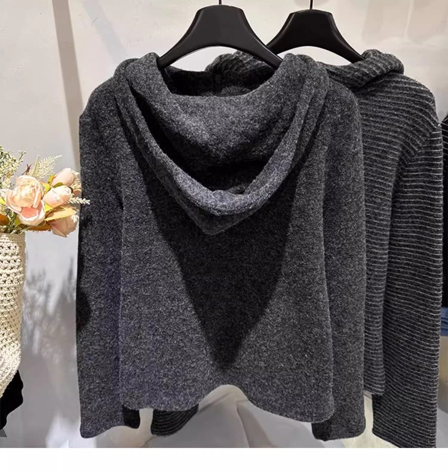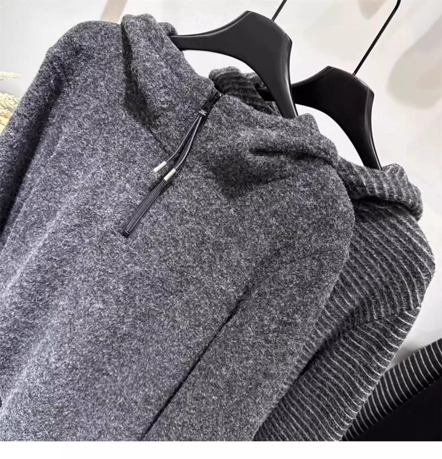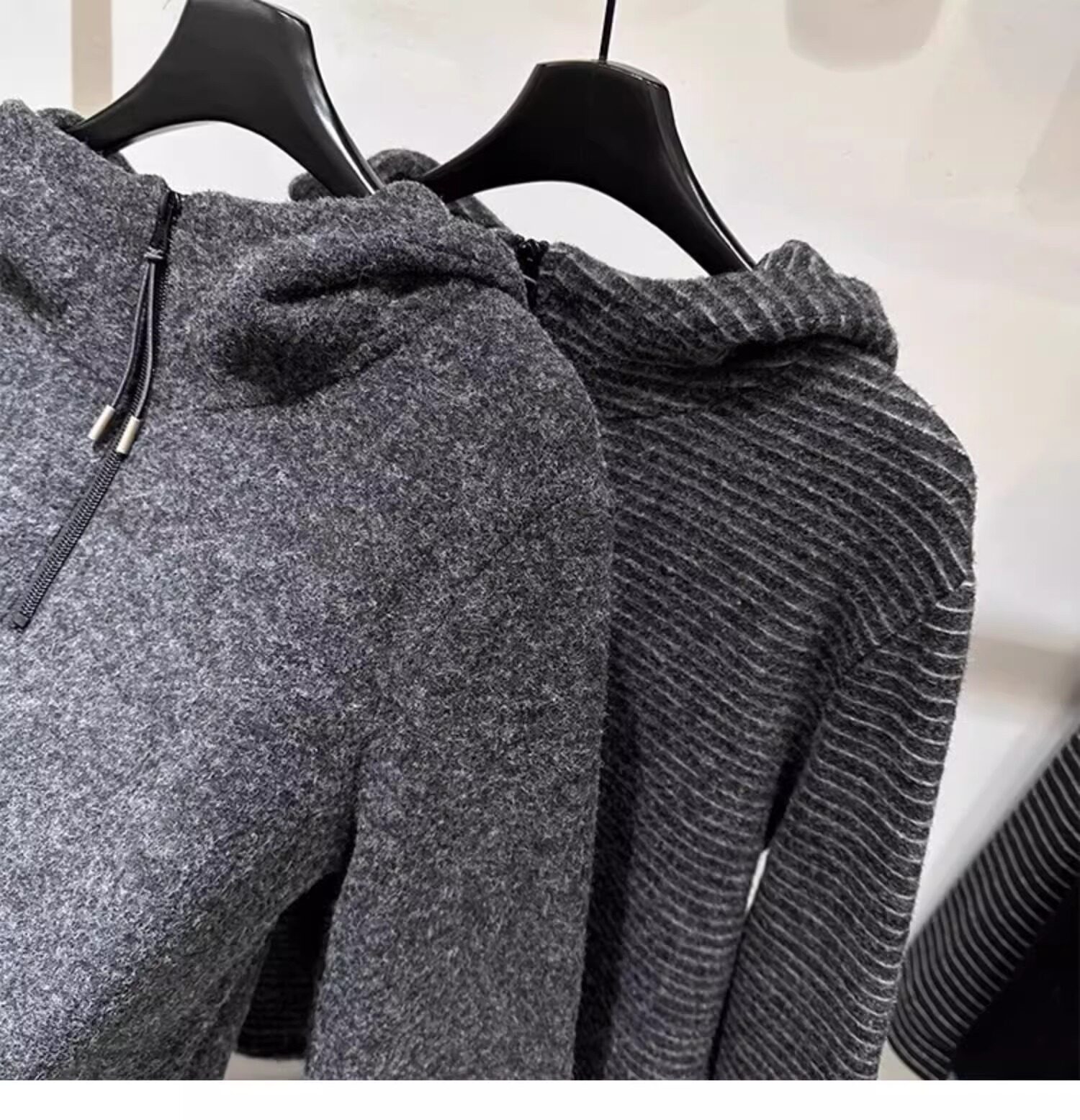 Gray striped hooded zippered brushed long-sleeved T-shirt for women in autumn and winter, high-quality inner layering, lazy sweatshirt top