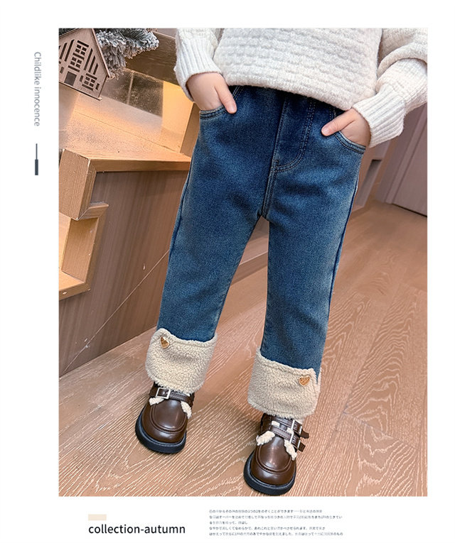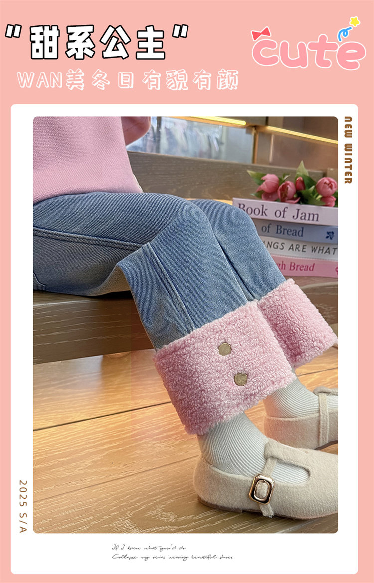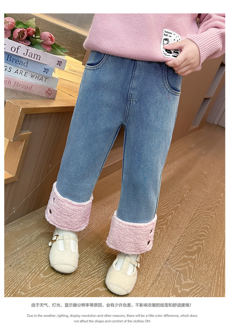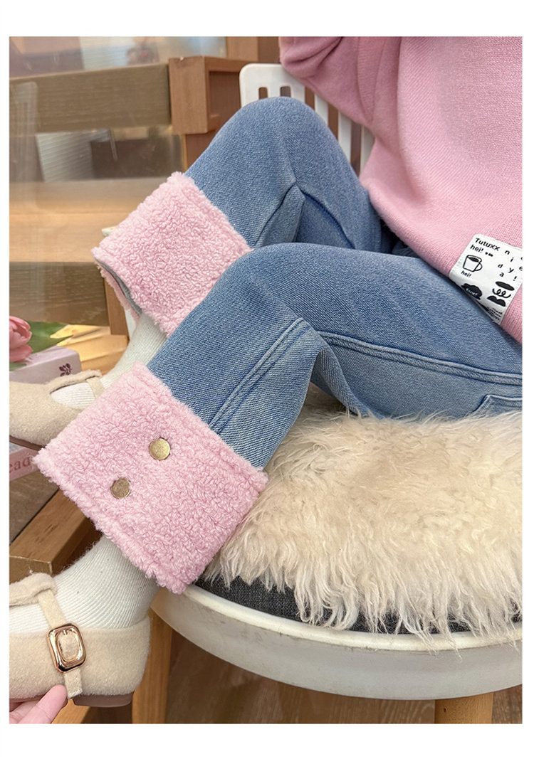 [One-Piece Fleece]Girls' Fleece-Lined Jeans 2025 Autumn and Winter New Style, Super Stylish, Thin Fleece, Thickened Pants, Trendy