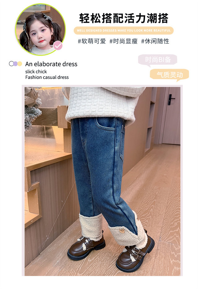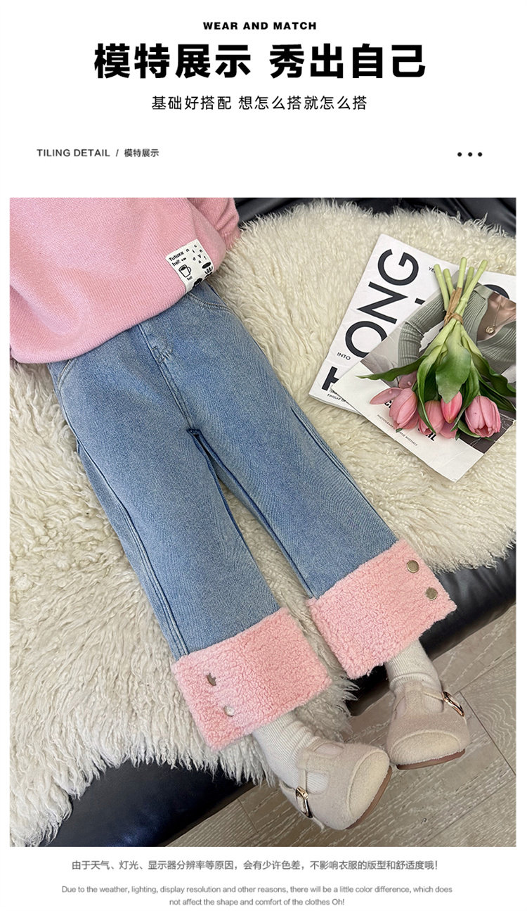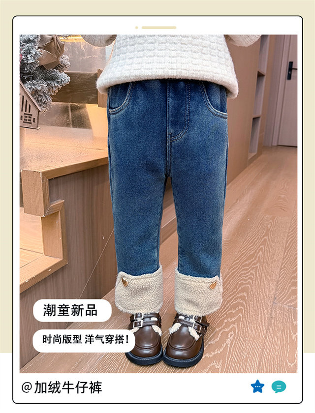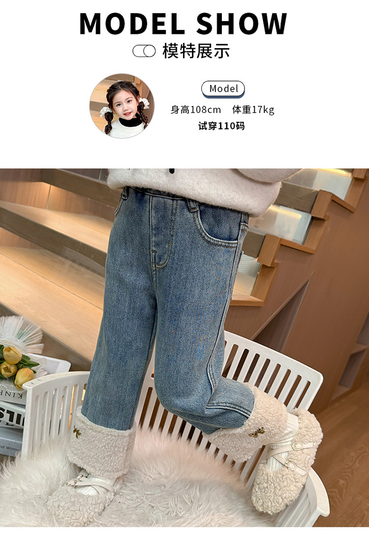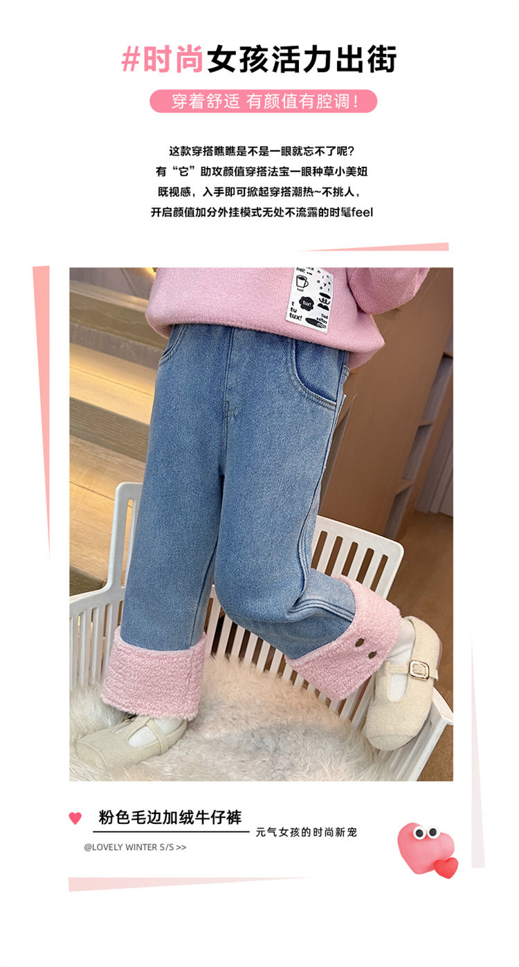 [One-Piece Fleece]Girls' Fleece-Lined Jeans 2025 Autumn and Winter New Style, Super Stylish, Thin Fleece, Thickened Pants, Trendy