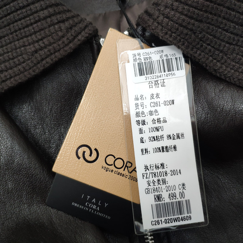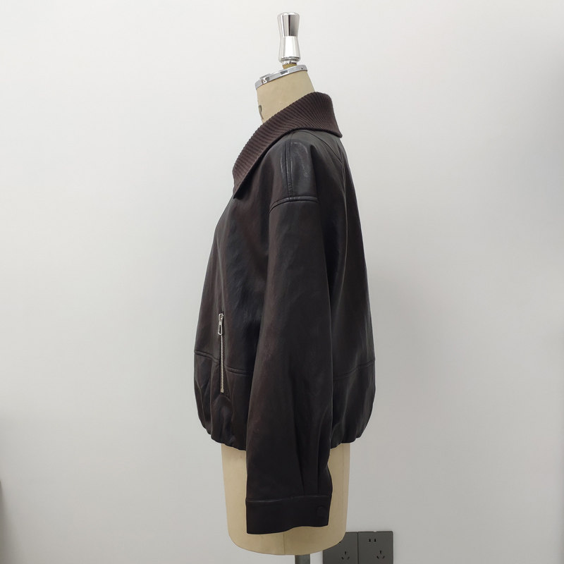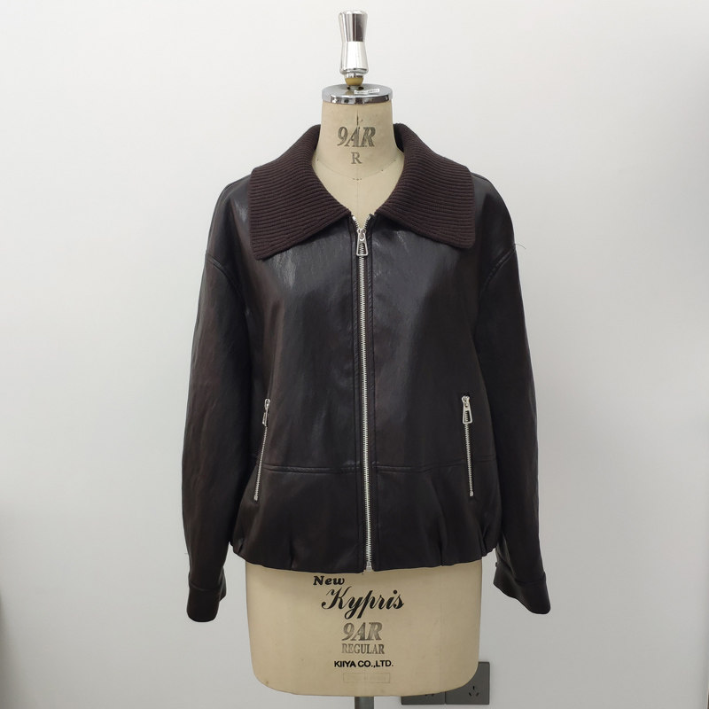 2026 shopping mall same style spring new women's clothing c261-020w fashionable cora knitted collar pu leather casual jacket