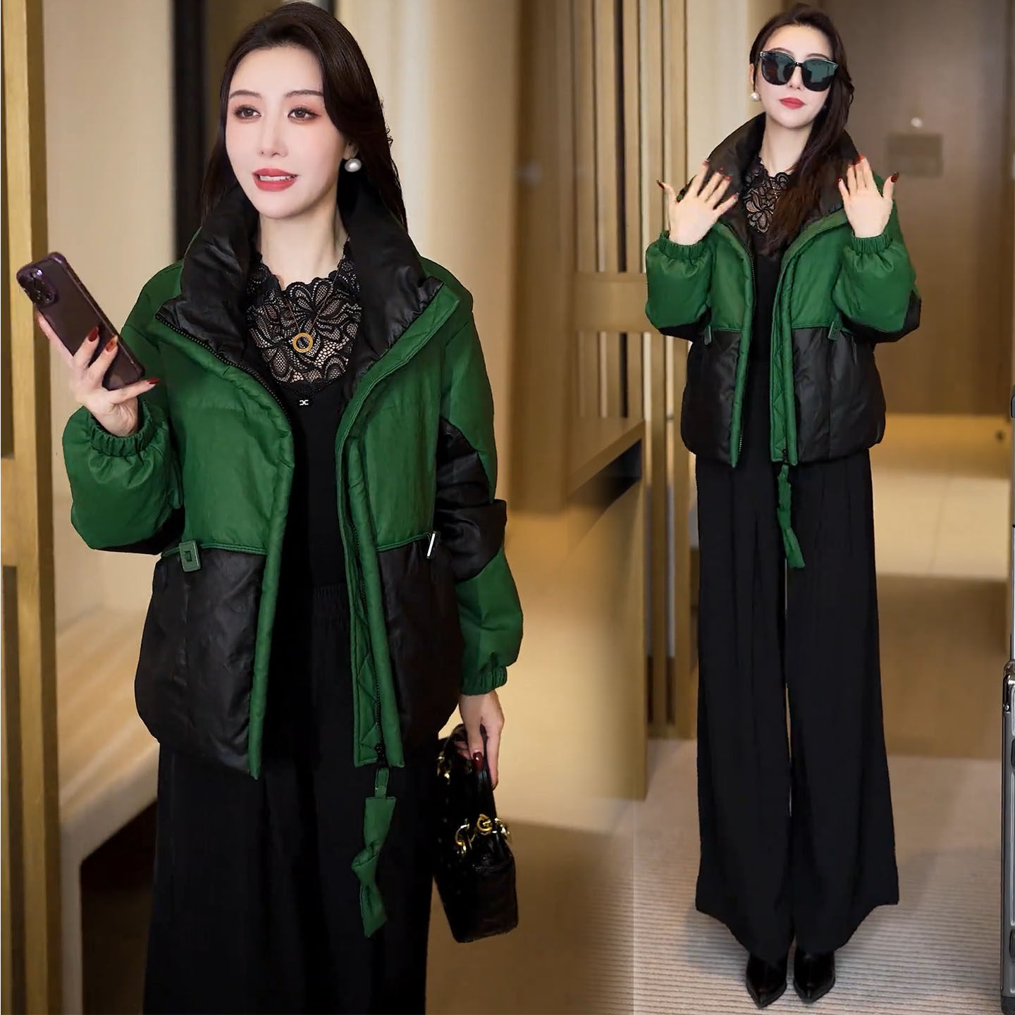 Counter down jacket 2025 winter new fashion casual color matching bread jacket thickened warm short cotton jacket