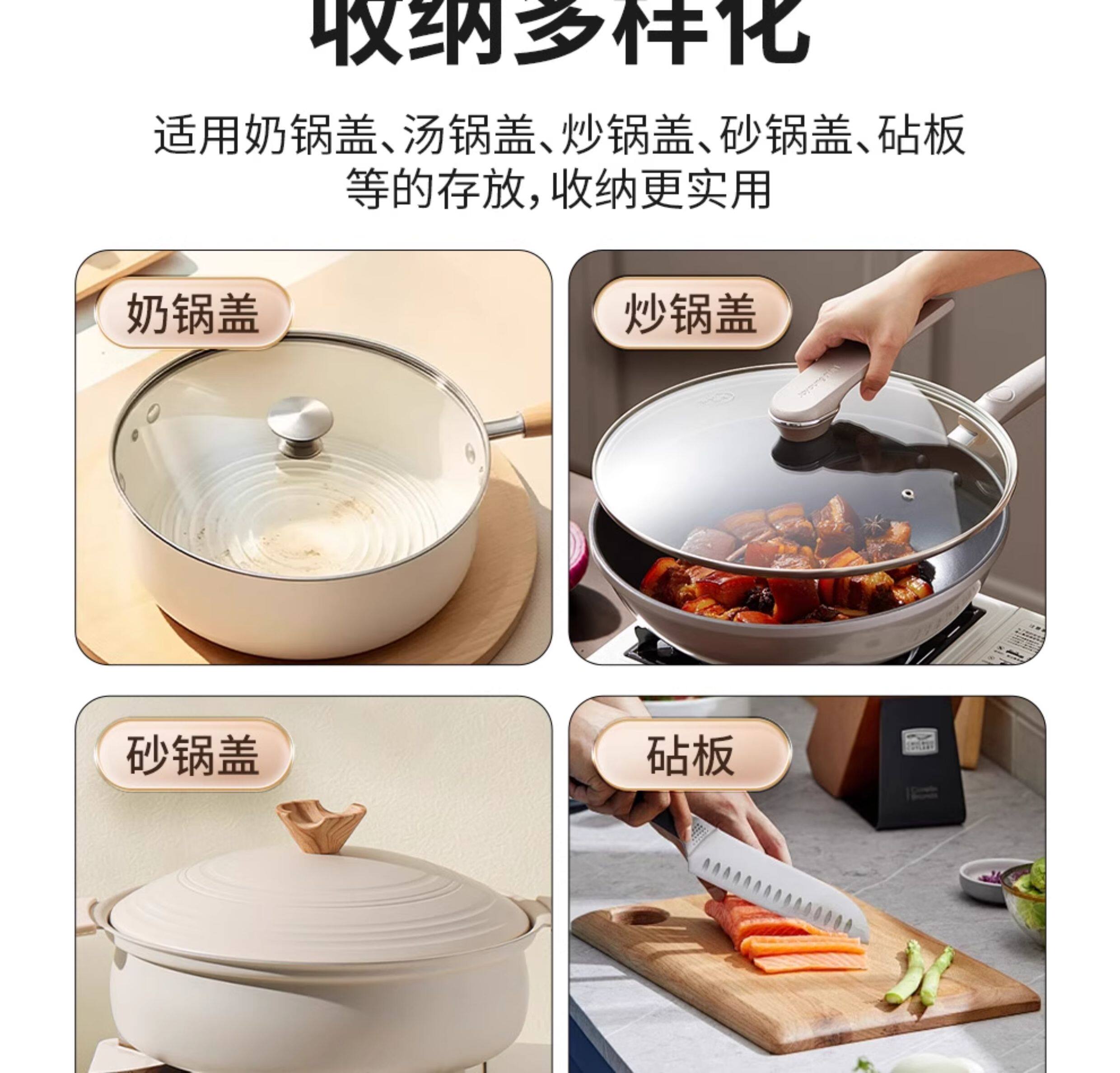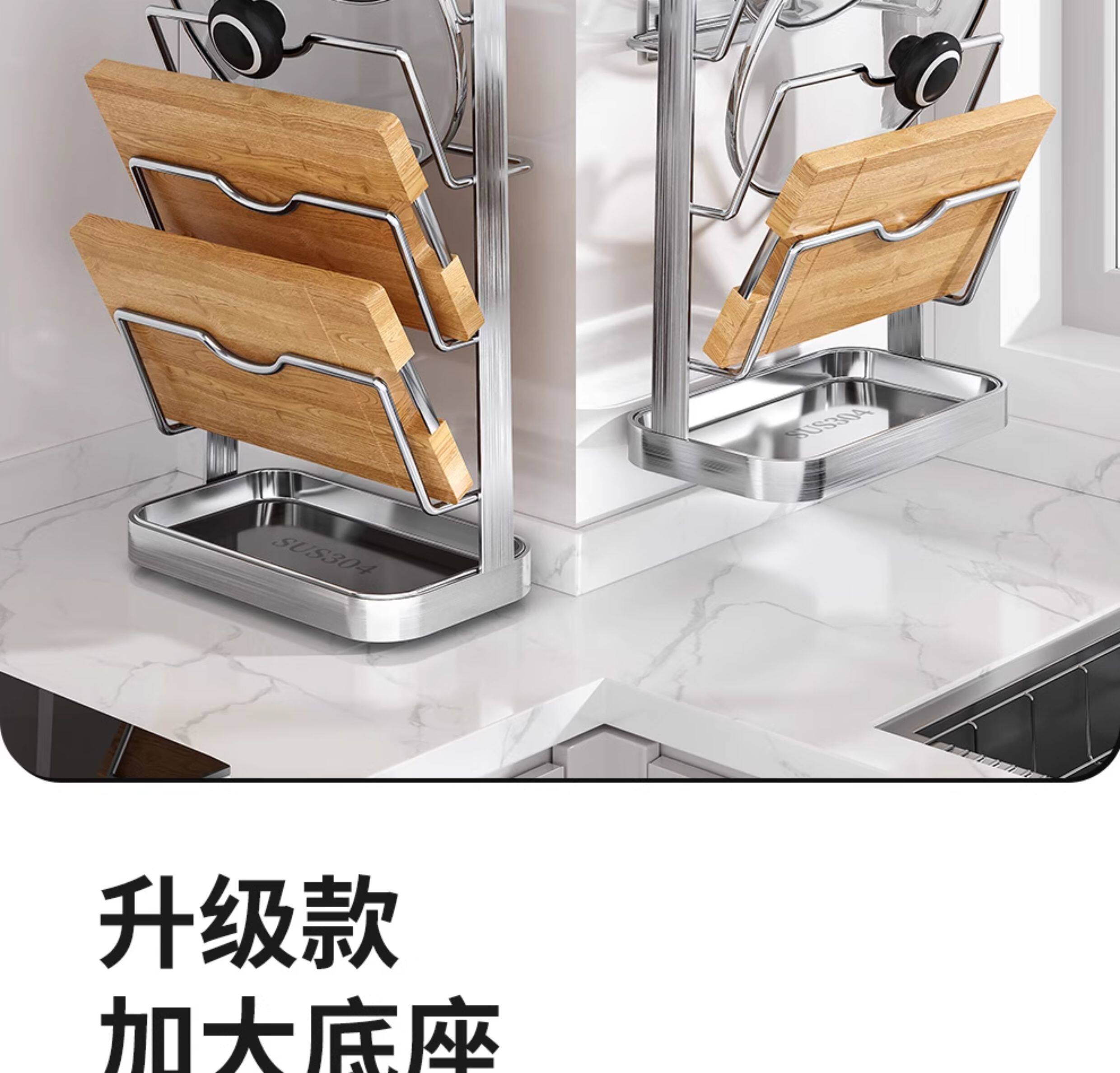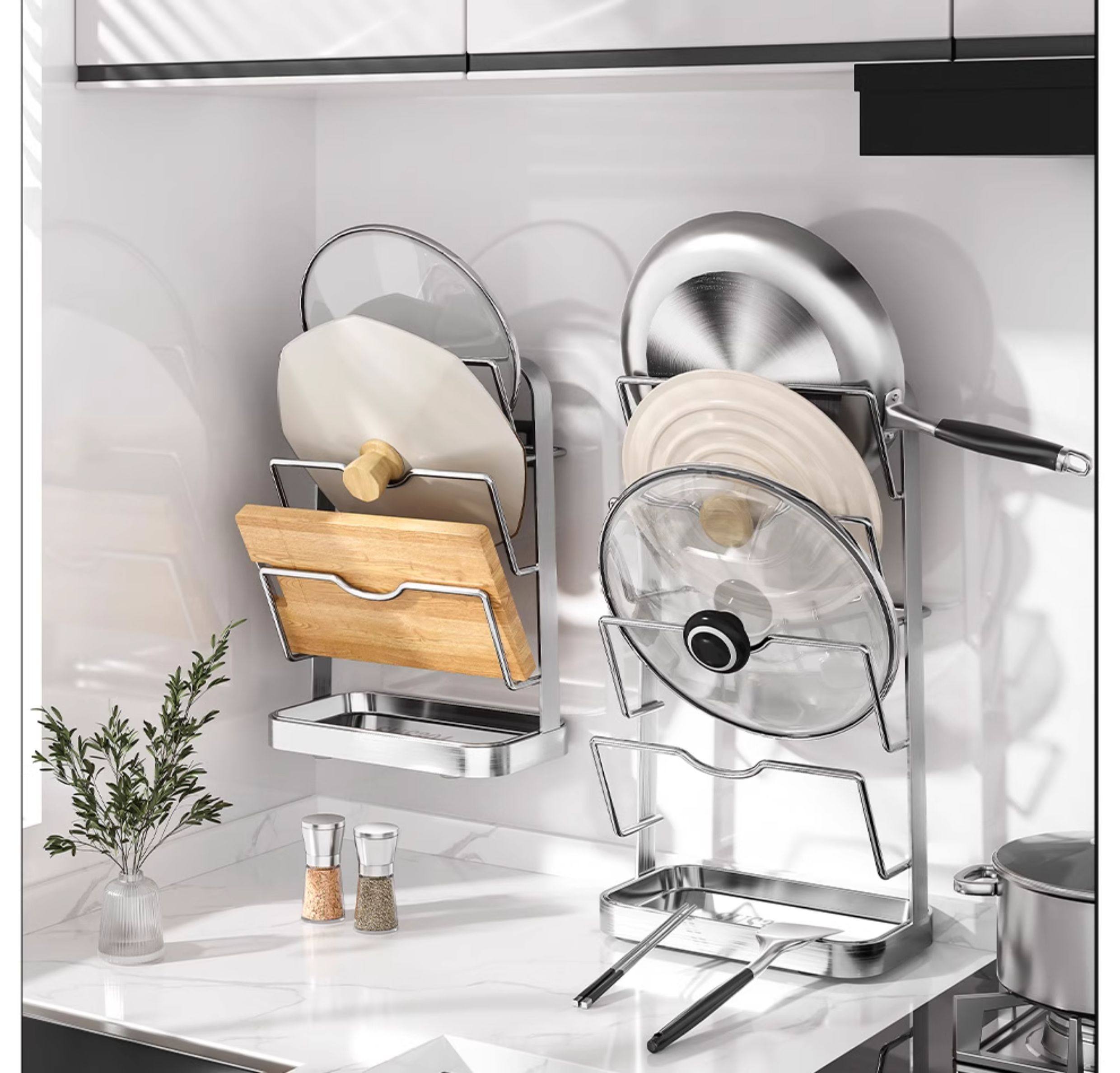 Japanese 304 Stainless Steel Pot Lid Rack Kitchen Storage Rack Wall-Mounted No-Drill Multifunctional Countertop Pot Lid Organizer