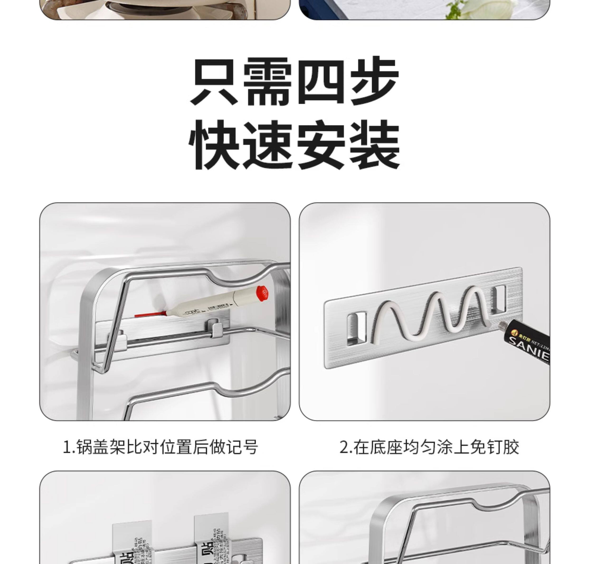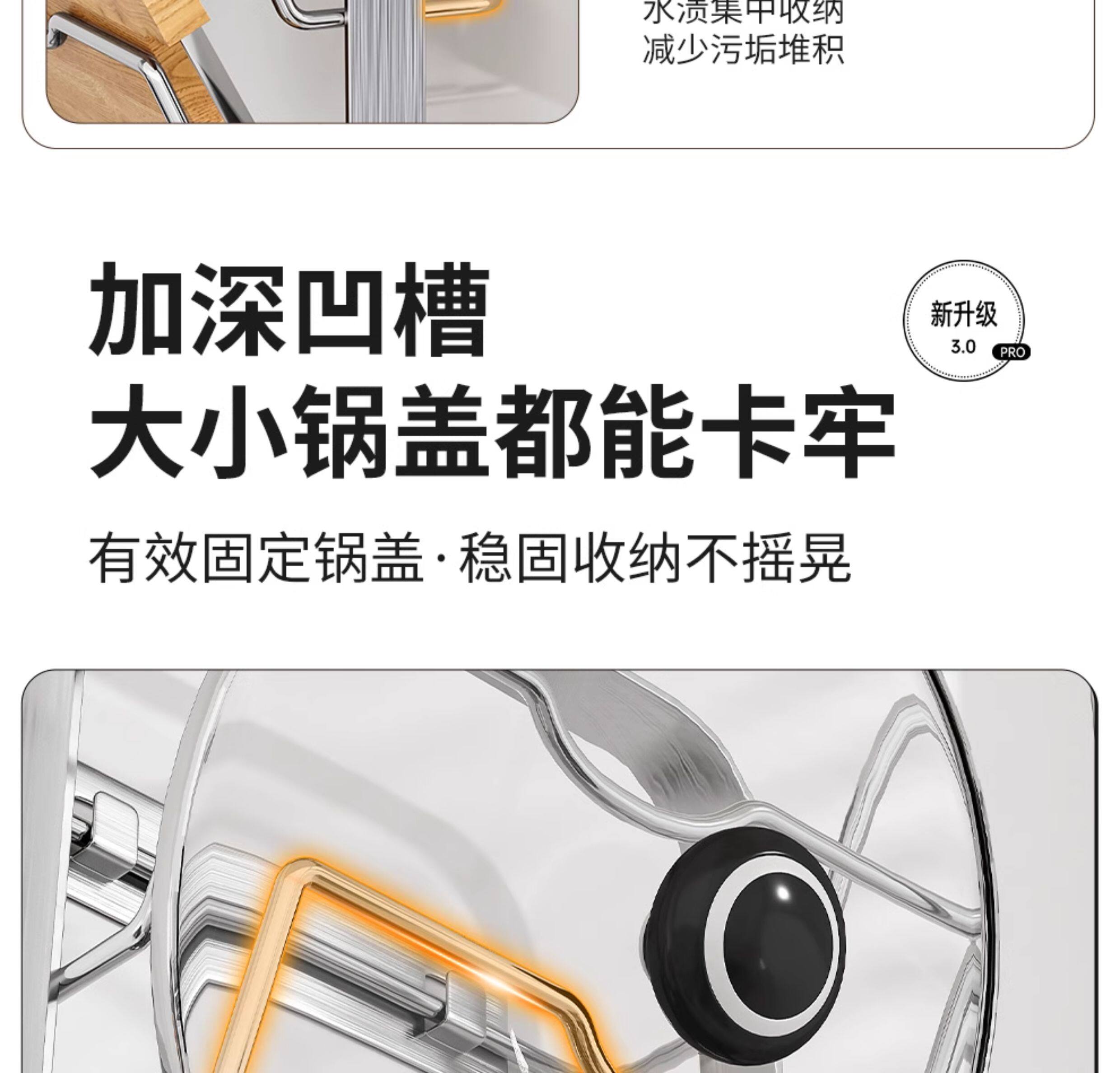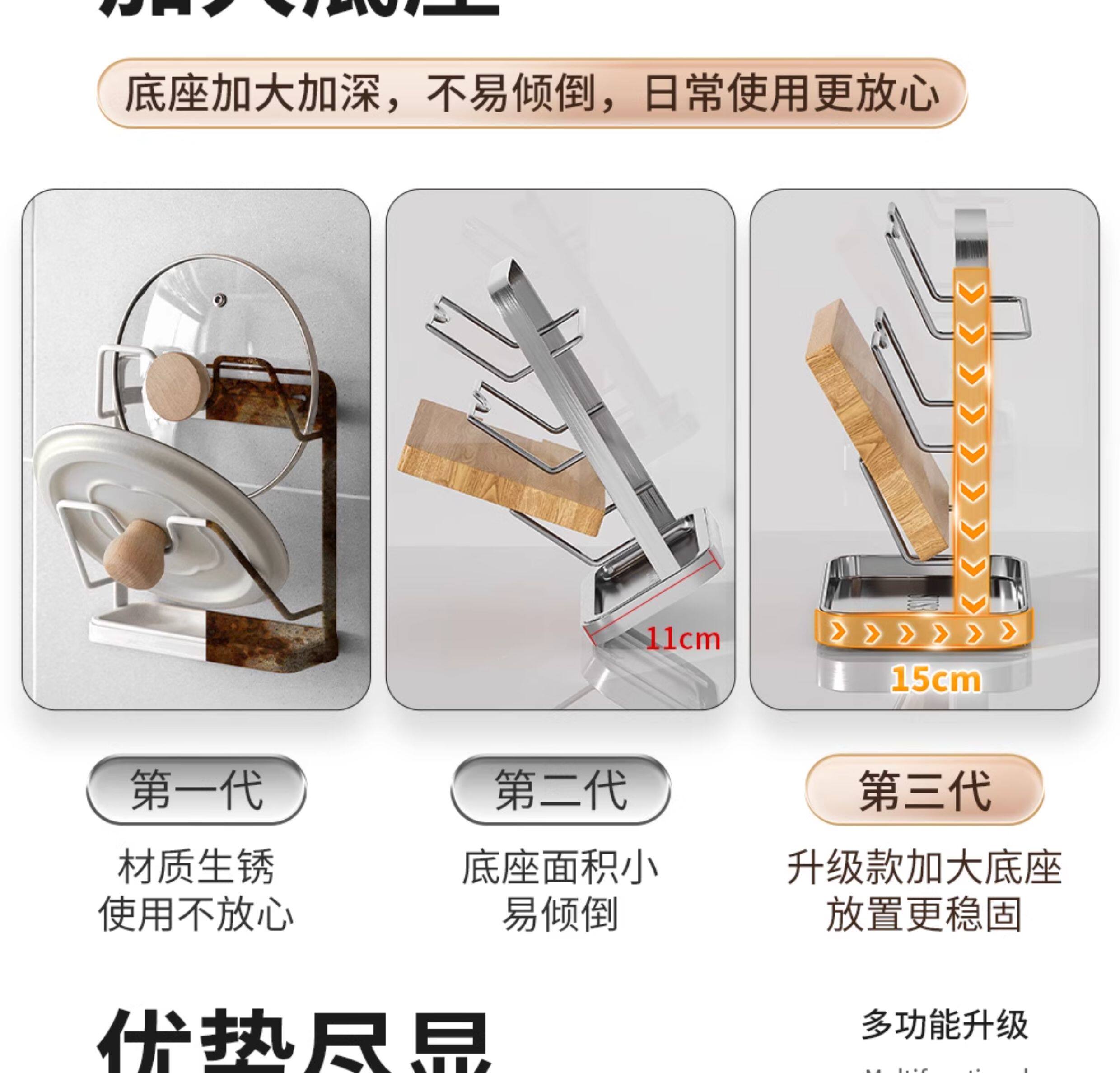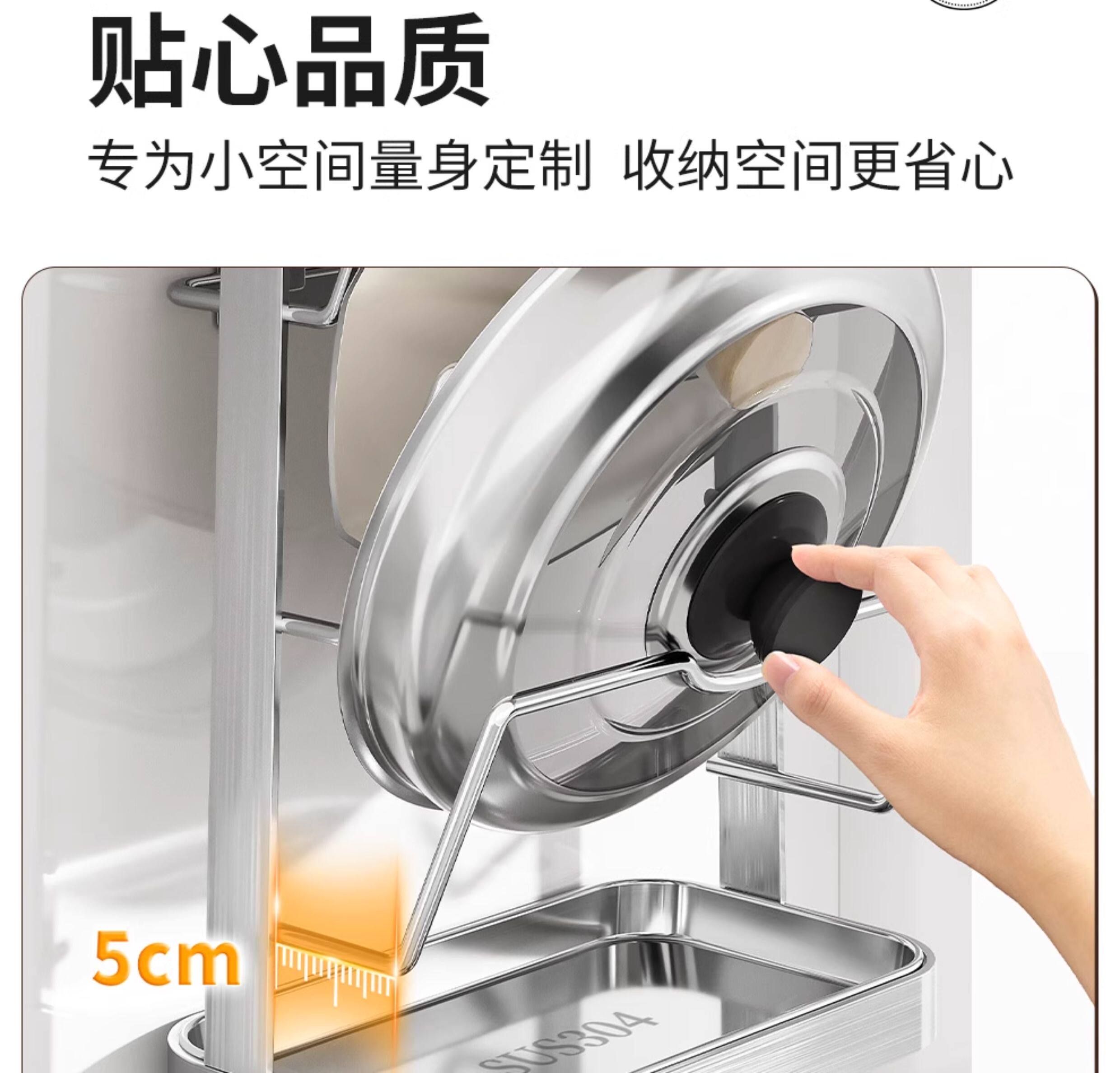 Japanese 304 Stainless Steel Pot Lid Rack Kitchen Storage Rack Wall-Mounted No-Drill Multifunctional Countertop Pot Lid Organizer