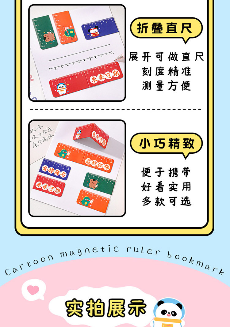 Folding Magnetic Bookmarks, Foldable Bookmarks, Folding Rulers, Creative Stationery for Primary School Students, Magnetic Rulers