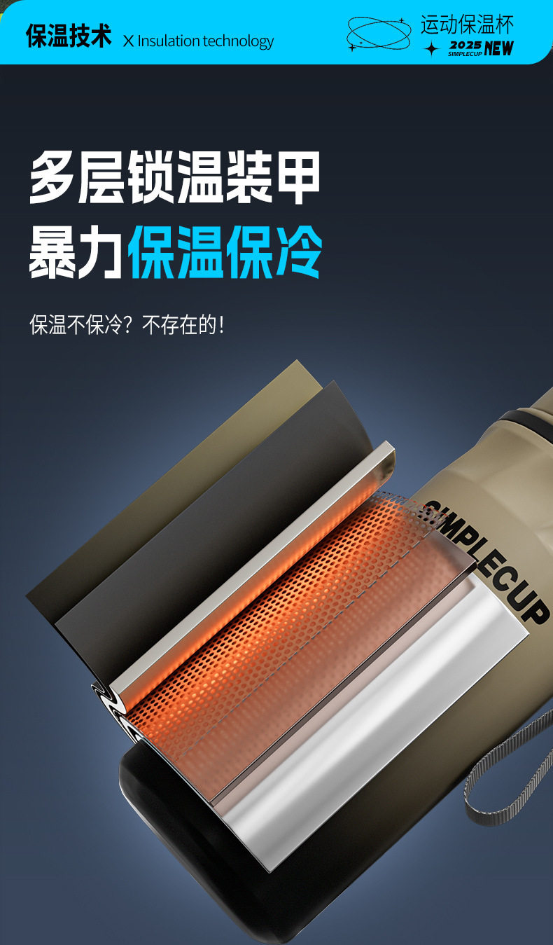 316 Stainless Steel Insulated Water Cup, Large Capacity, Double Drinking Cup with Straw, Outdoor Portable Sports Cup, Simple Straw Cup