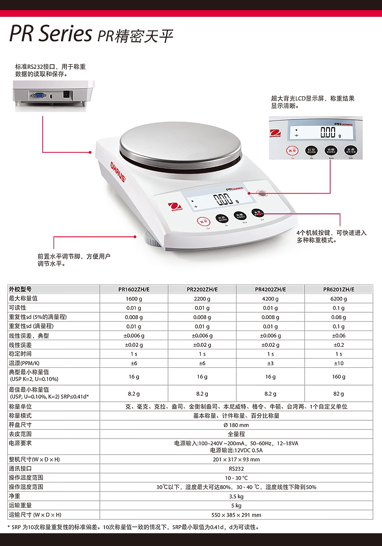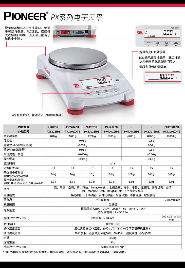 Ohaus Px822Zh/Px2202Zh/E Laboratory Electronic Balance with One-Tenths Precision