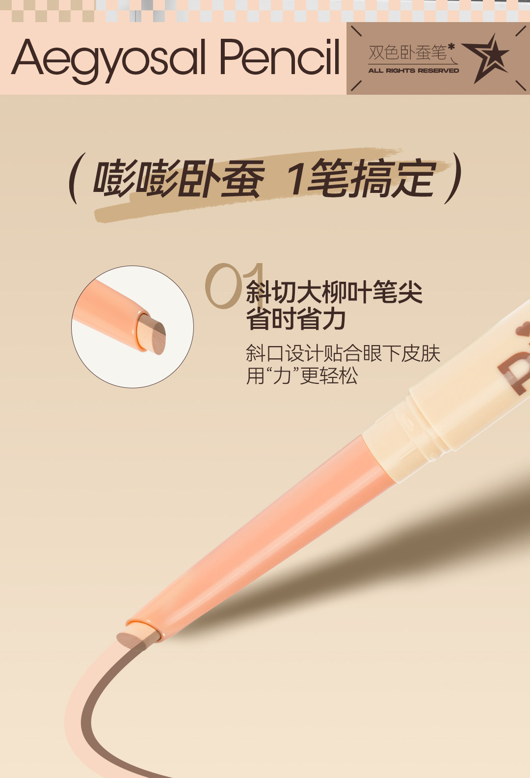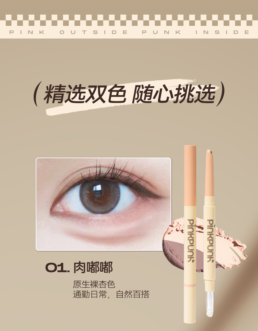 Peach and Wild Peach Dual-Color Eyeliner Pen for Brightening, 2-in-1, Long-Lasting, Waterproof, Non-Fading, Easy to Apply for Beginners