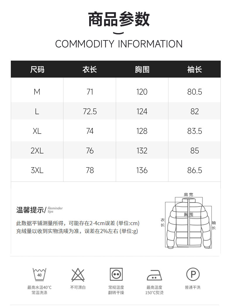 China (cm) 165 / 88-90 170 / 96-98 175 / 108-110 180 / 118-122 185 / 126-130