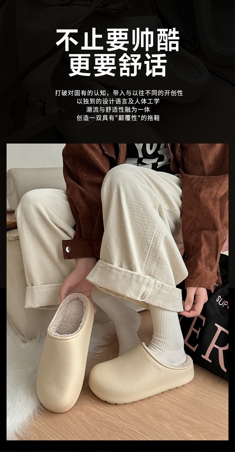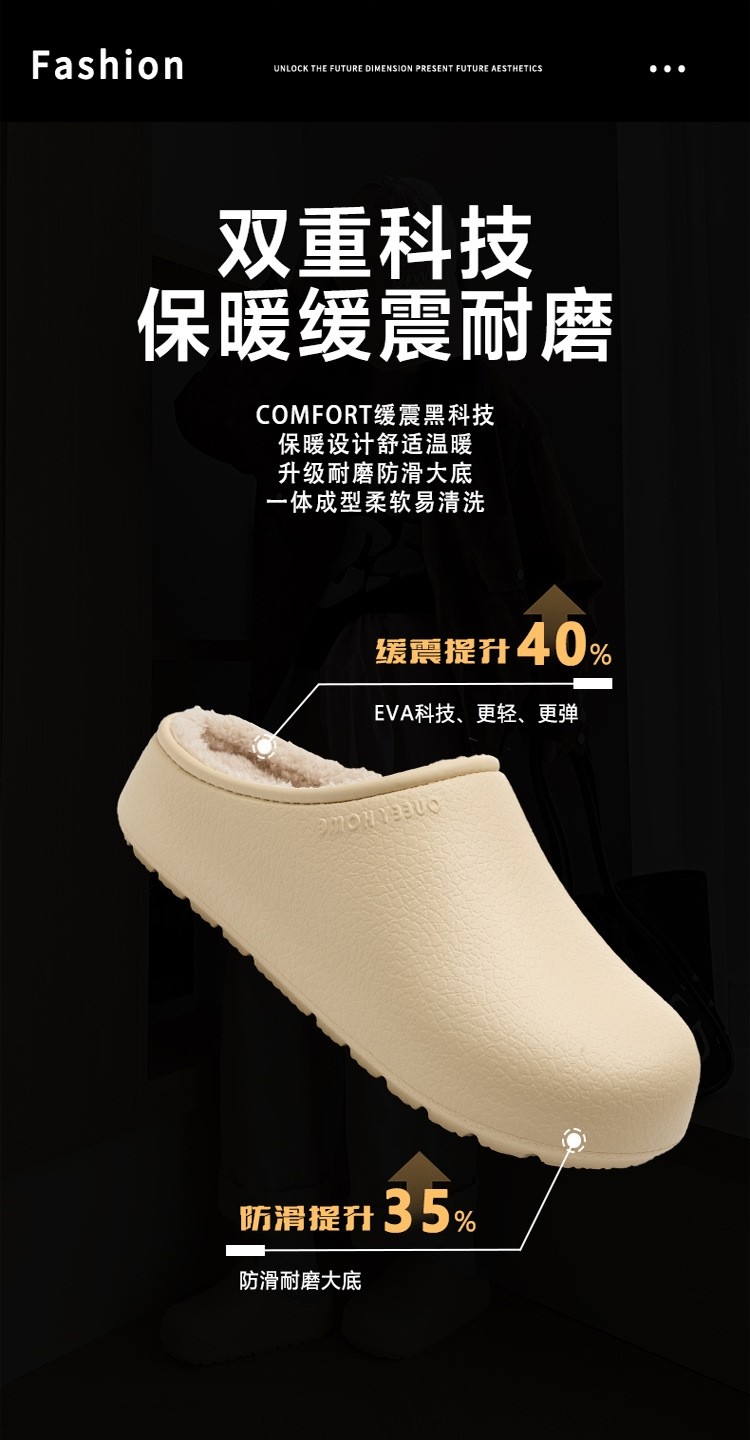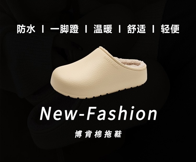 Winter Non-Slip Couple's Birkenstock-Style Cotton Slippers, Eva Odor-Resistant Closed-Toe Slip-On Padded Waterproof Slippers for Men, Warm
