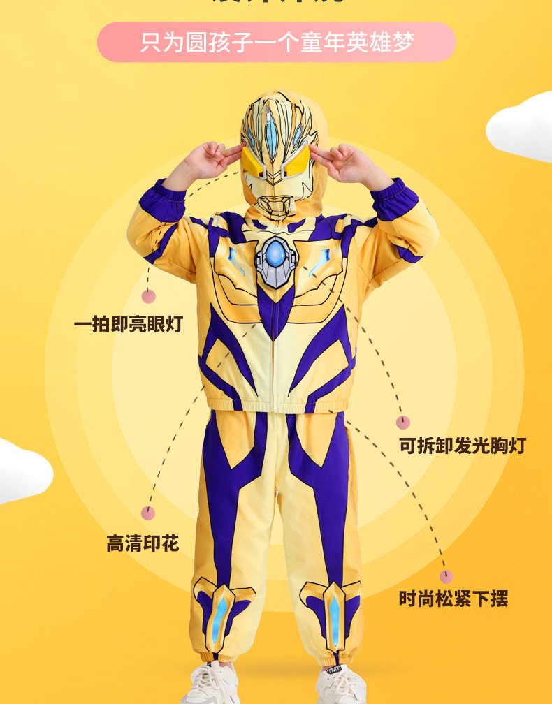 Ultraman Ultraman Clothing Children's Set Halloween Boys' Autumn and Winter Fleece Thickened Two-Piece Set New Year Clothes