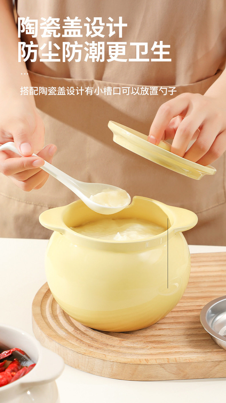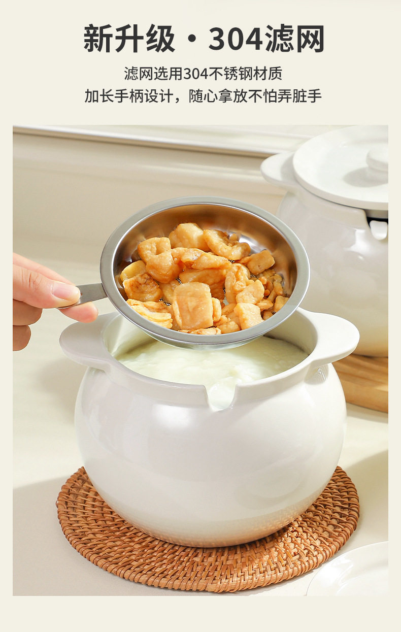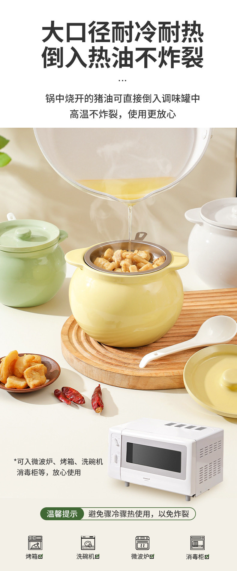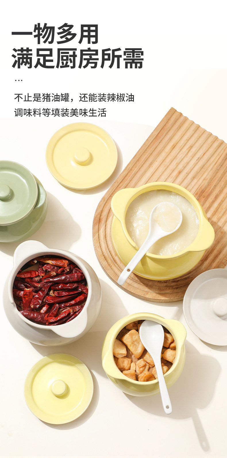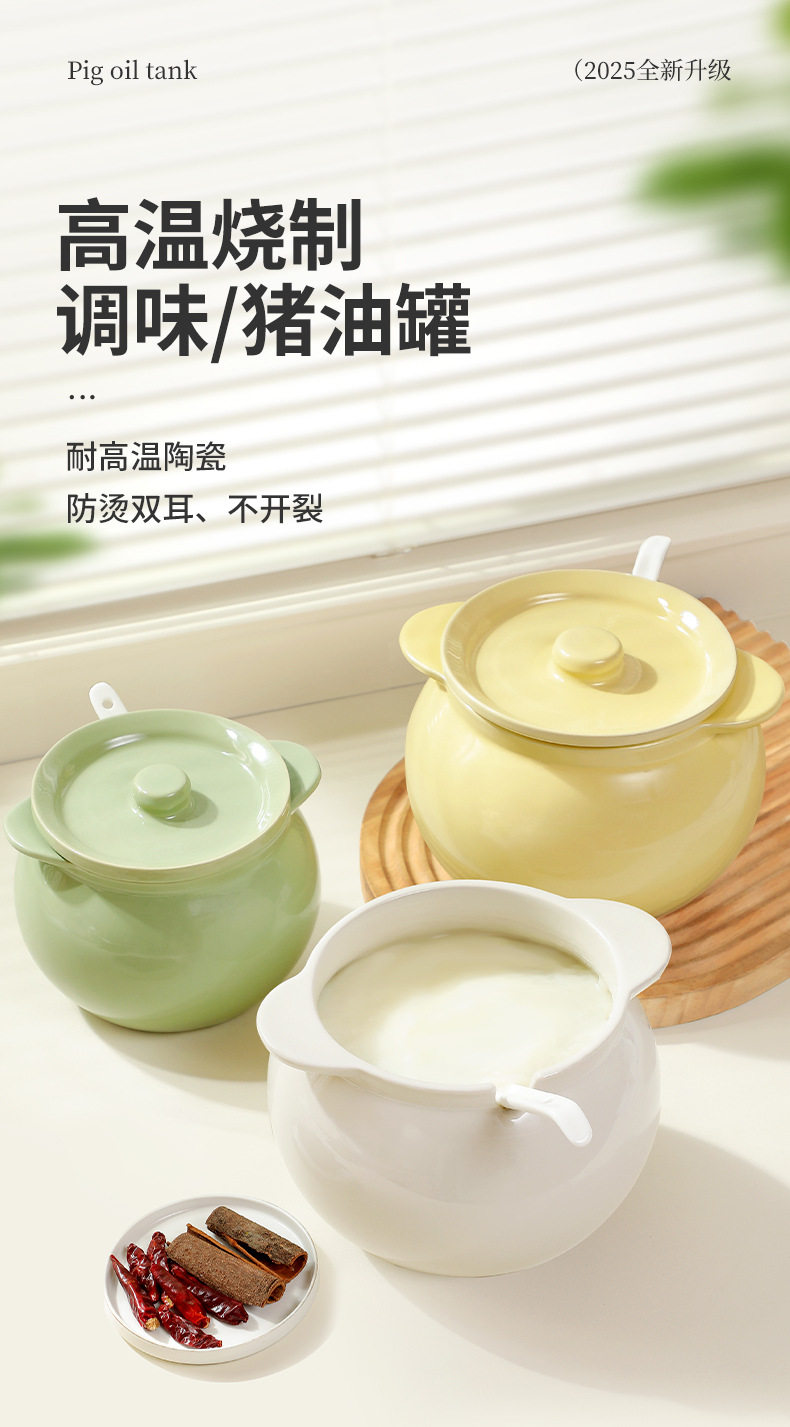 Food grade ceramic lard tank, high temperature resistant oil tank with lid, filter, household special container for meat oil and chili oil