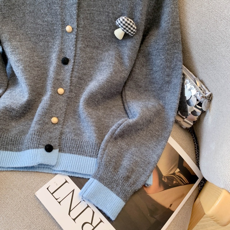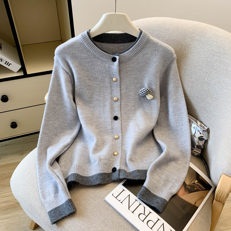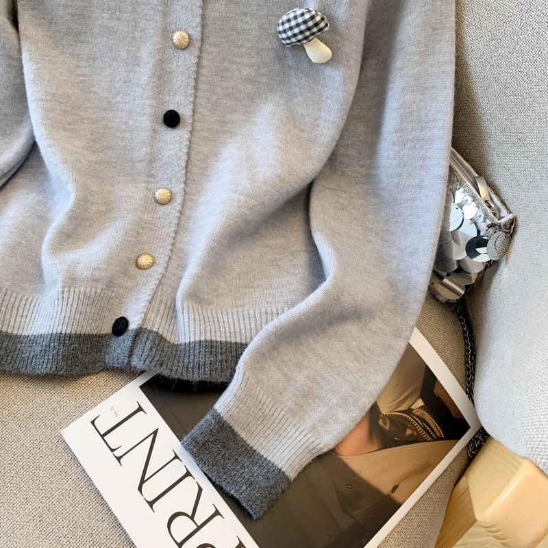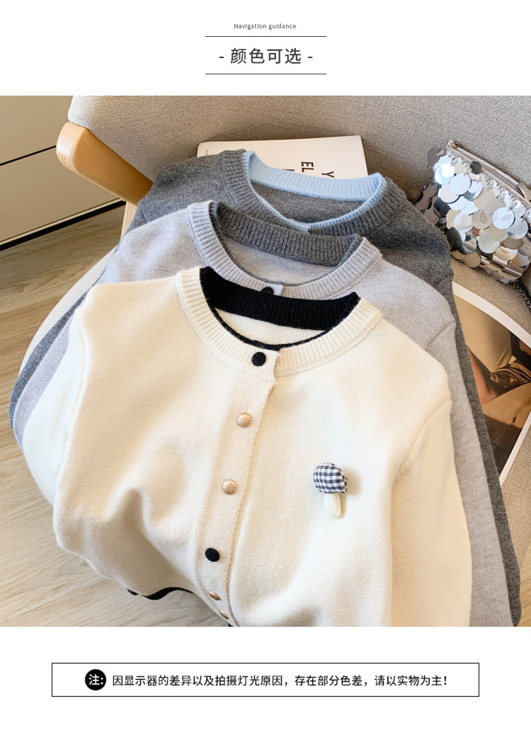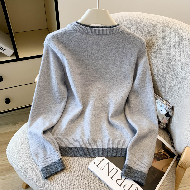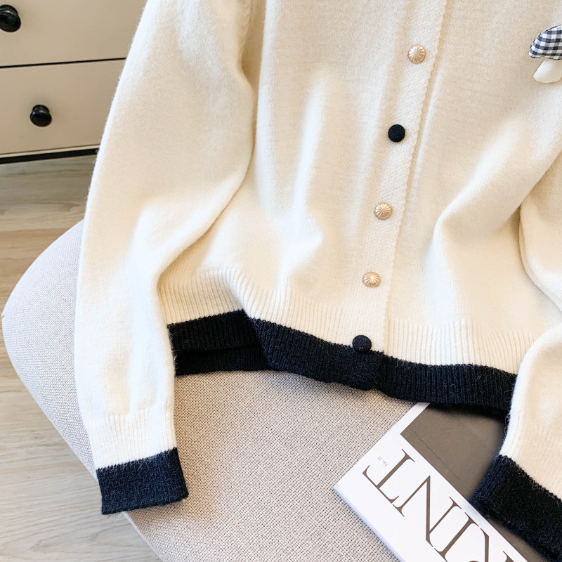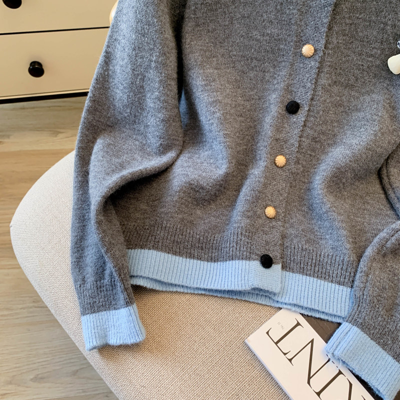 Korean Style Color-Block Round Neck Fake Two-Piece Knitted Cardigan for Women, New Autumn and Winter Fashion, Stylish Dopamine Button-Up Sweater