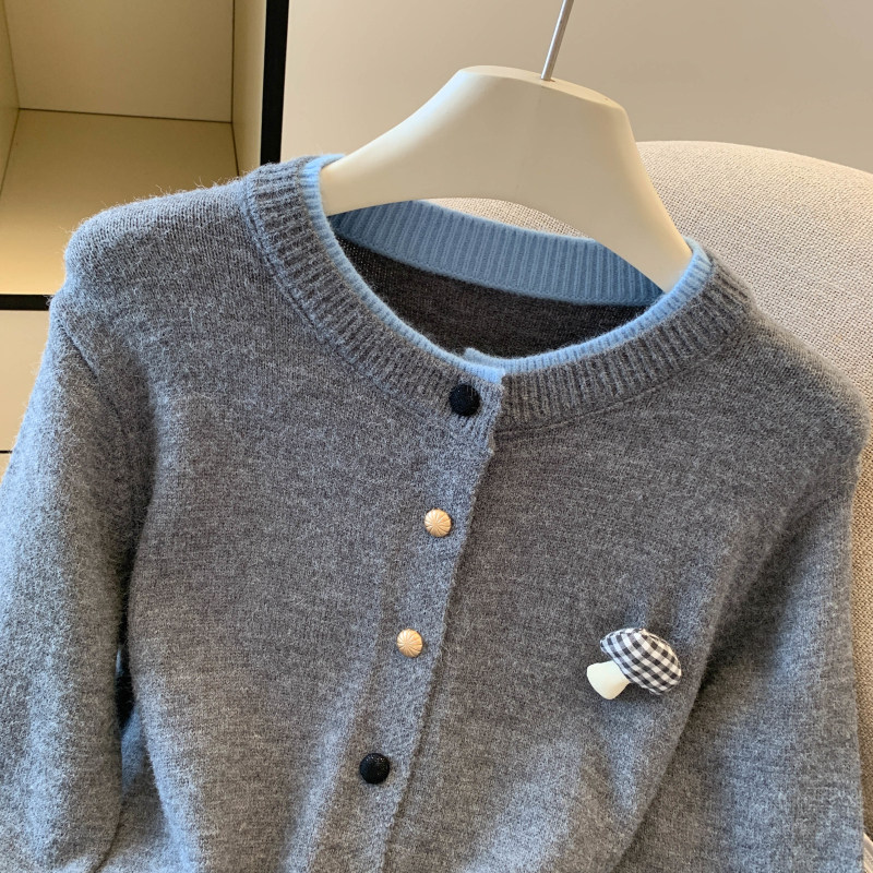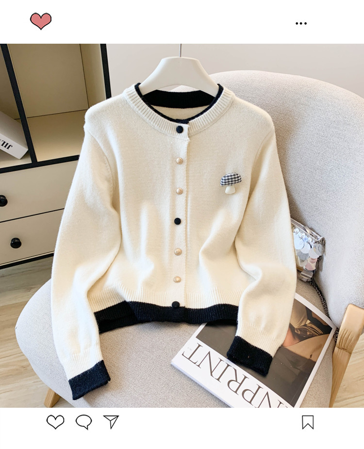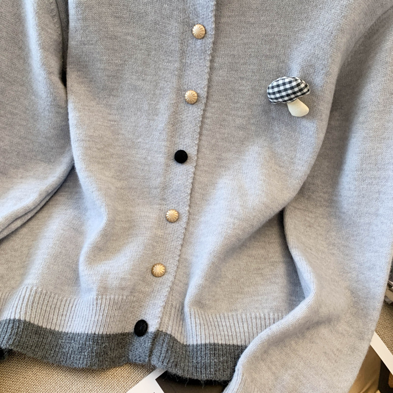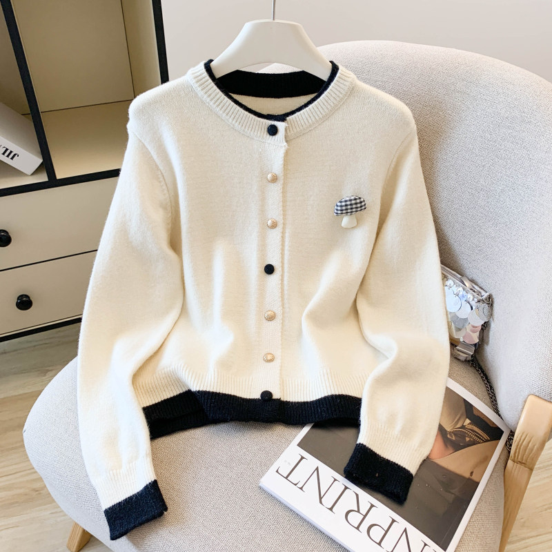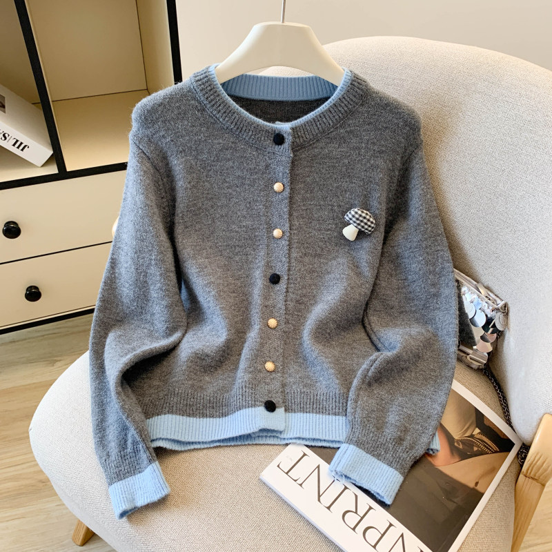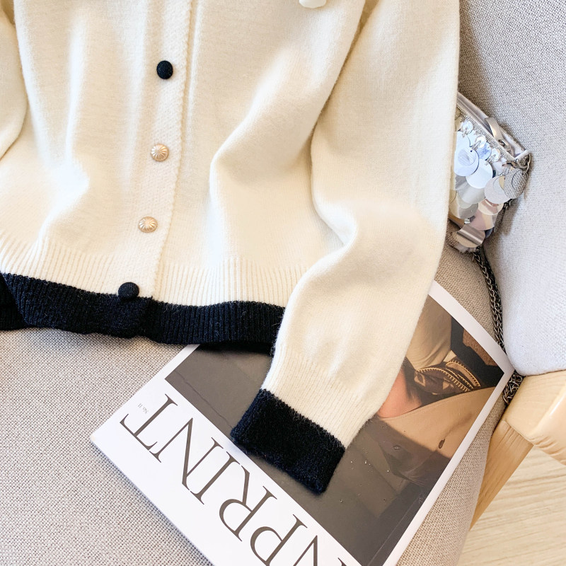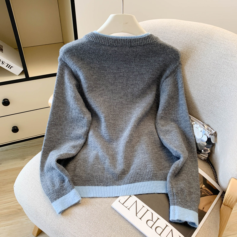 Korean Style Color-Block Round Neck Fake Two-Piece Knitted Cardigan for Women, New Autumn and Winter Fashion, Stylish Dopamine Button-Up Sweater