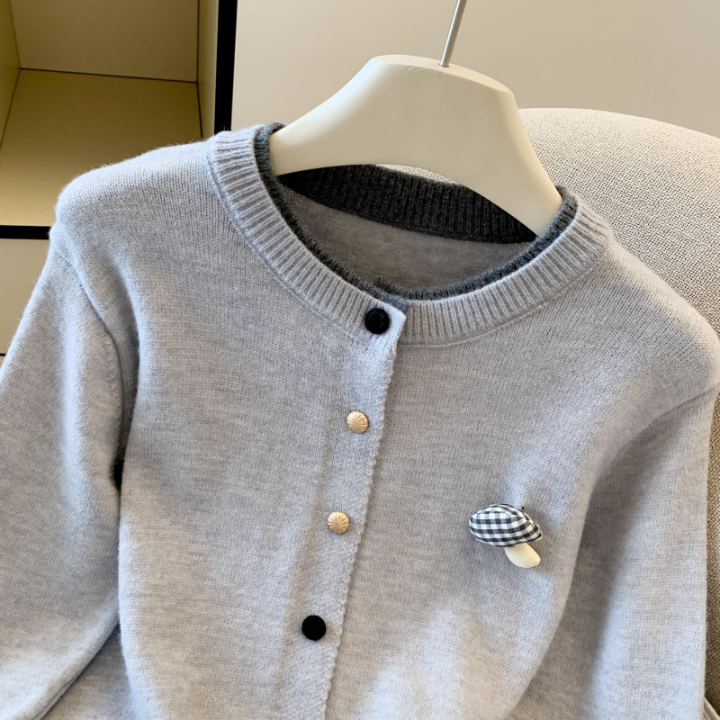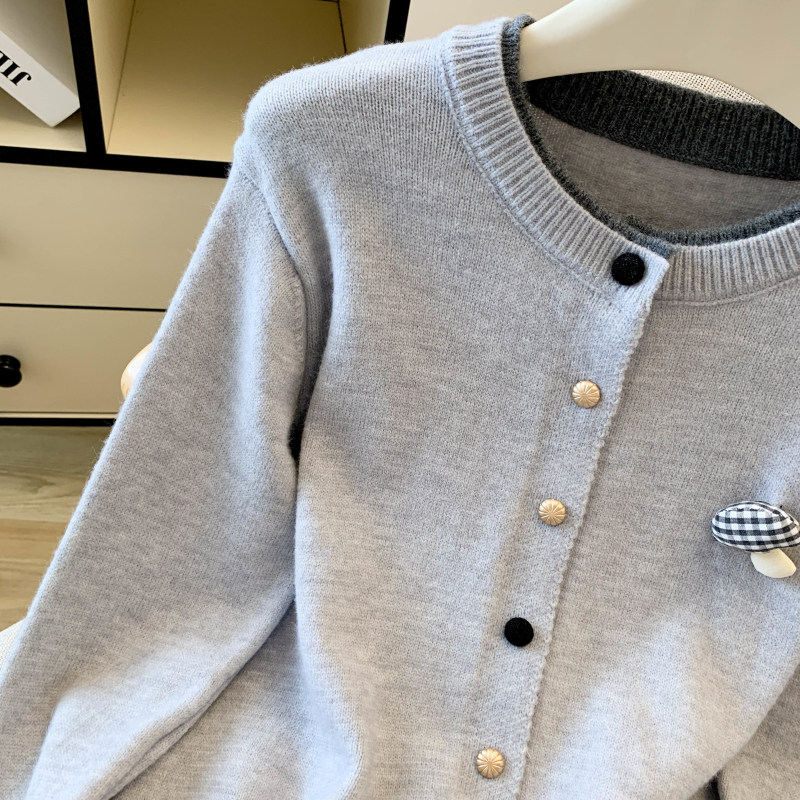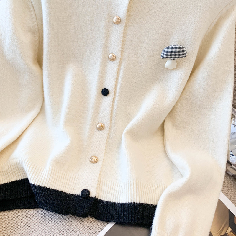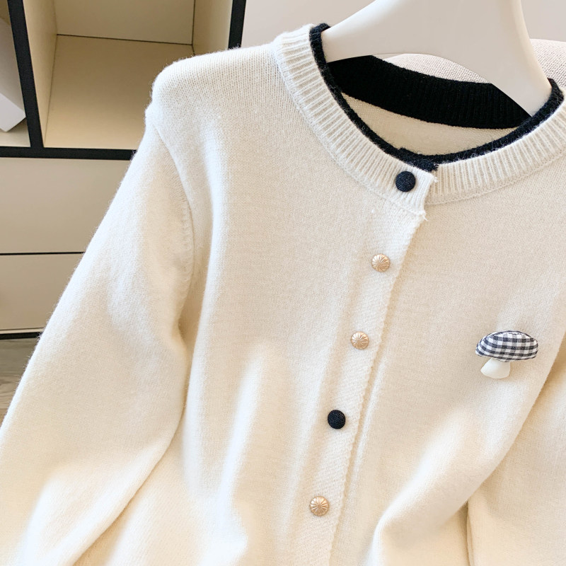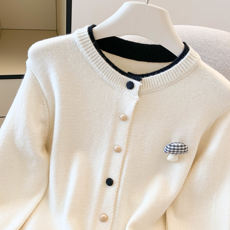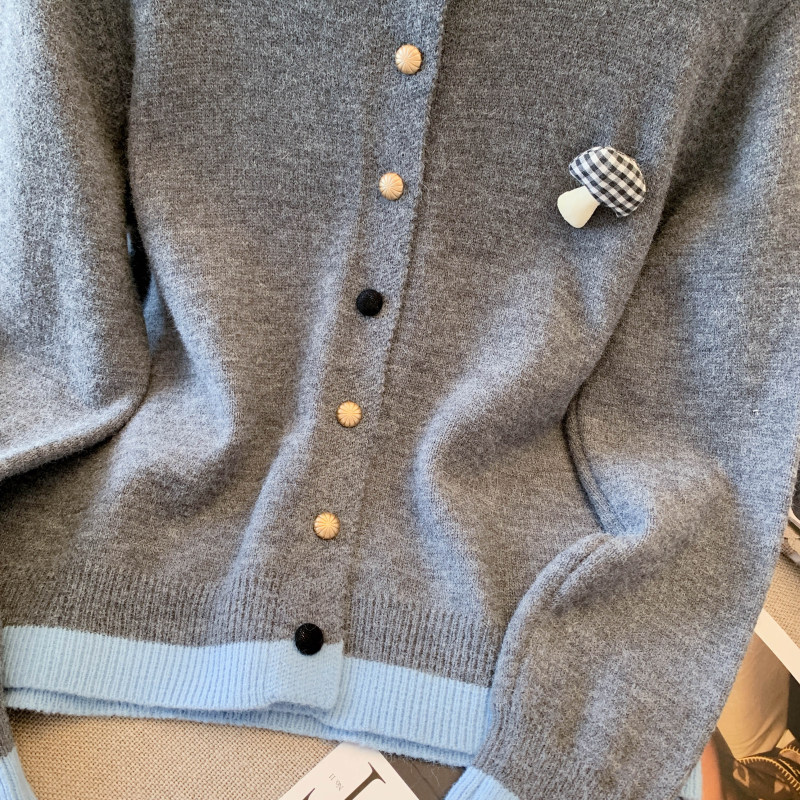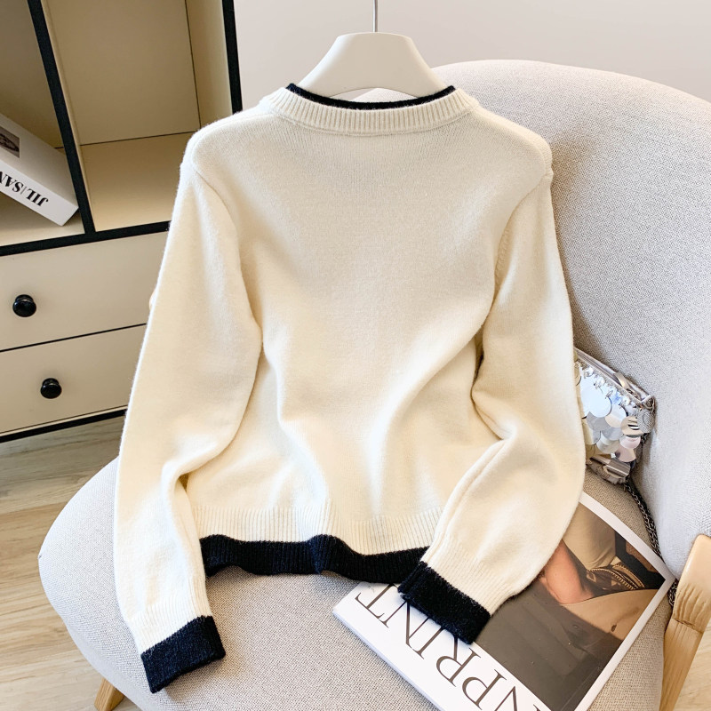 Korean Style Color-Block Round Neck Fake Two-Piece Knitted Cardigan for Women, New Autumn and Winter Fashion, Stylish Dopamine Button-Up Sweater