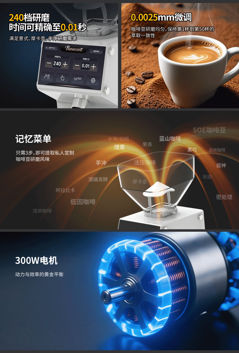 Basecent Electric Coffee Grinder for Espresso and Pour-Over Coffee, Home Use Coffee Bean Grinder