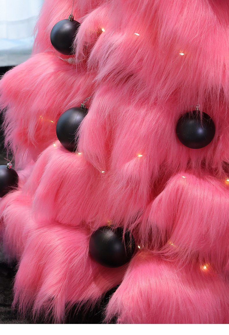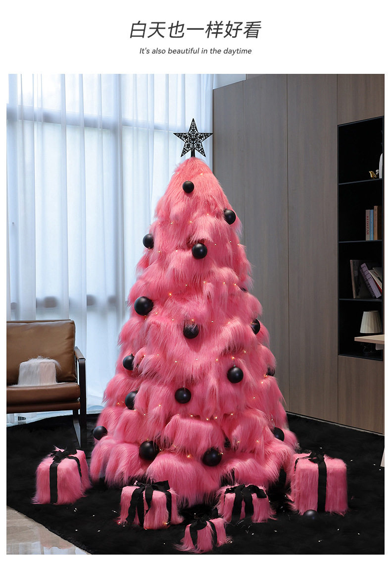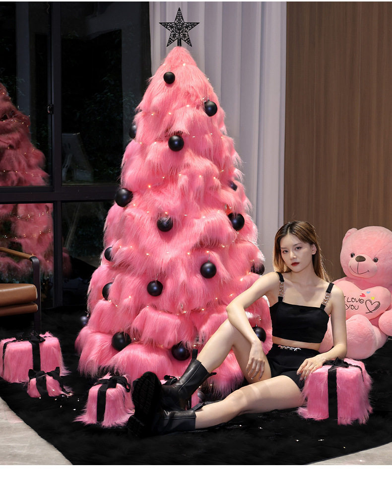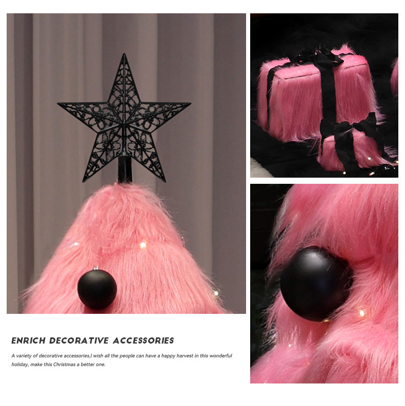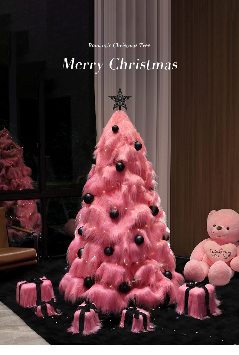 Pink Plush Large Christmas Tree with Lights, Artificial Christmas Tree, Cast Ornament, Foldable Handmade Atmosphere Decoration