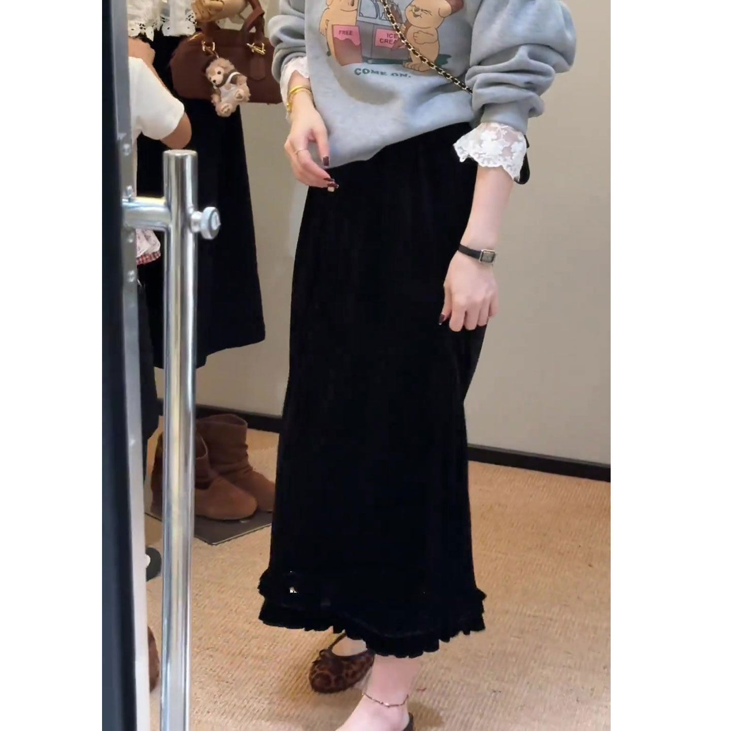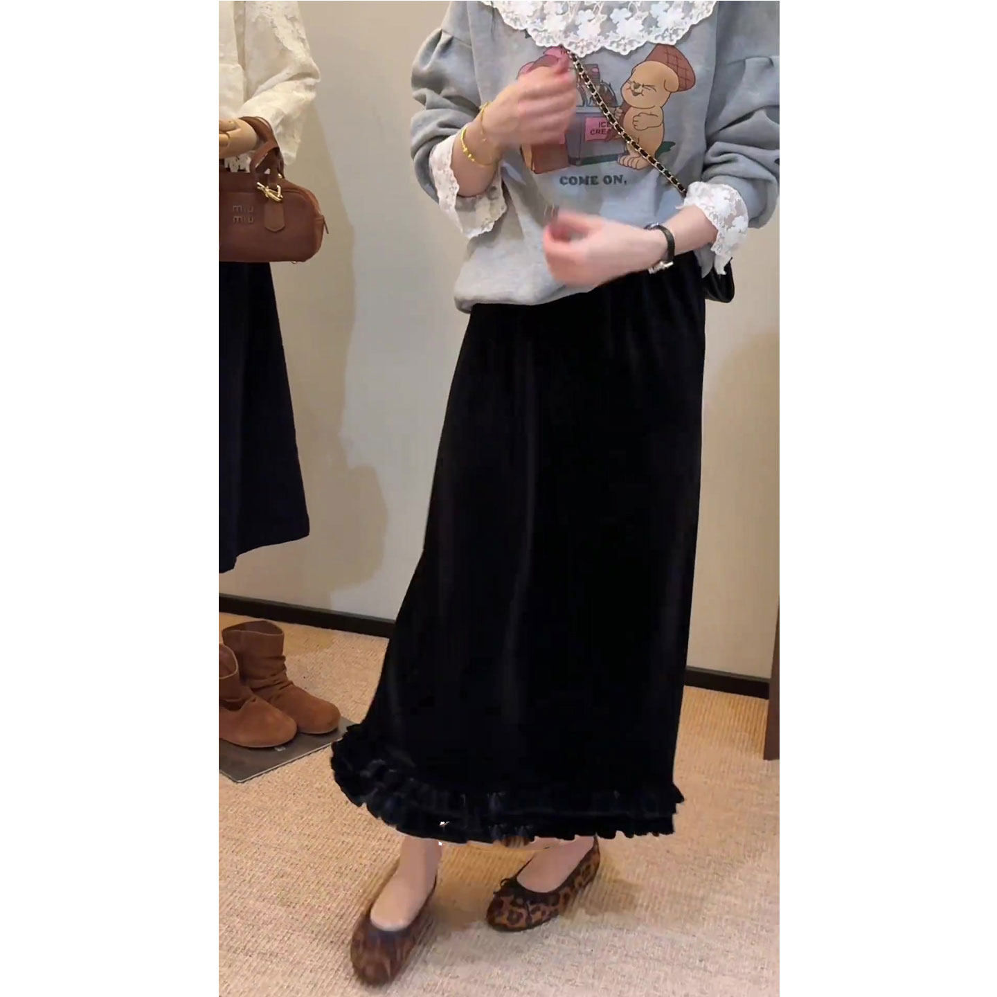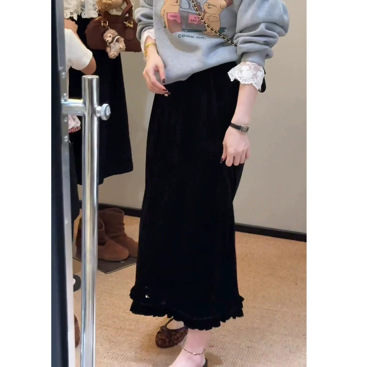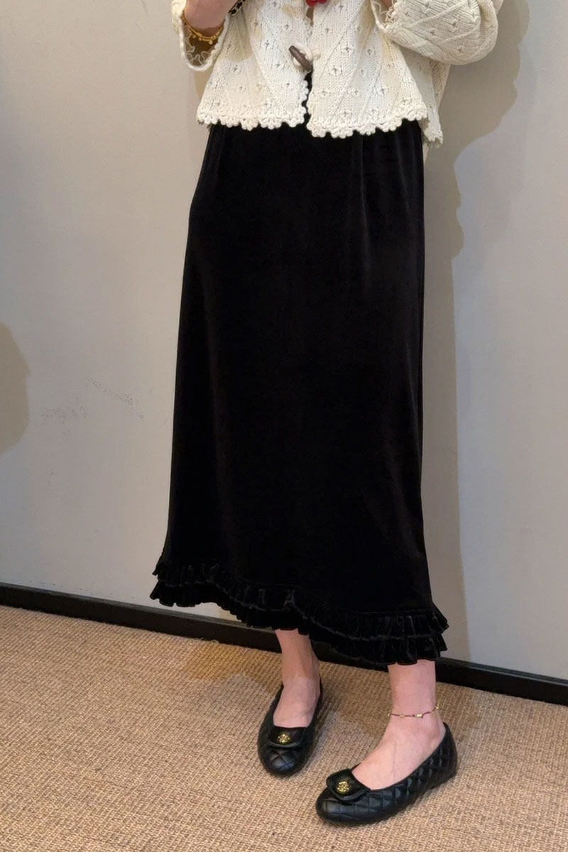 Velvet a-line skirt for women autumn and winter 2026 new skirt large size fat mm huge good-looking thirteen lines hot style skirt