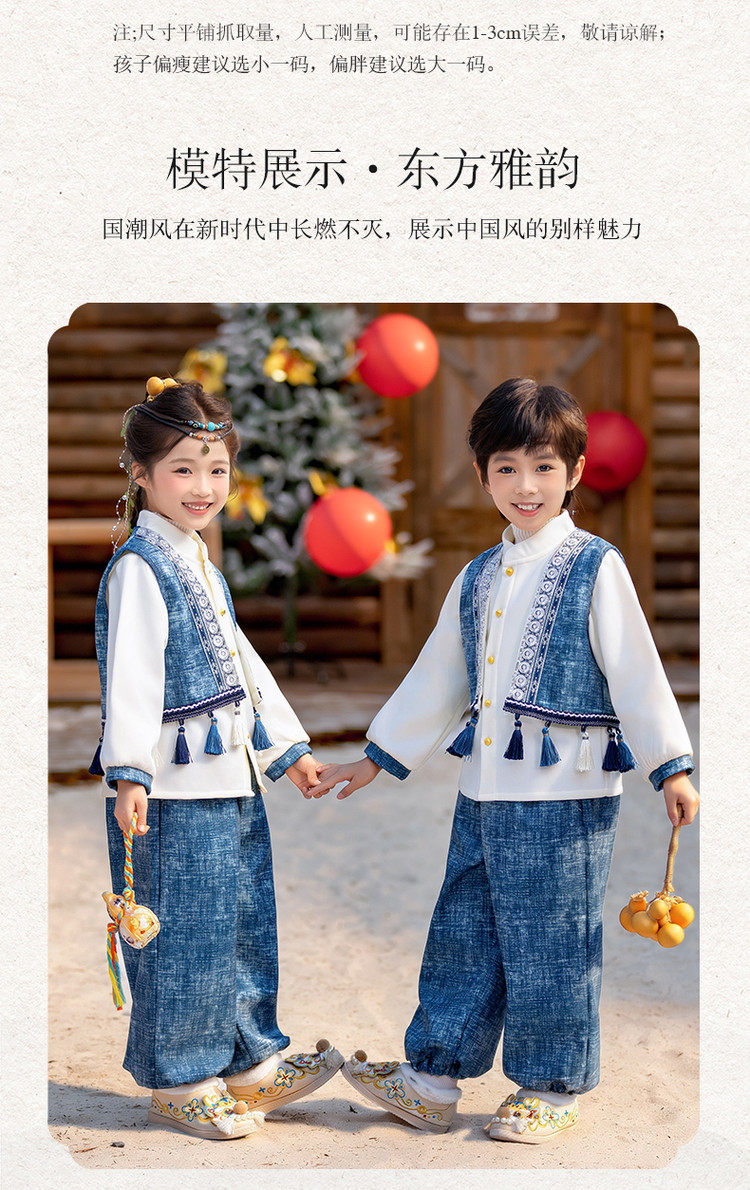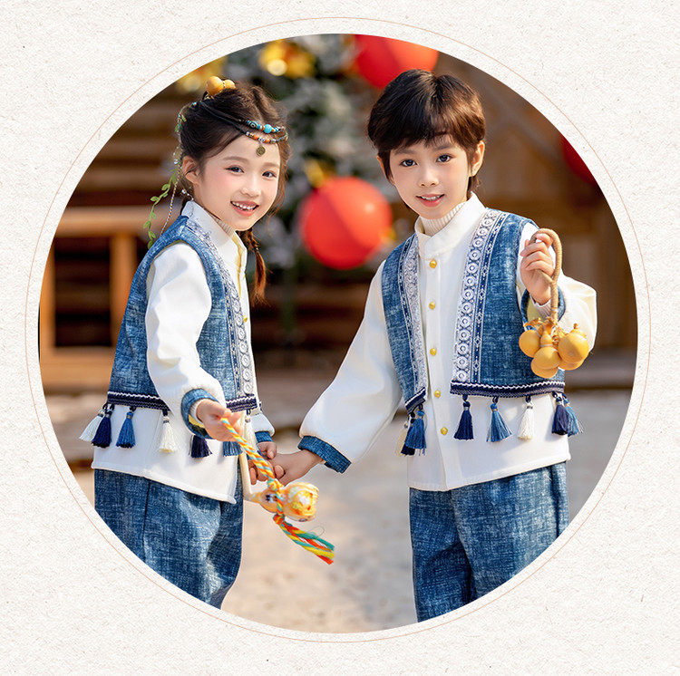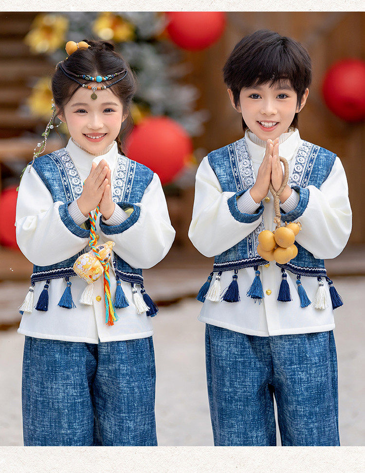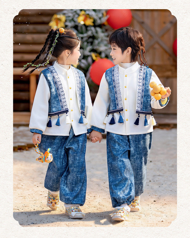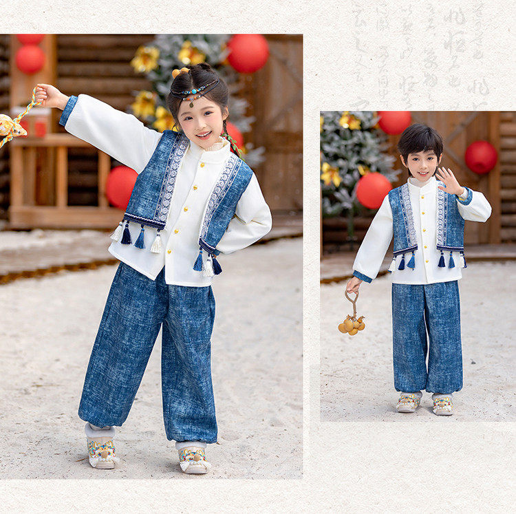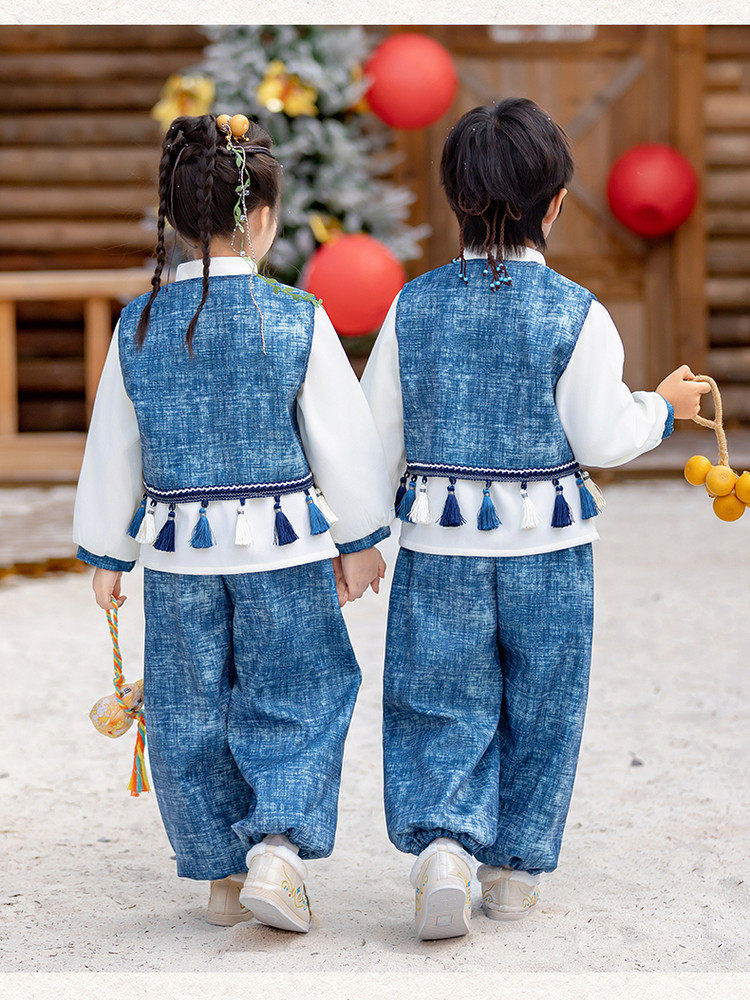 Children's tie-dye ethnic style costumes plus velvet brother and sister costumes for boys and girls Chinese style dance kindergarten New Year's Day performance costumes