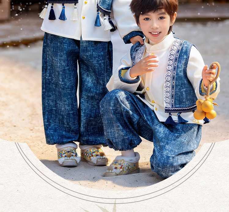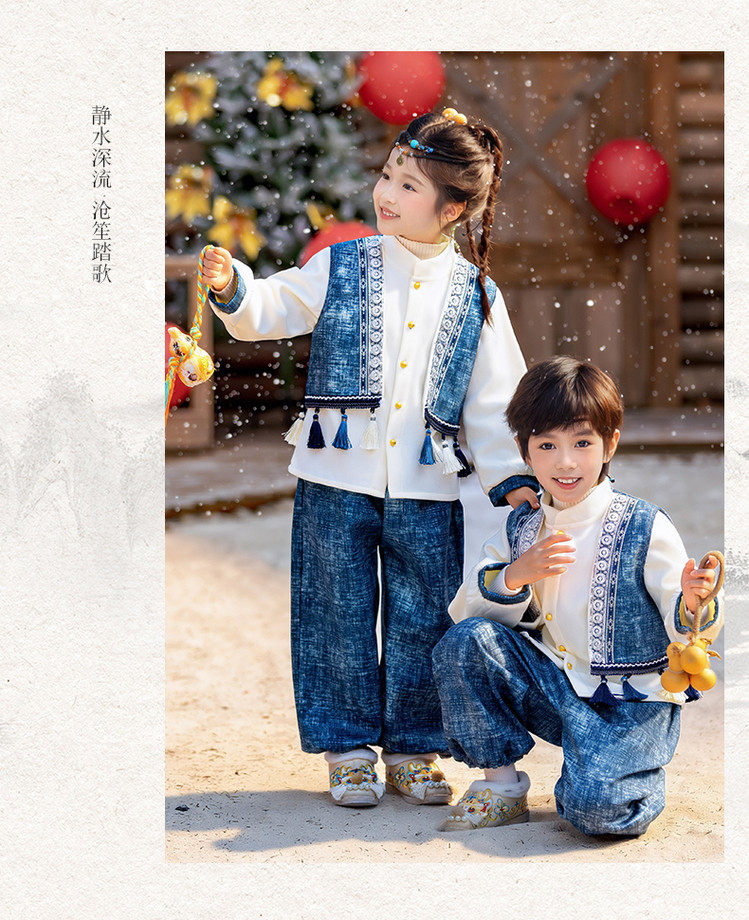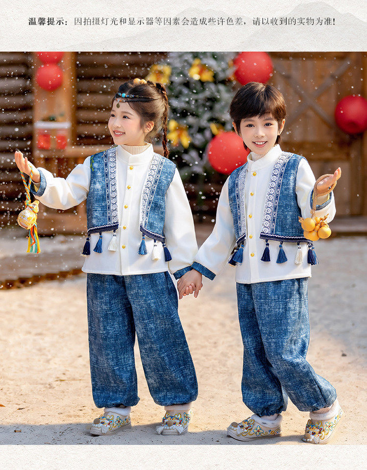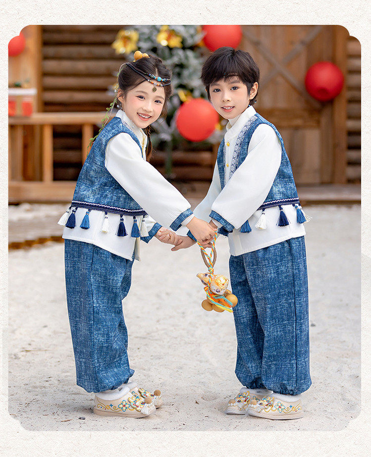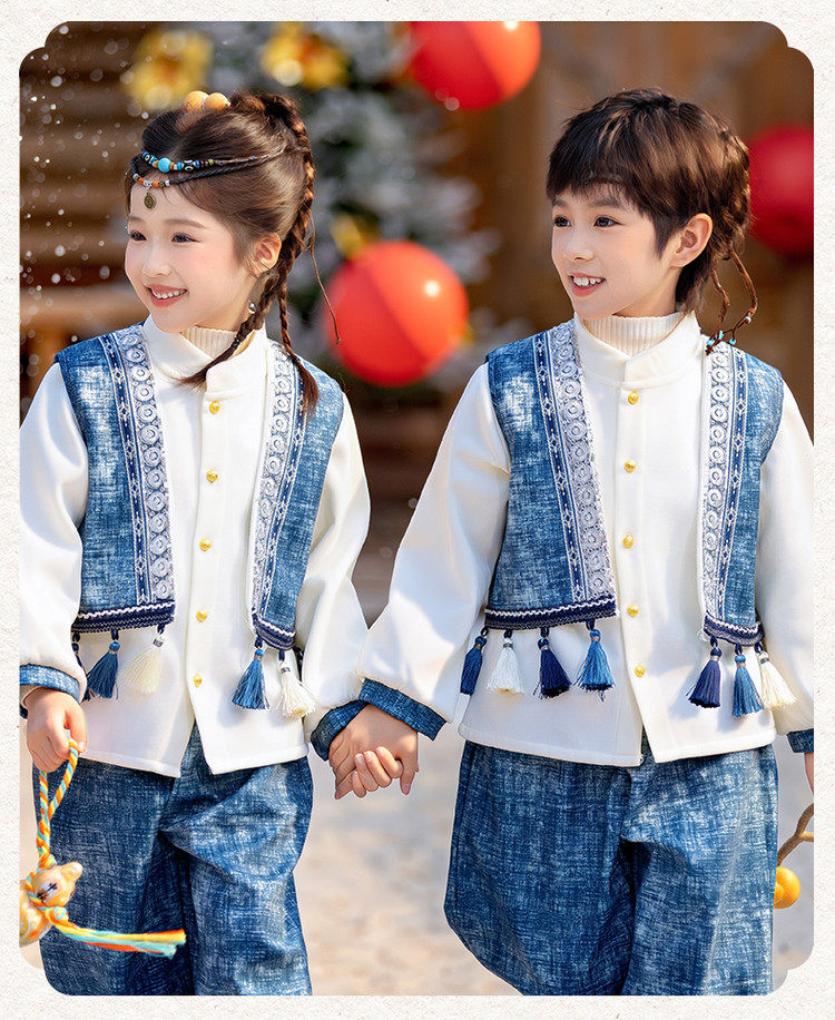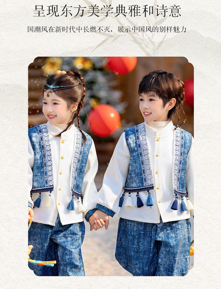 Children's tie-dye ethnic style costumes plus velvet brother and sister costumes for boys and girls Chinese style dance kindergarten New Year's Day performance costumes