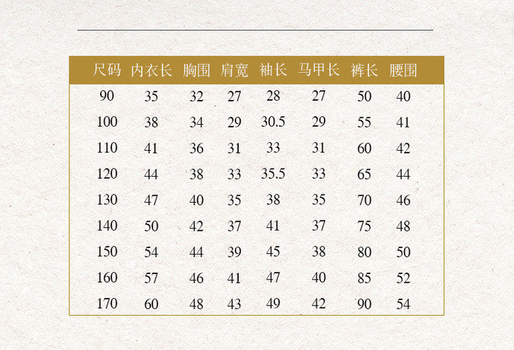 China (cm) 165 / 88-90 170 / 96-98 175 / 108-110 180 / 118-122 185 / 126-130