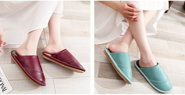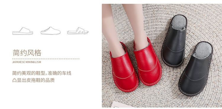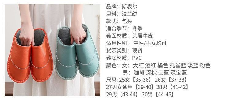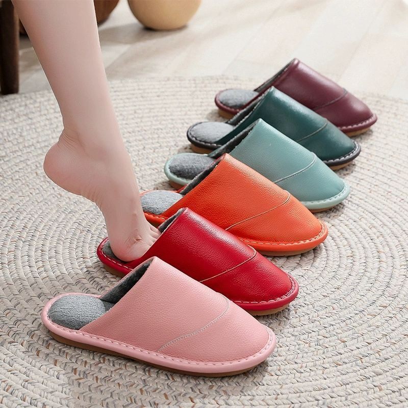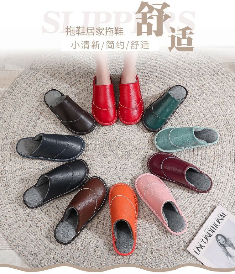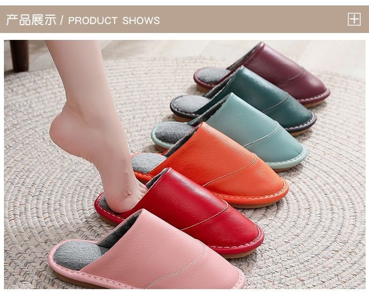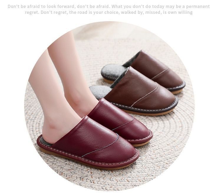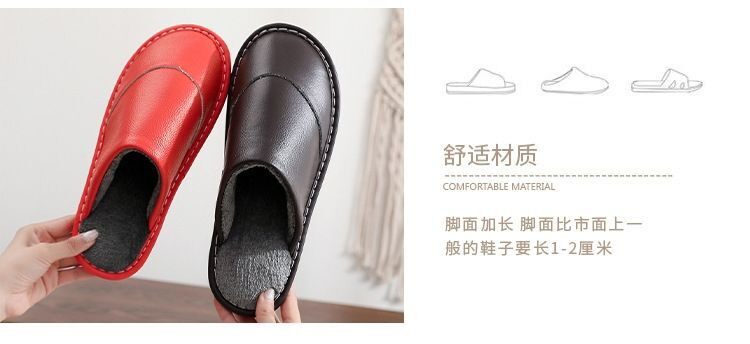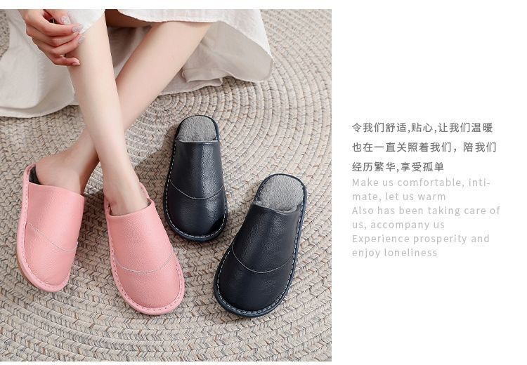 Haining Genuine Leather Home Cotton Slippers, Winter Slippers for Women and Couples, Thick-Soled Indoor Non-Slip Cowhide Slippers for Men