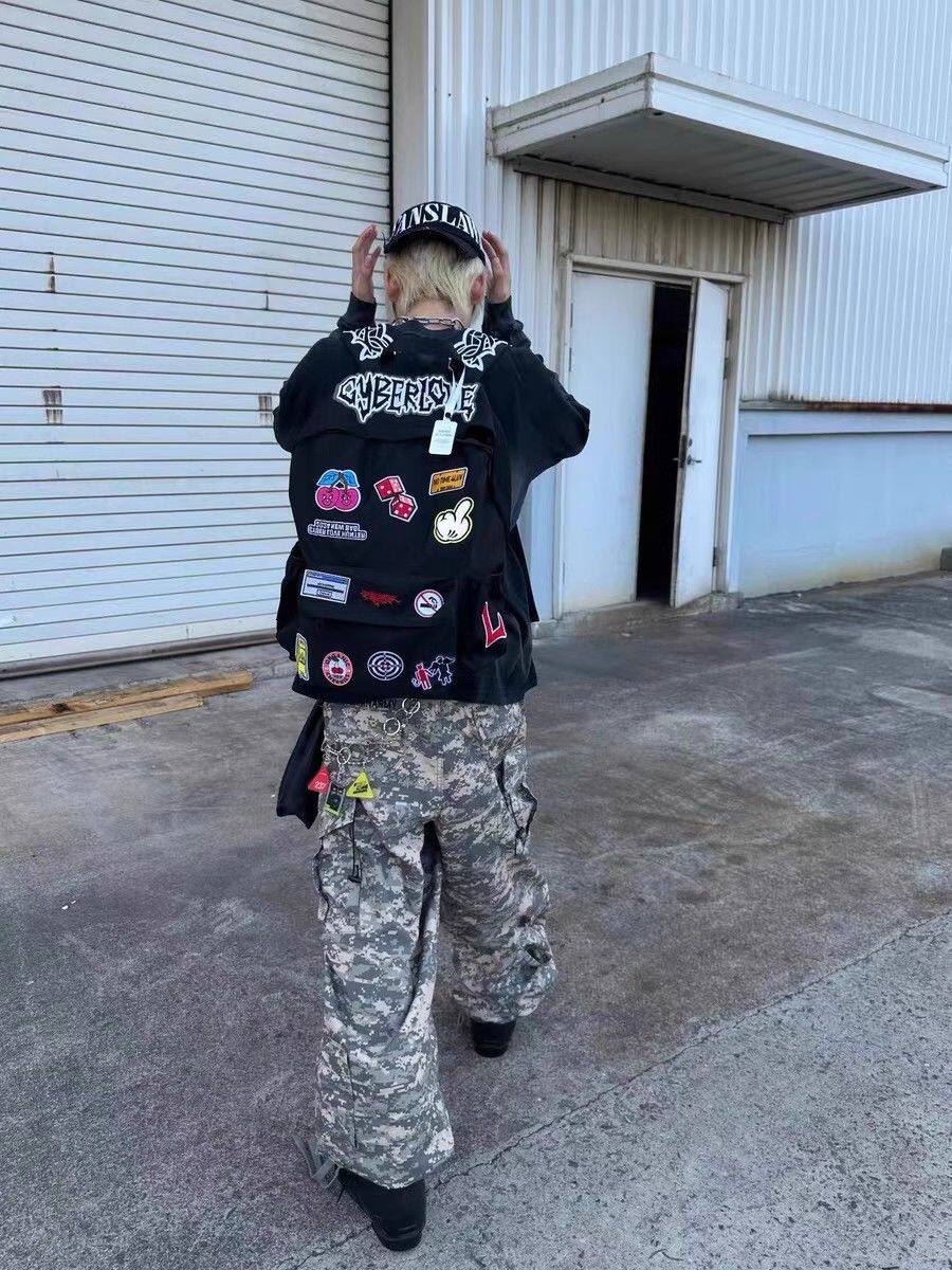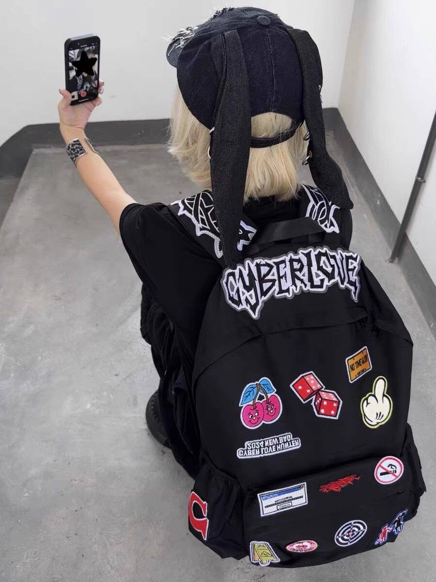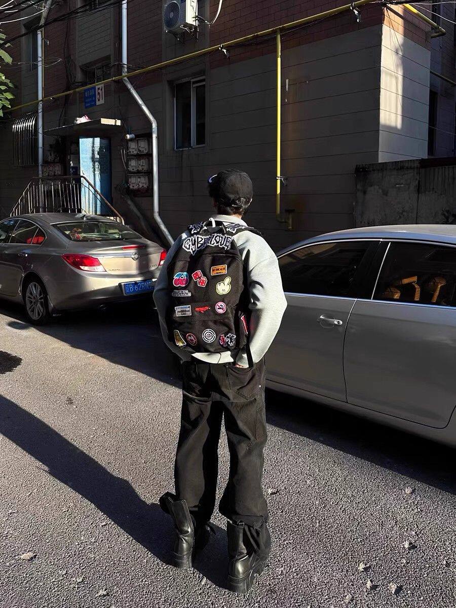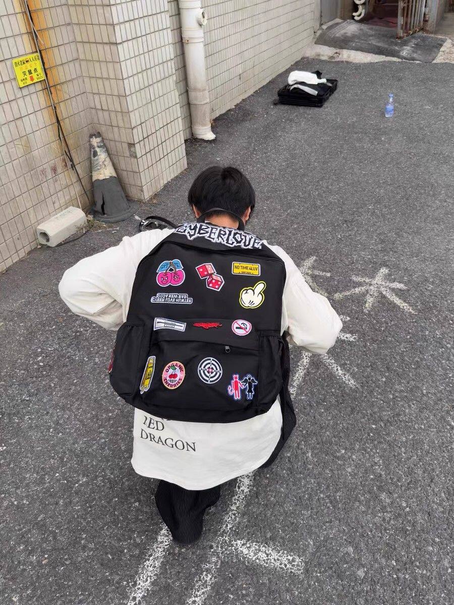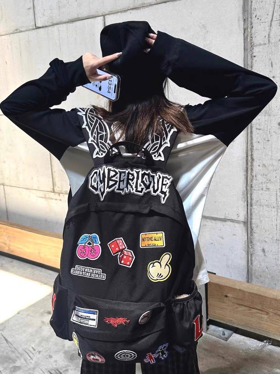 Self-Made Punk Rock Subculture Embroidered Patch Student Large-Capacity Backpack American-Style Niche Personality Backpack Trendy