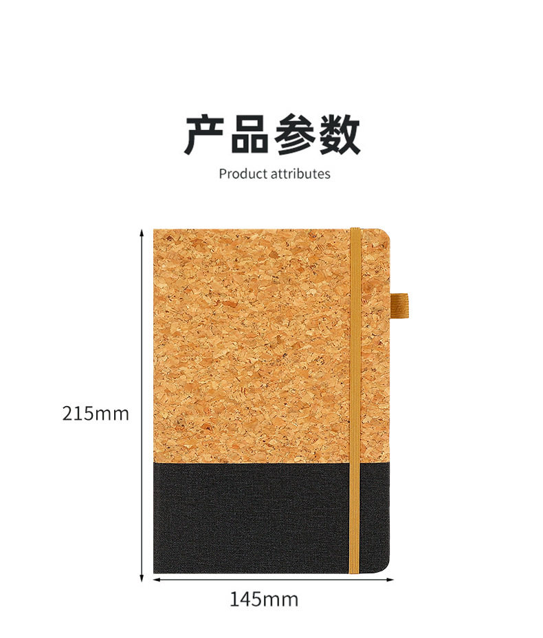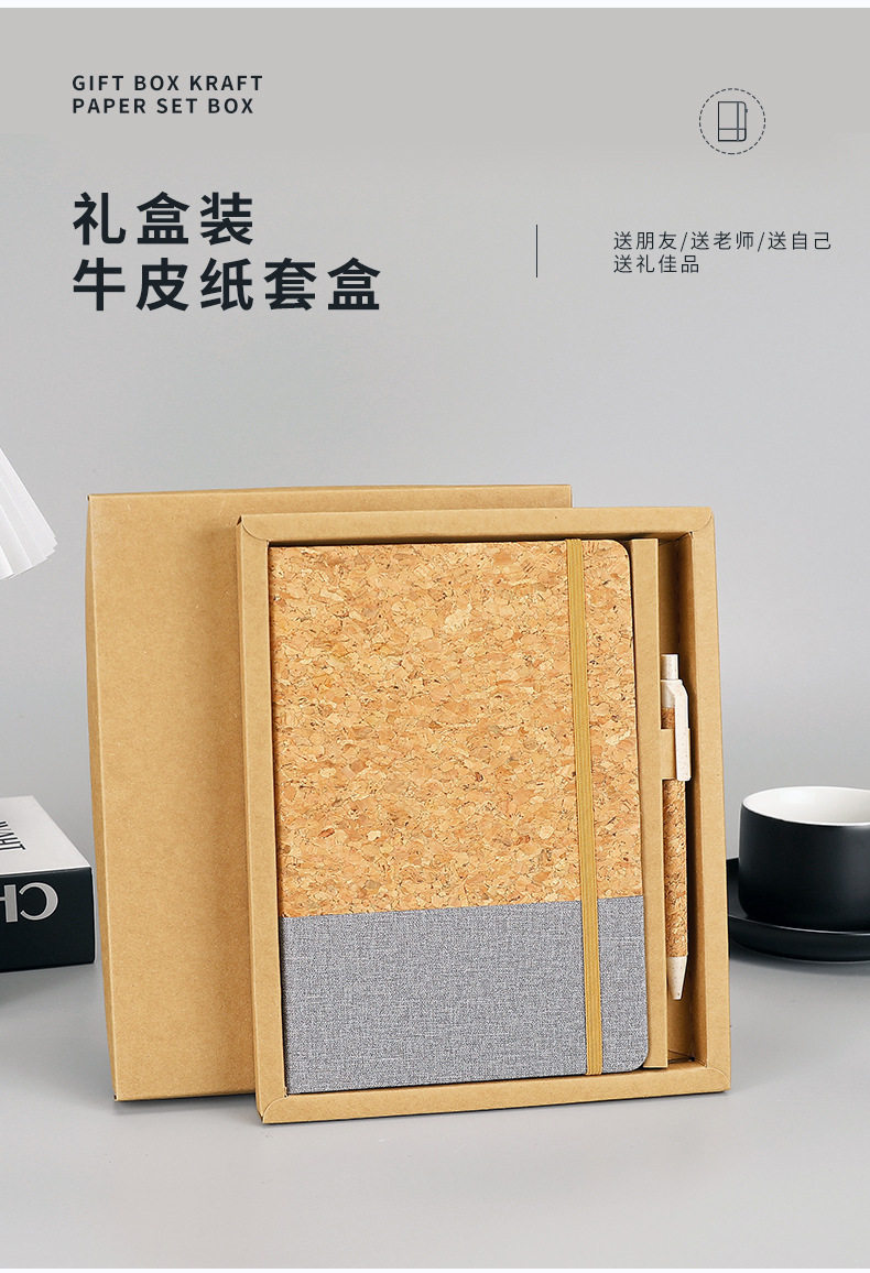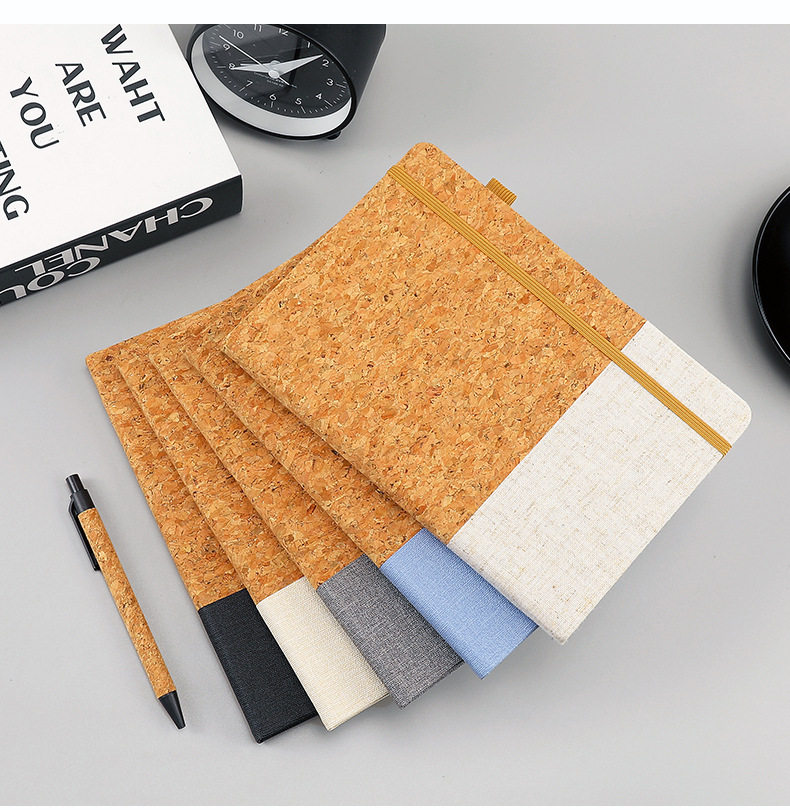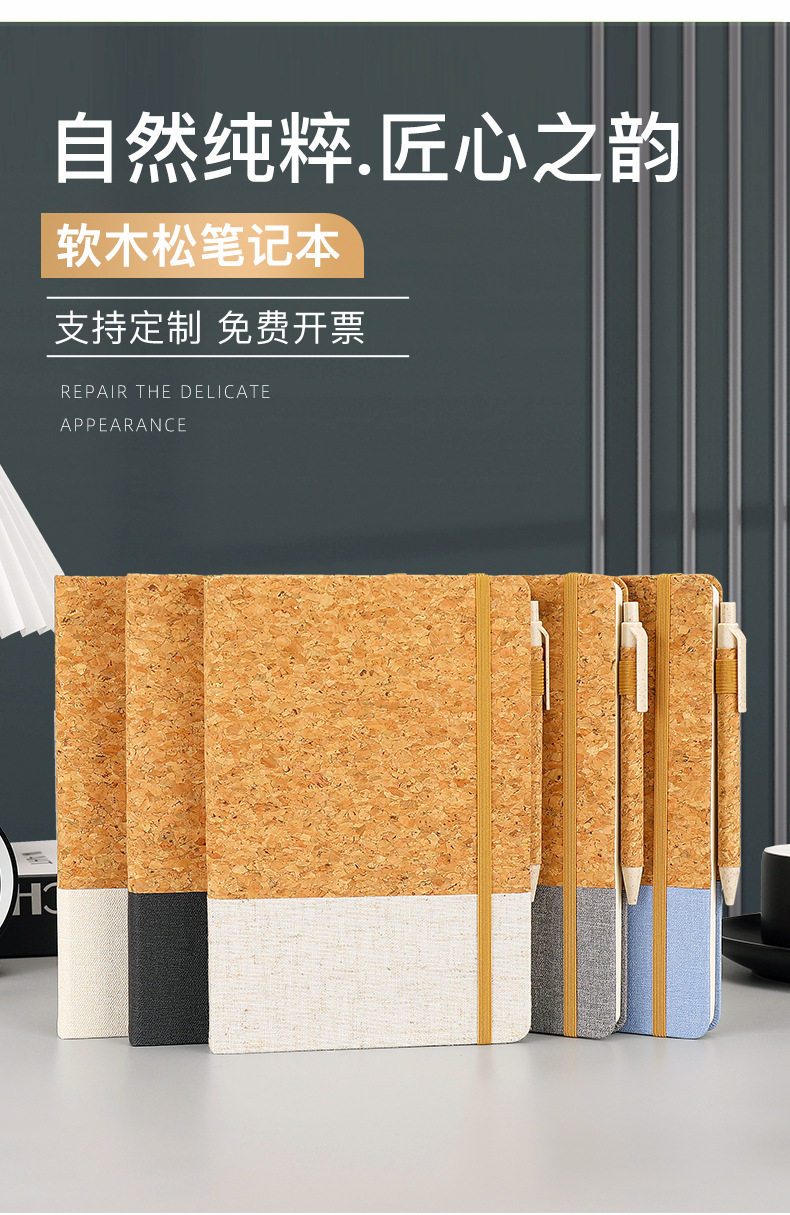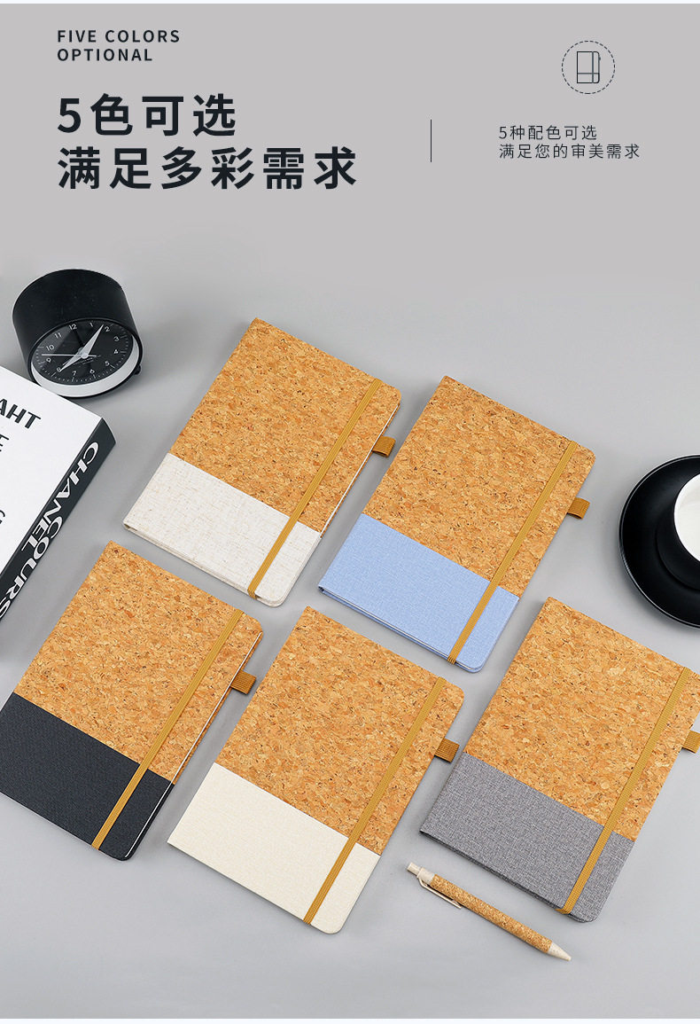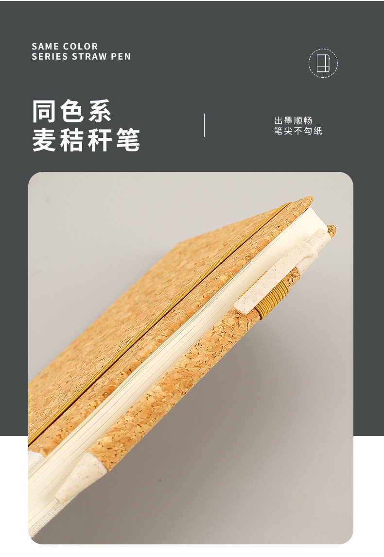 Cork Strap Notebook A5 Faux Leather Pu Eco-Friendly Wheat Straw Spliced Fabric Texture Notepad Business Set