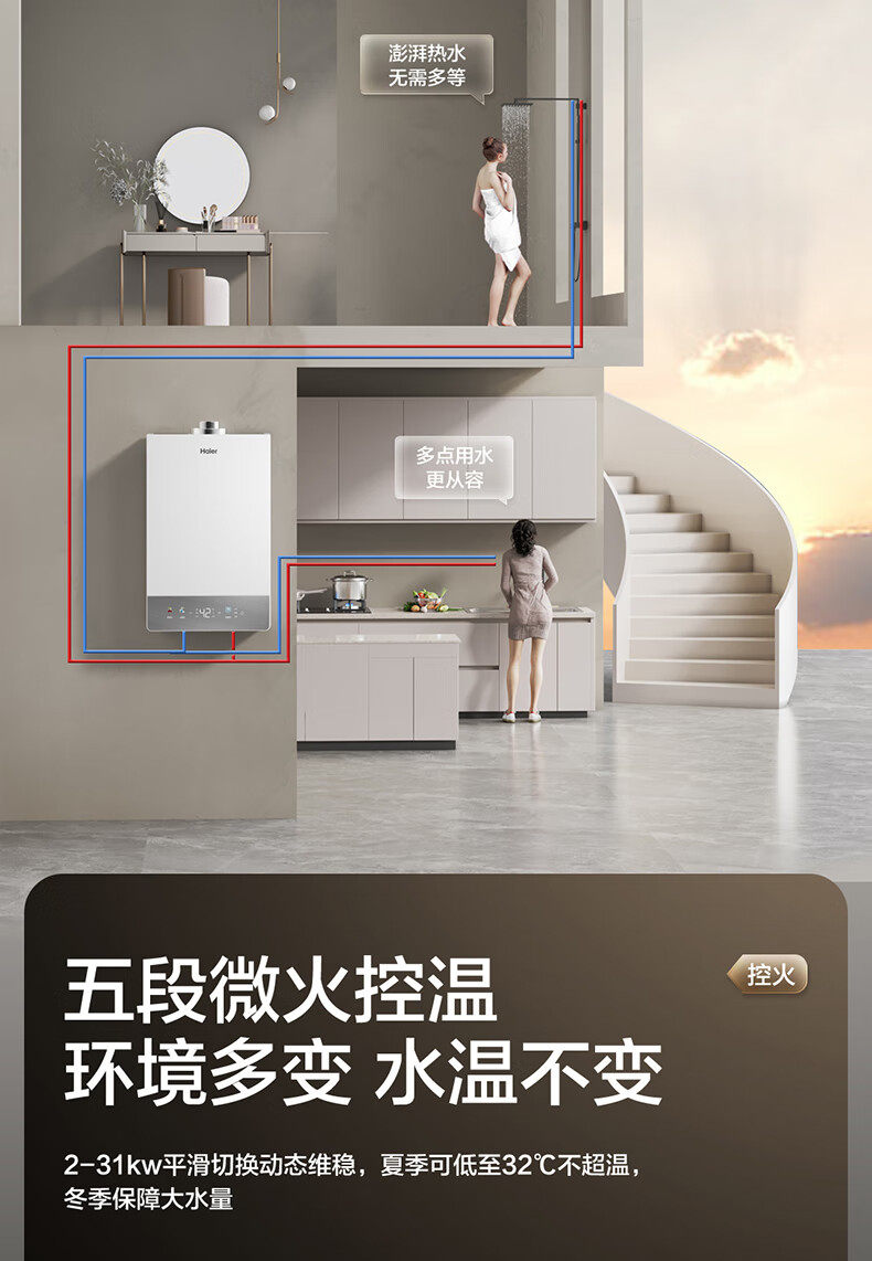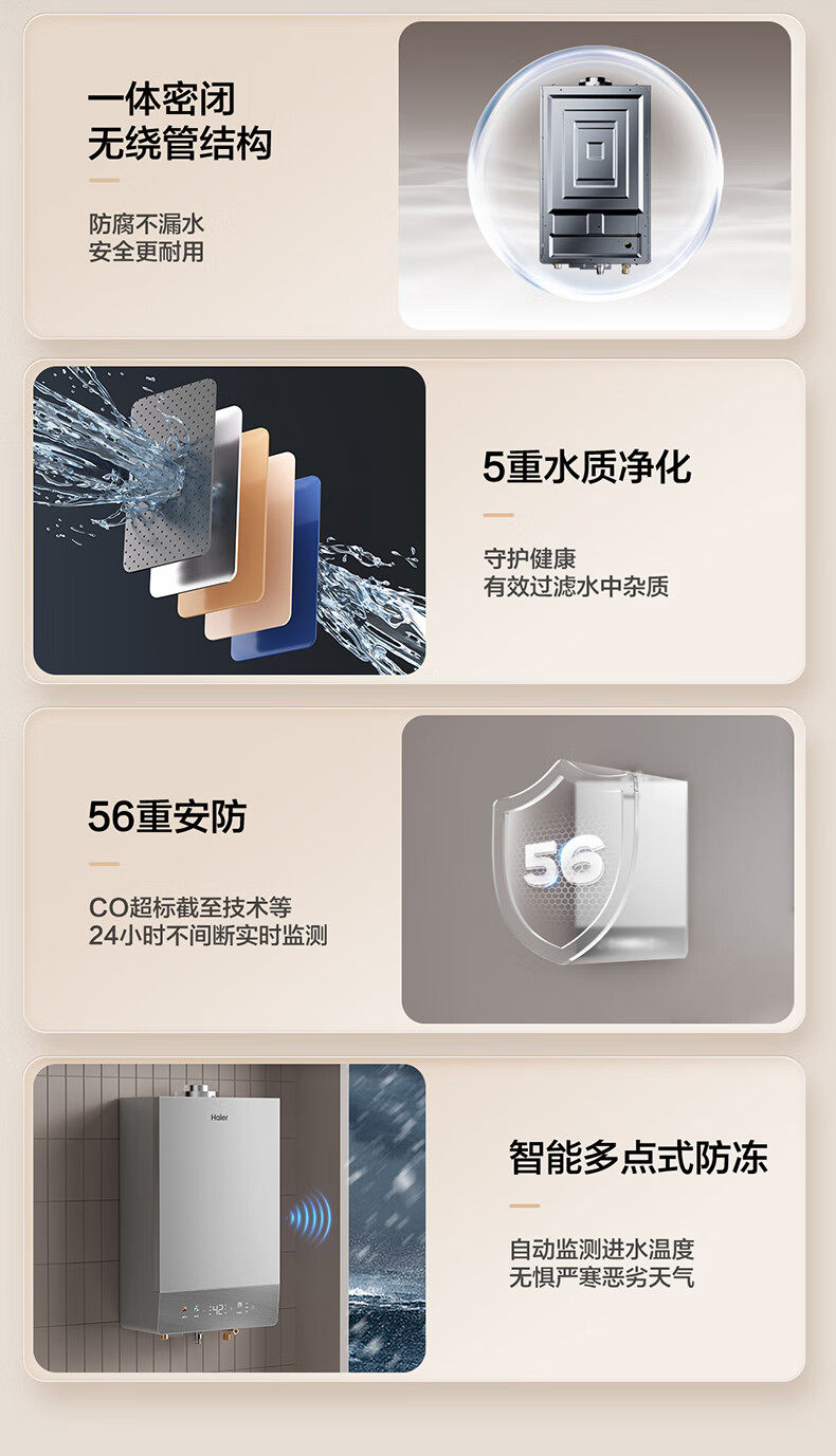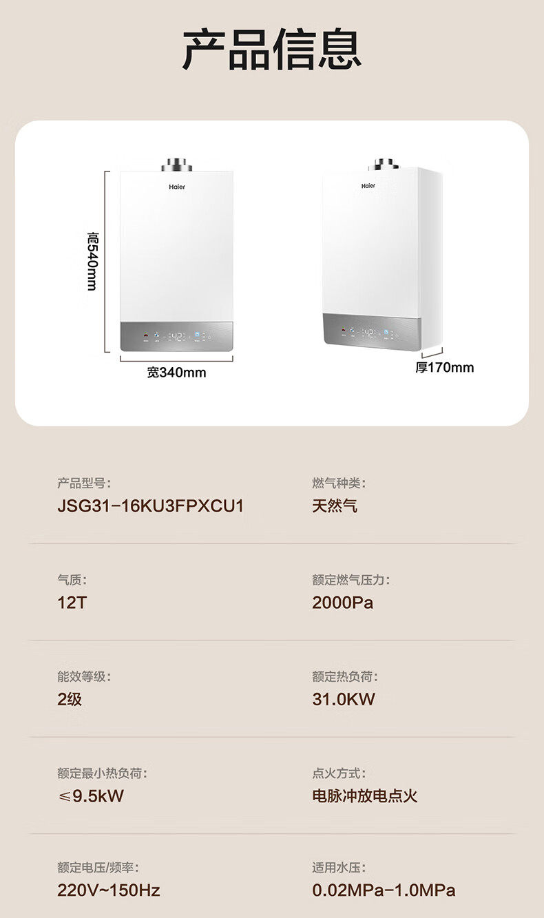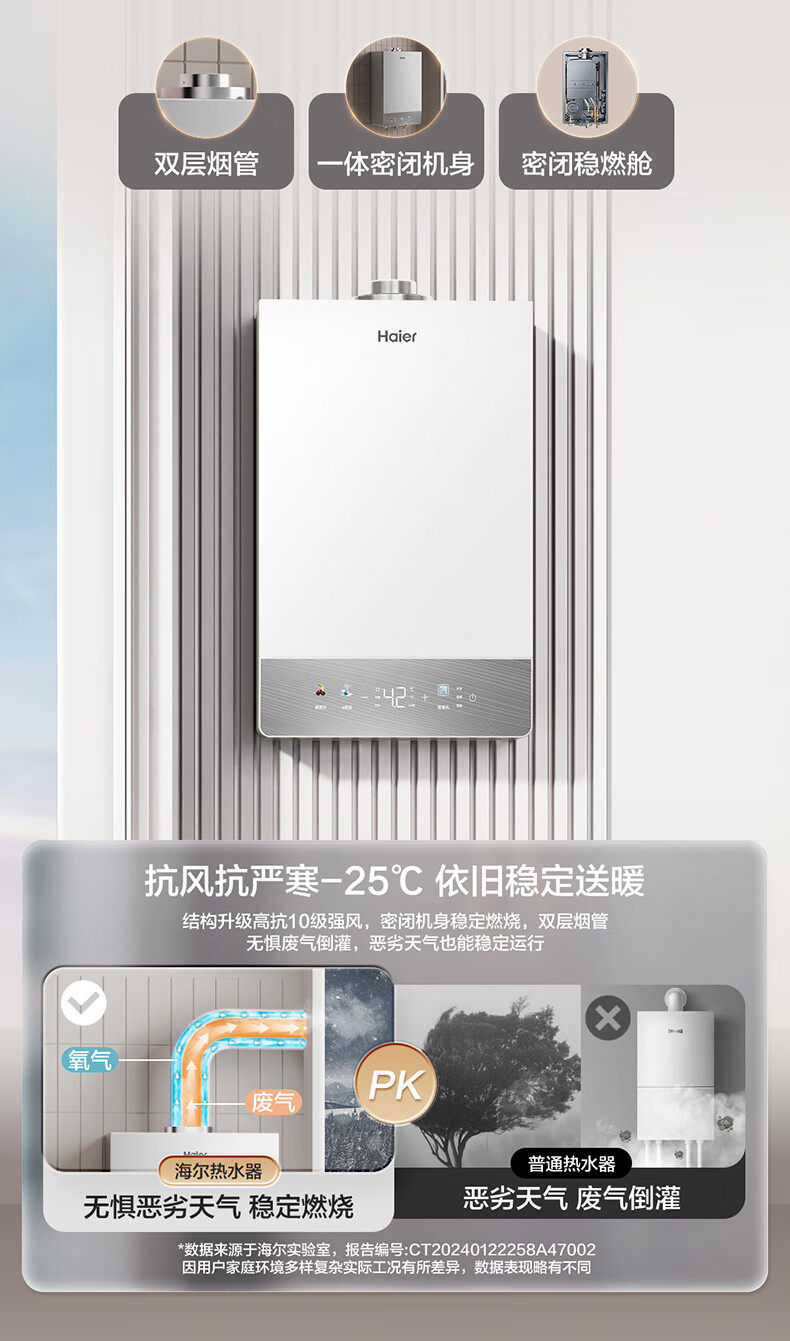 Haier Jsg31-16Ku3Fpxcu1 Gas Water Heater with Fully Enclosed Stable Combustion Chamber, Balanced and Silent