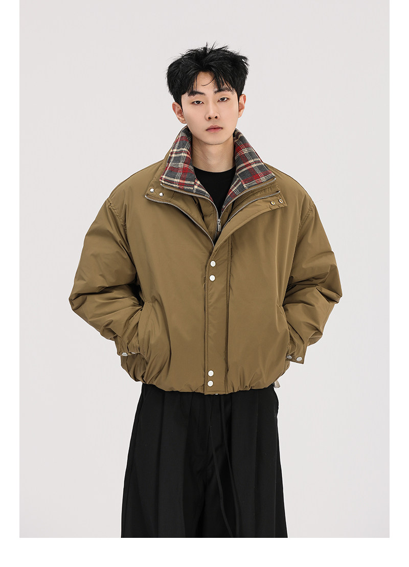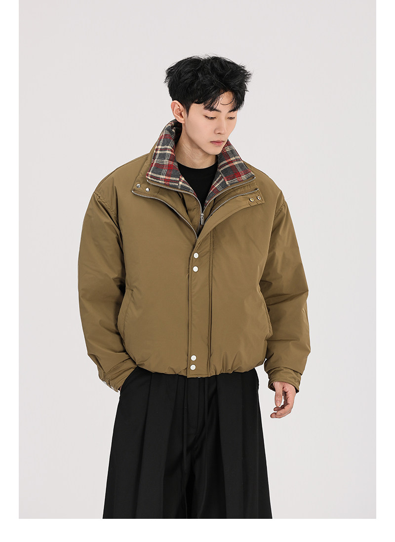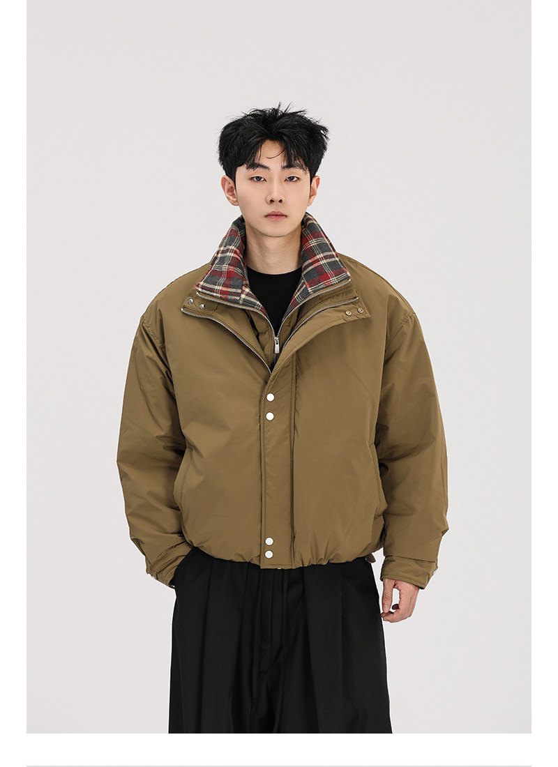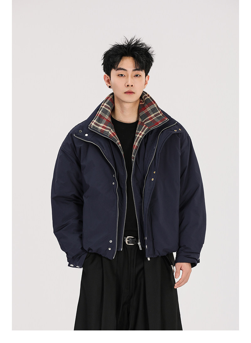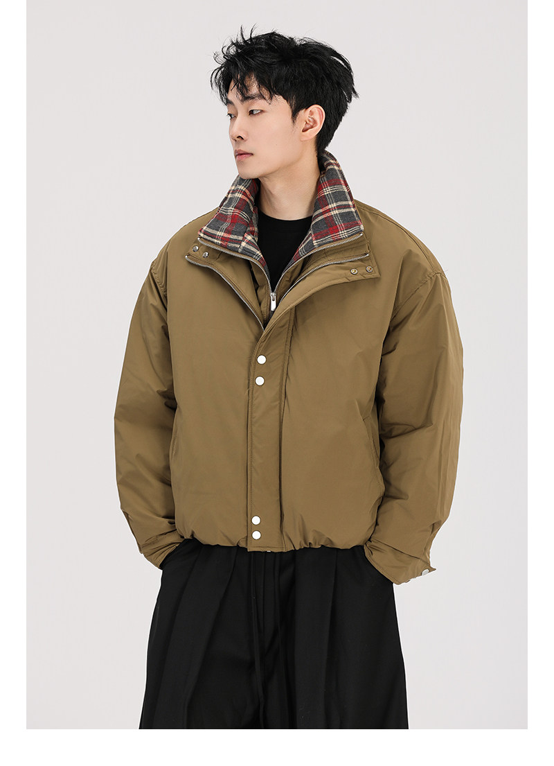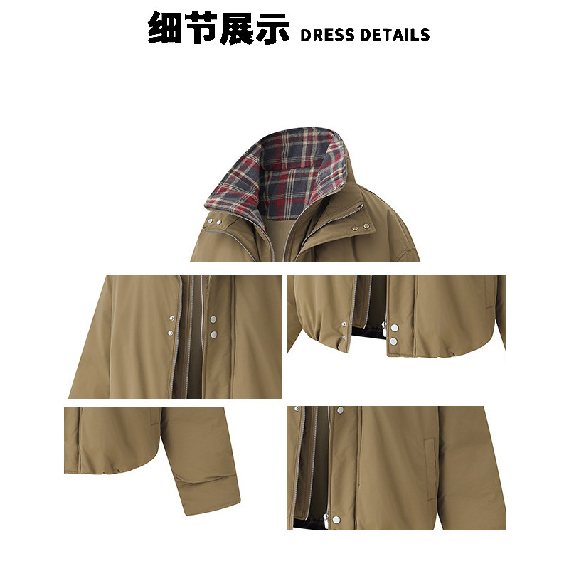 A Carton Winter Plaid Patchwork 90 White Duck down Jacket for Men and Women with a Stylish Design, Faux Two-Piece Cotton Coat, Trendy