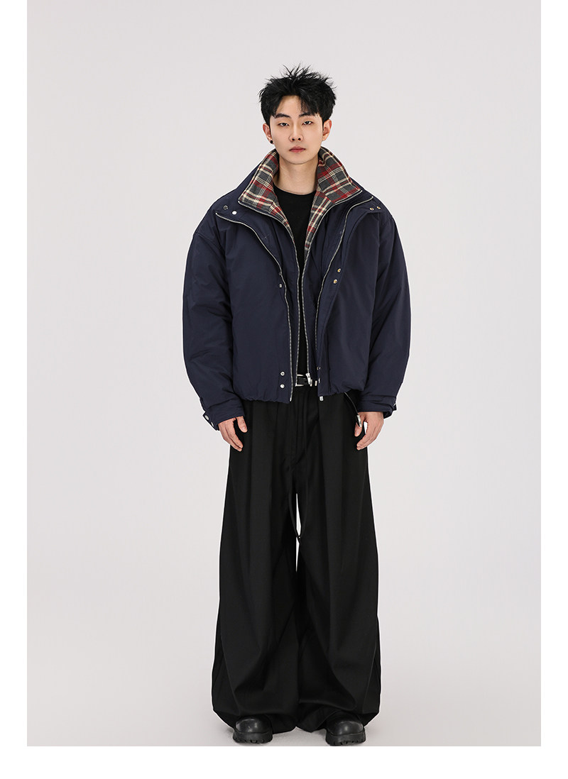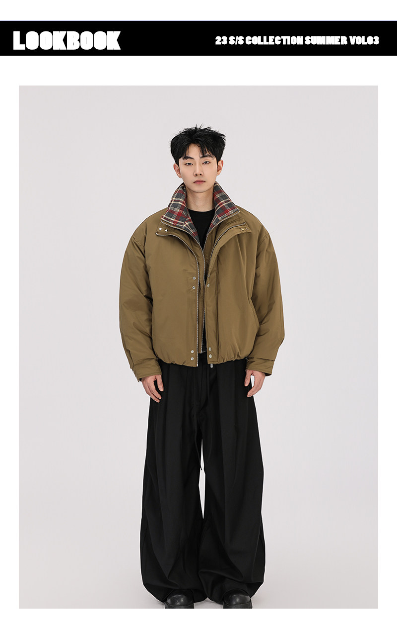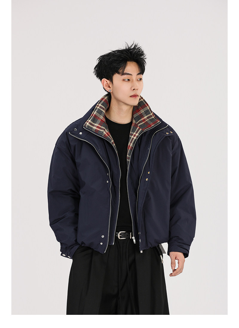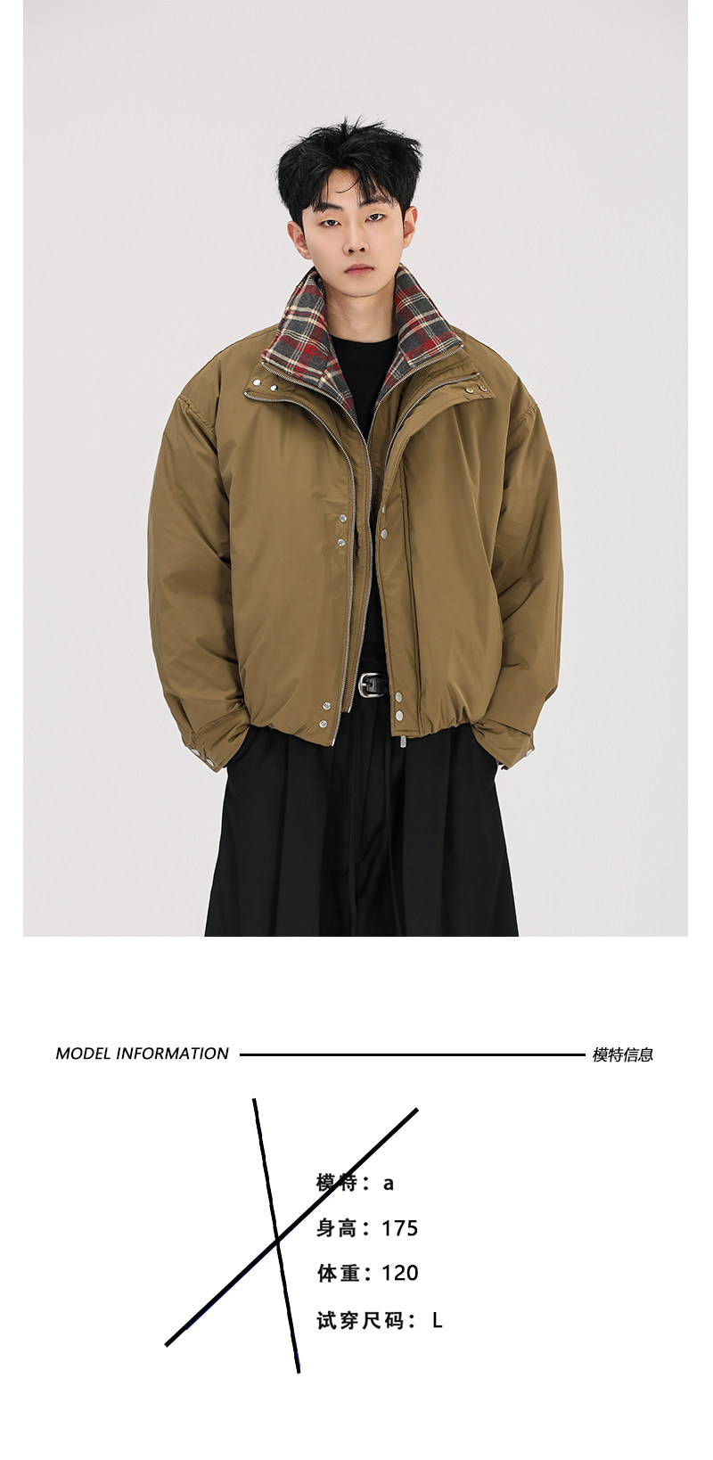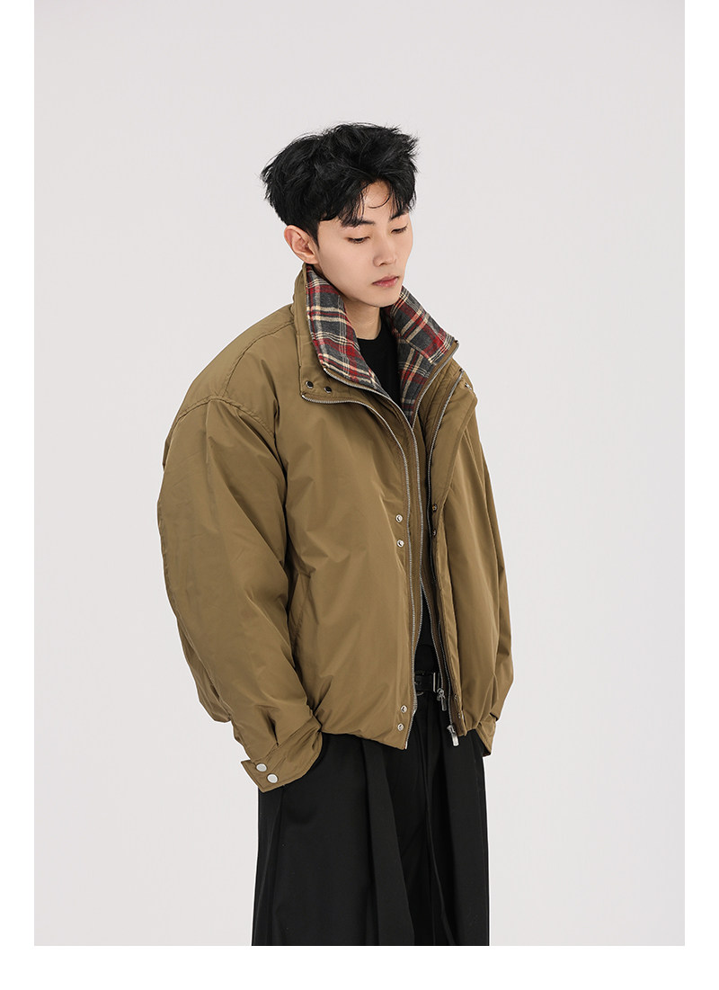 A Carton Winter Plaid Patchwork 90 White Duck down Jacket for Men and Women with a Stylish Design, Faux Two-Piece Cotton Coat, Trendy