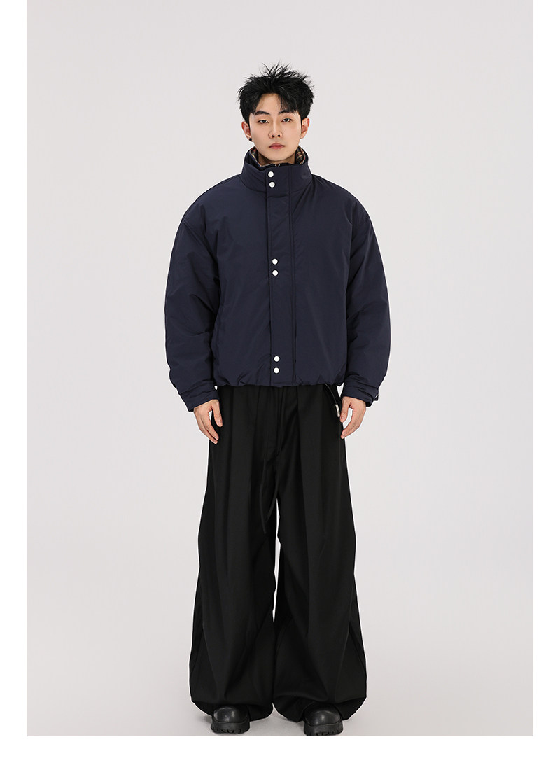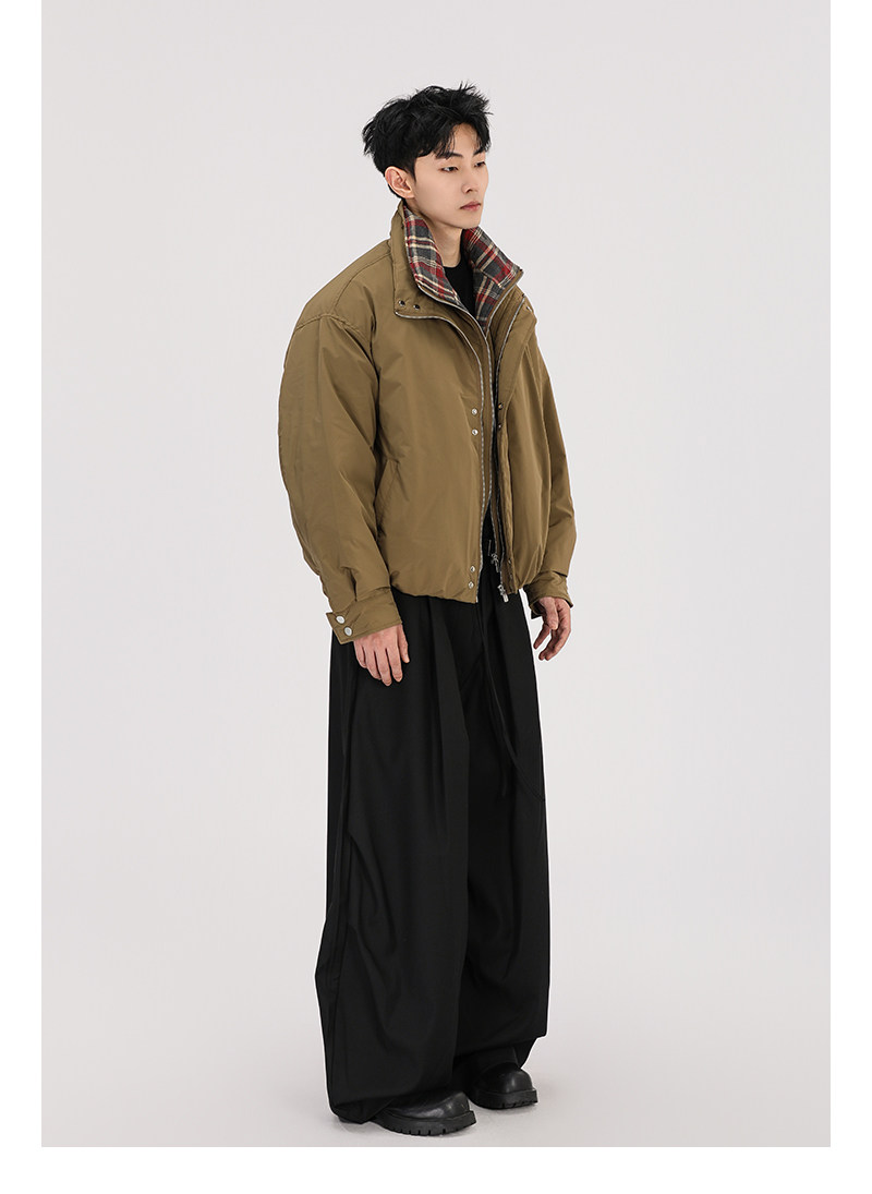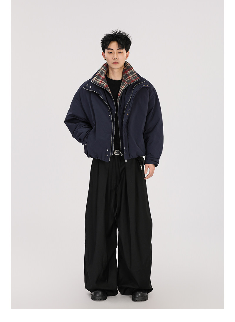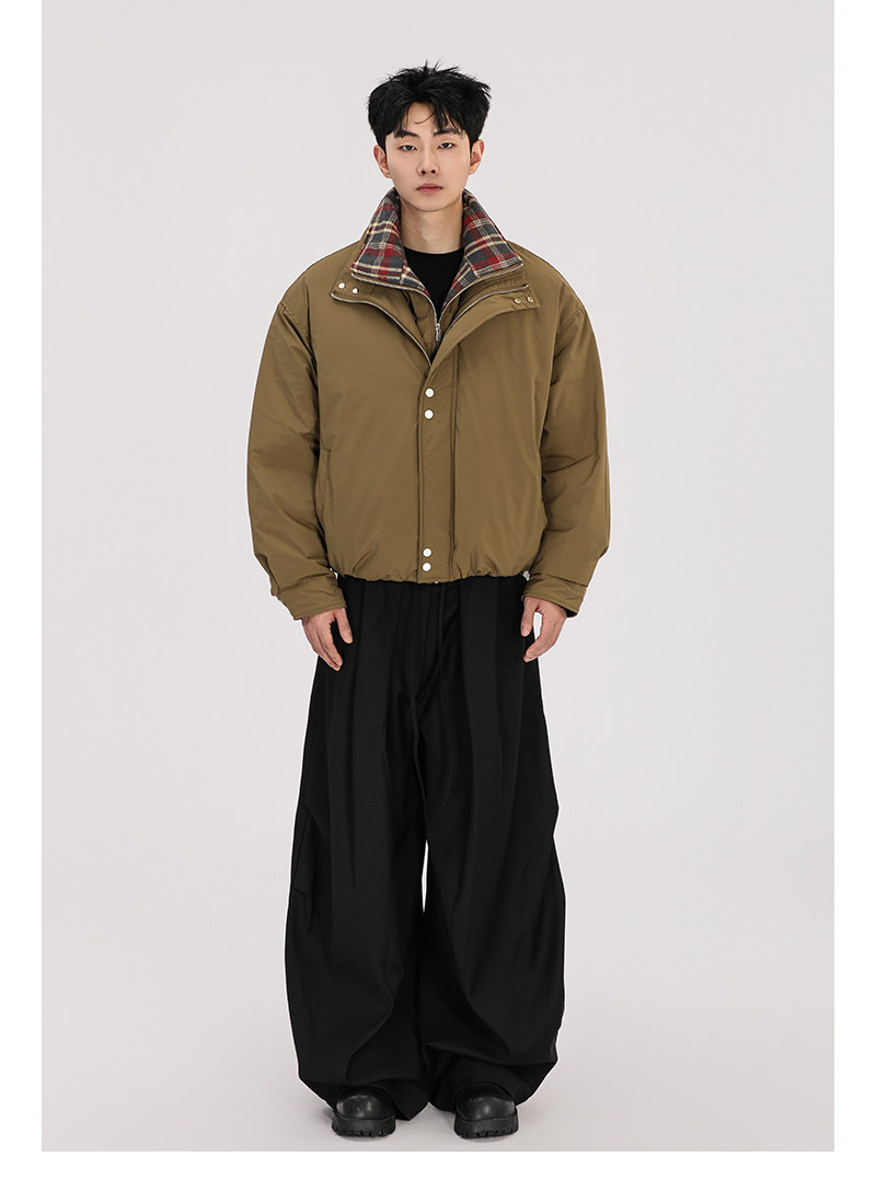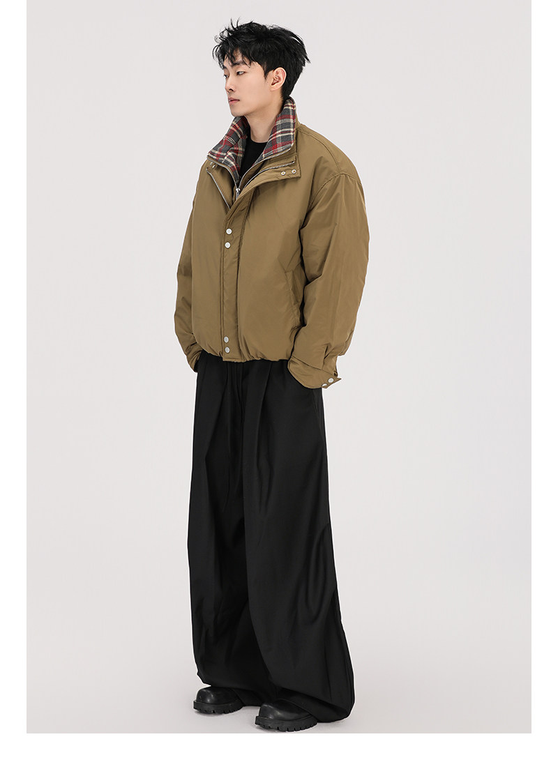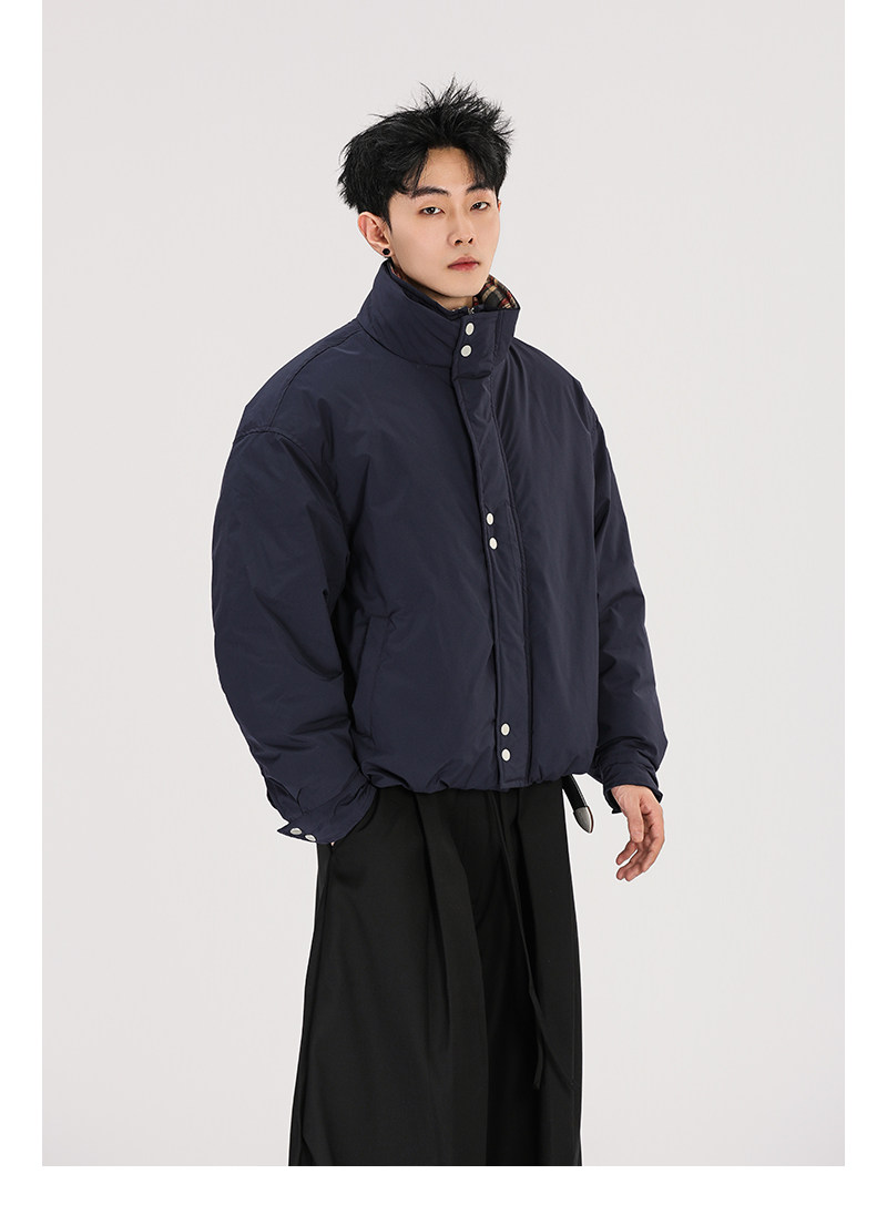 A Carton Winter Plaid Patchwork 90 White Duck down Jacket for Men and Women with a Stylish Design, Faux Two-Piece Cotton Coat, Trendy
