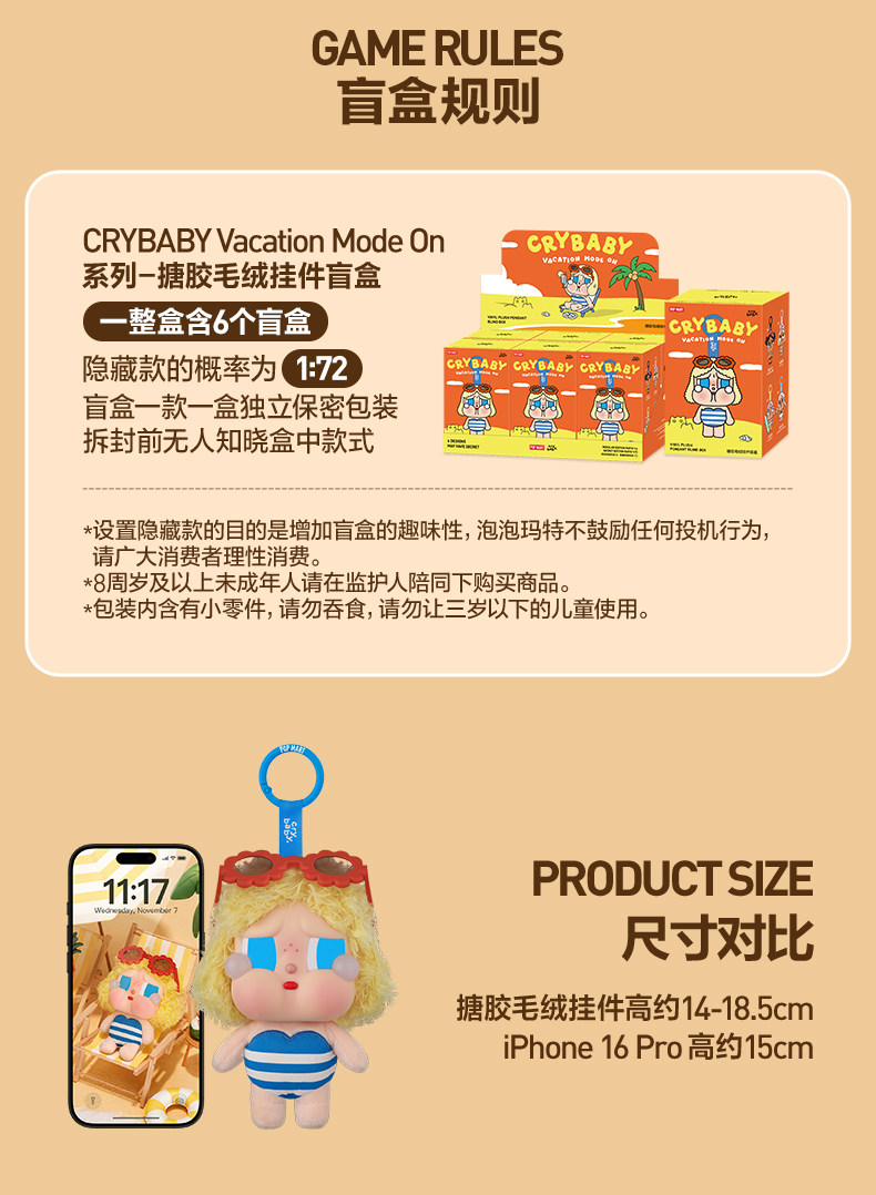 Series Name Crybaby Vacation Mode on Series-Vinyl Plush Pendant Blind Box