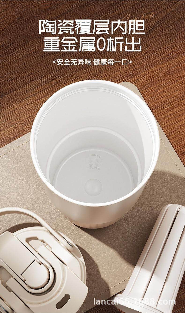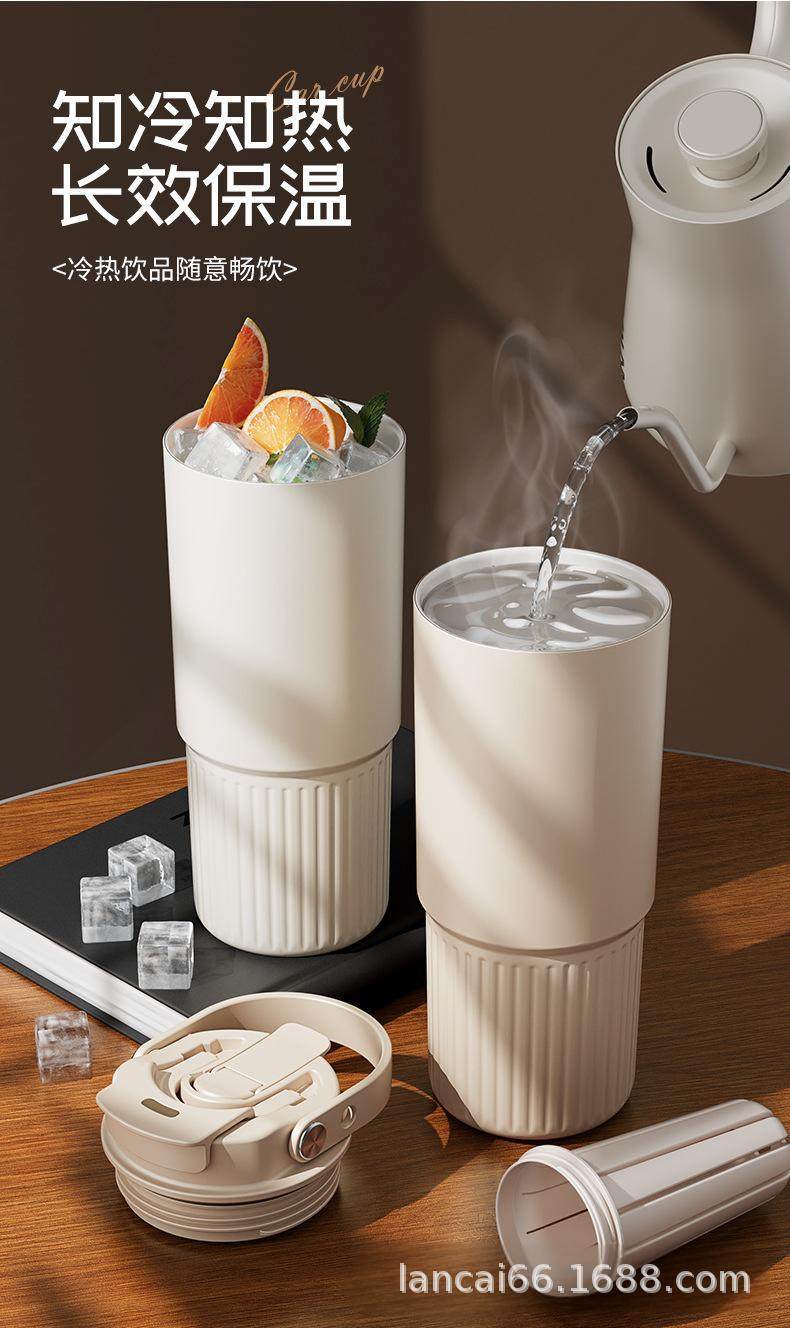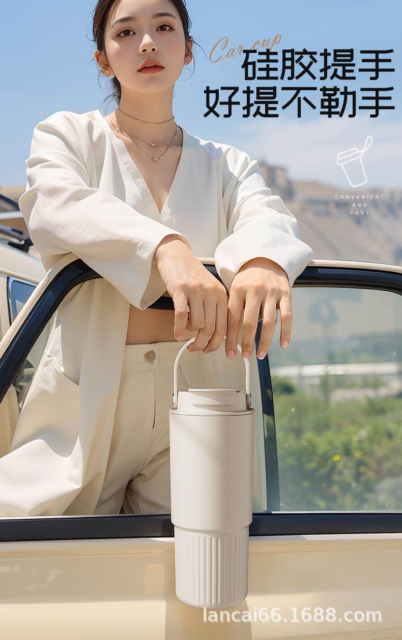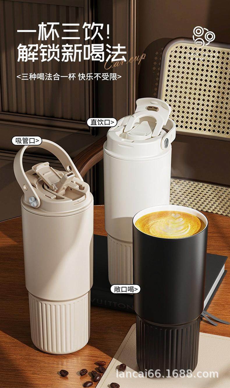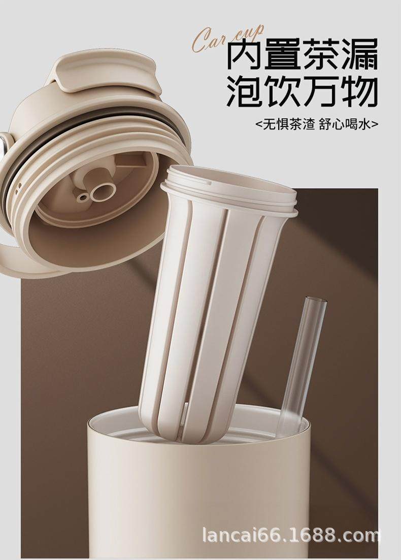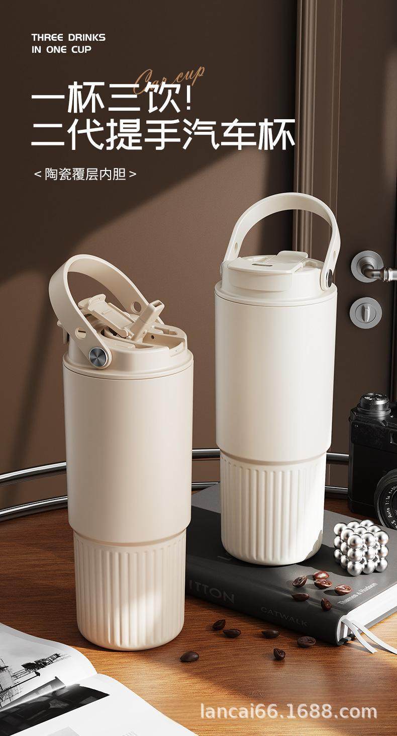 Ceramic Inner Liner Thermos Cup with Straw, Large Capacity Coffee Mug for Men and Women, Stylish Portable Travel Cup