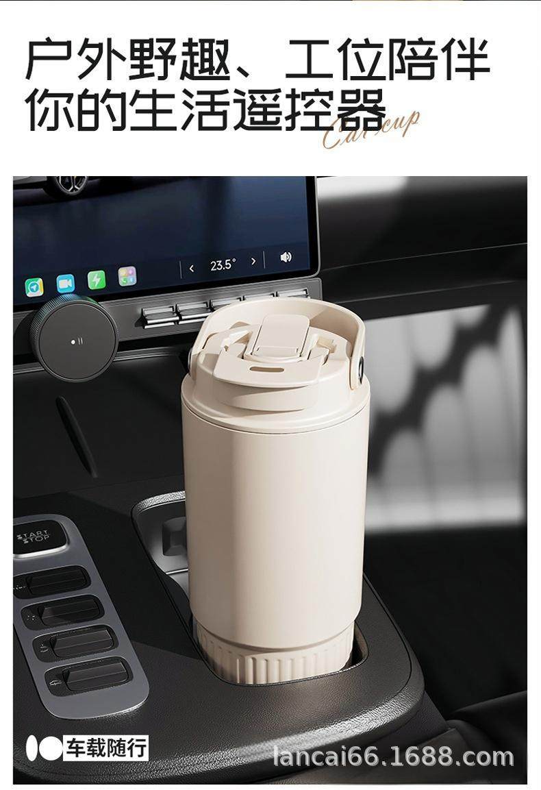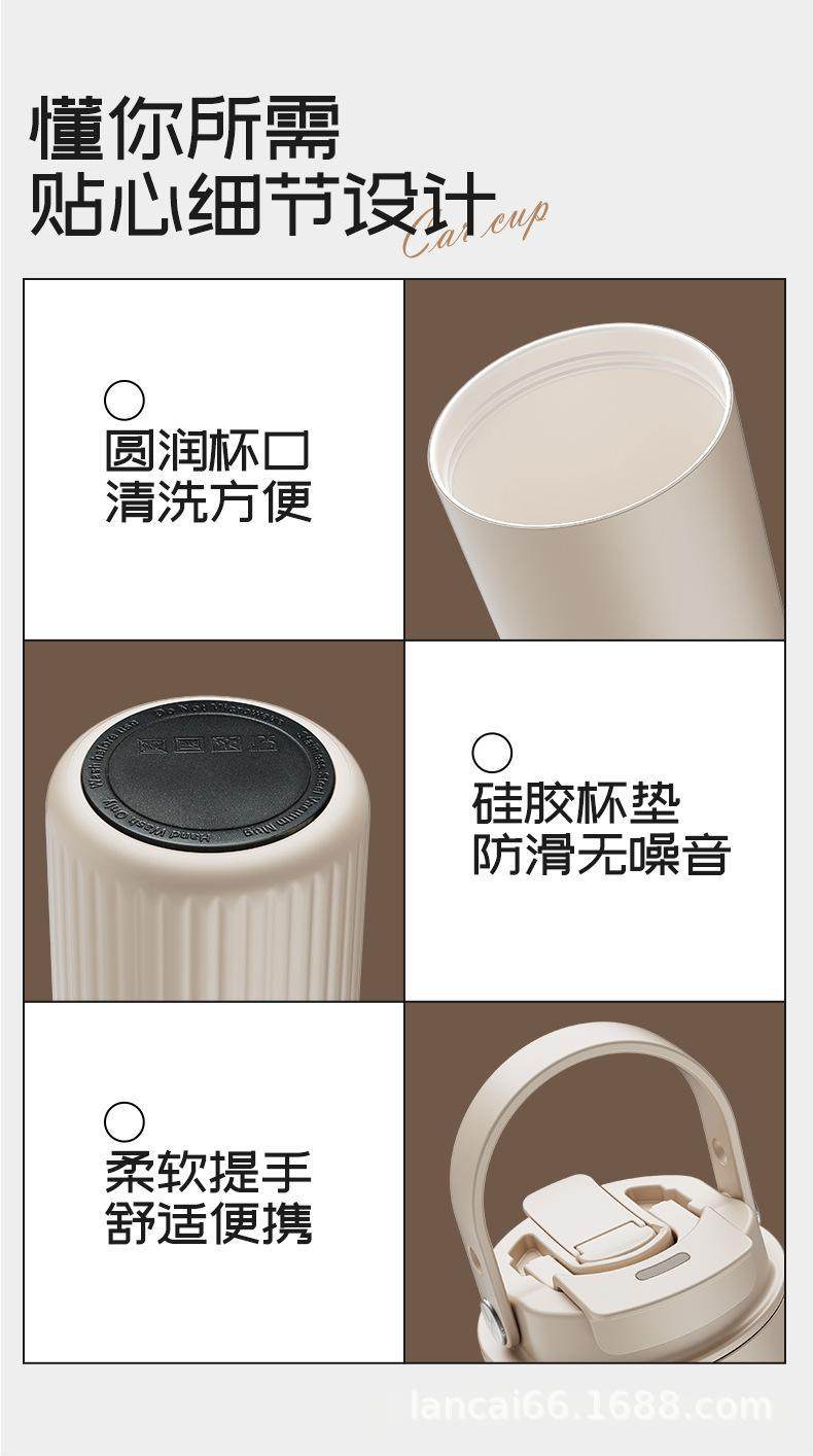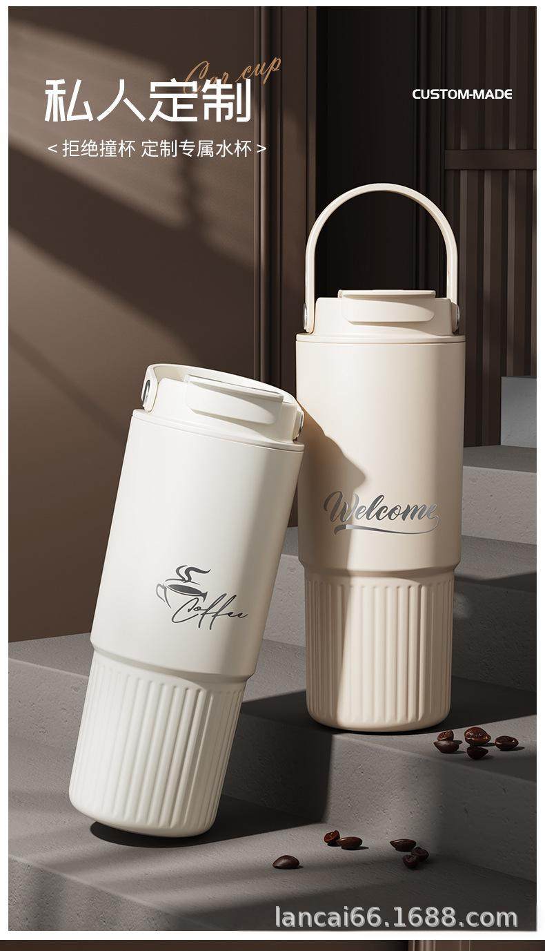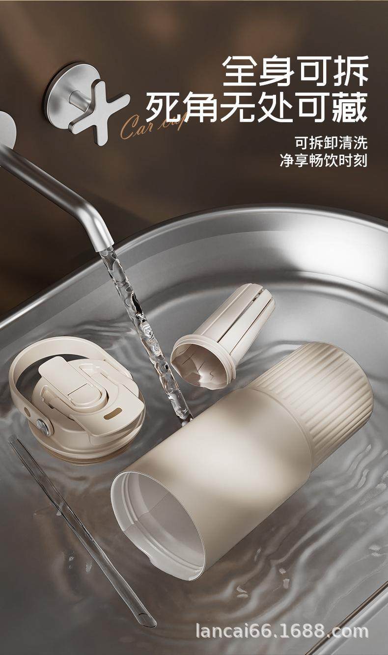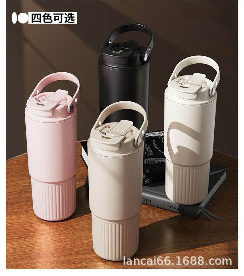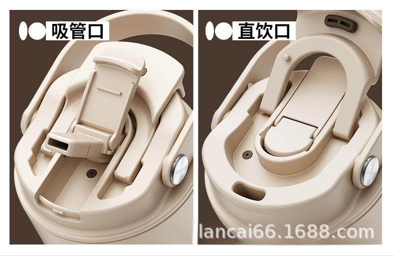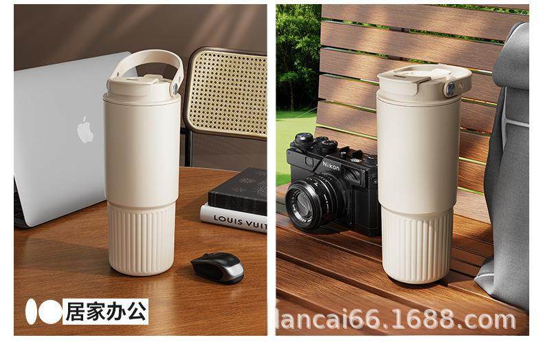 Ceramic Inner Liner Thermos Cup with Straw, Large Capacity Coffee Mug for Men and Women, Stylish Portable Travel Cup