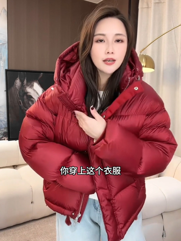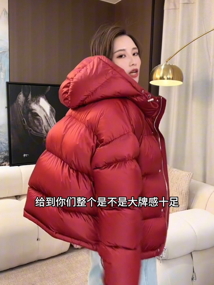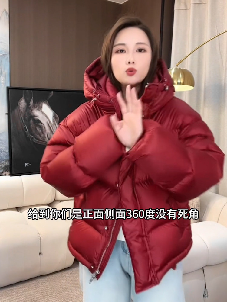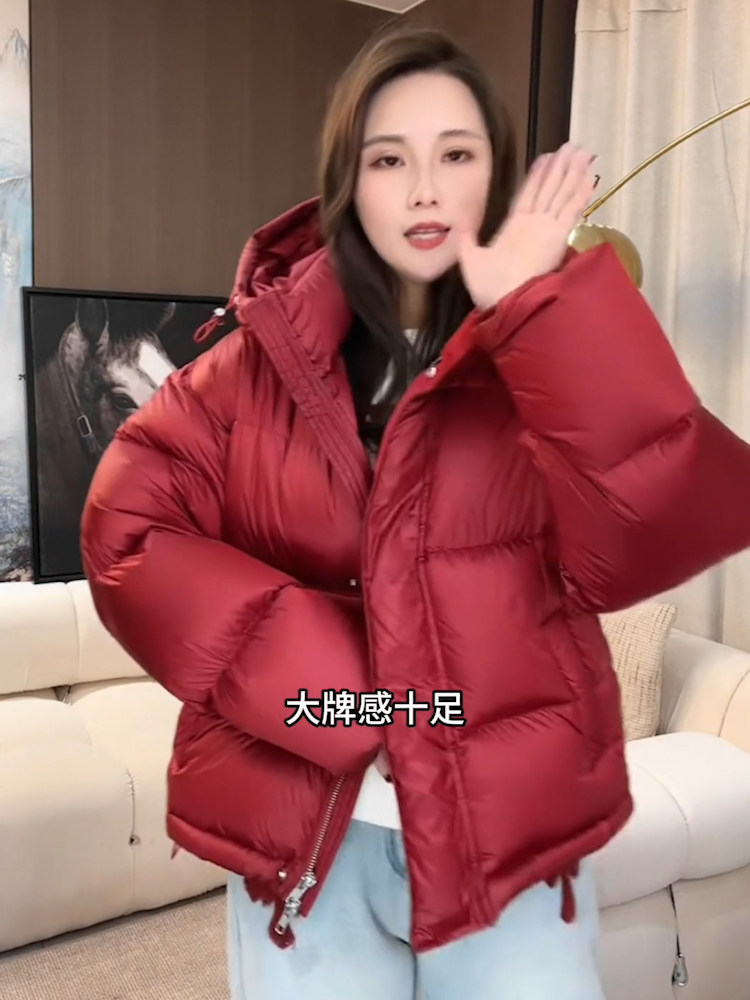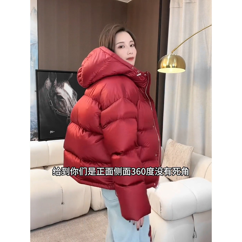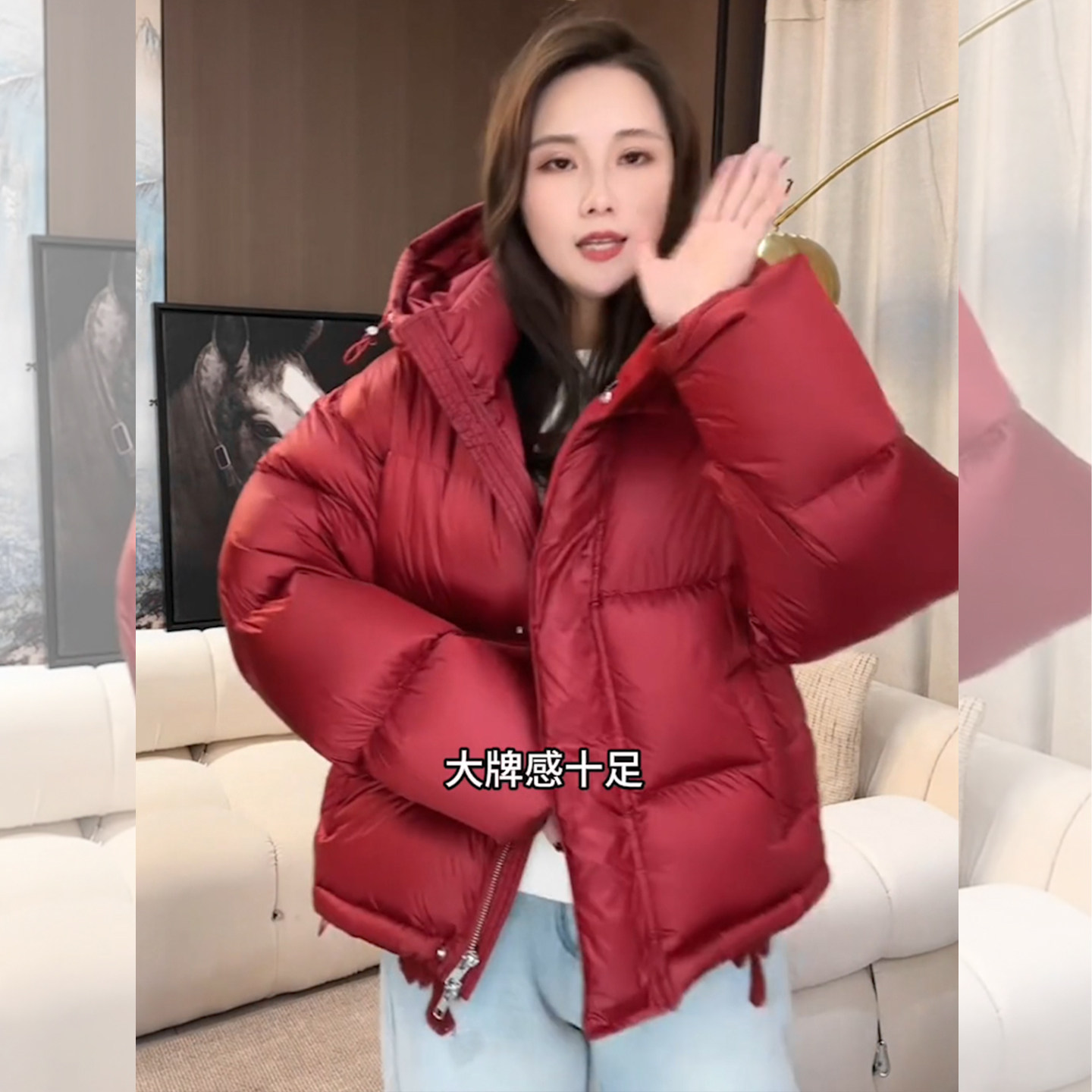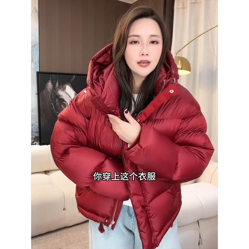 2025 winter new Maillard thickened 50 white duck down warm short New Year shirt red down jacket
