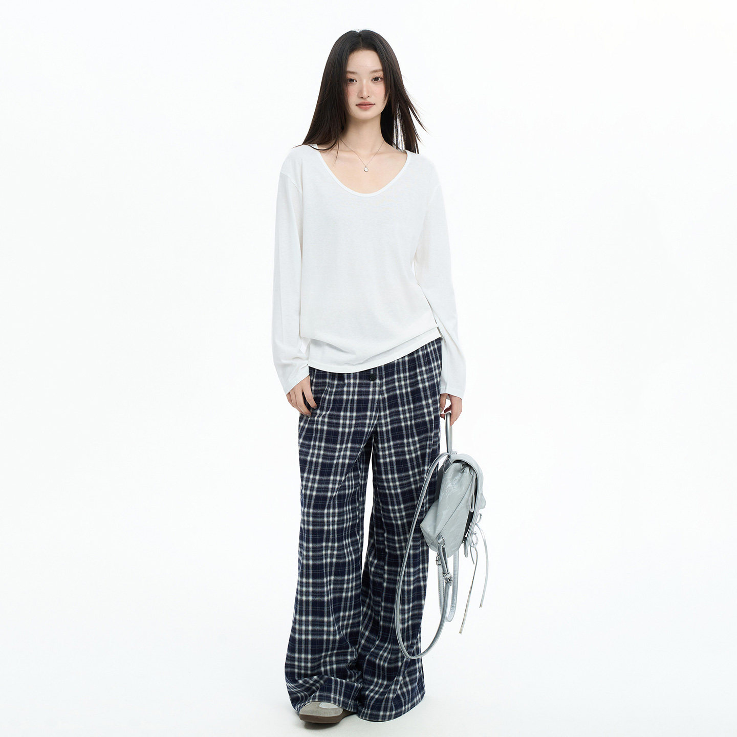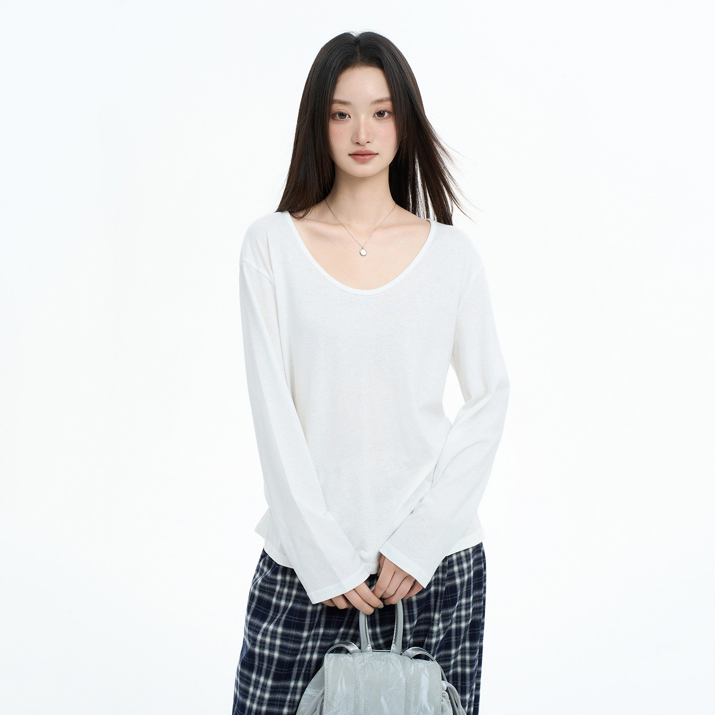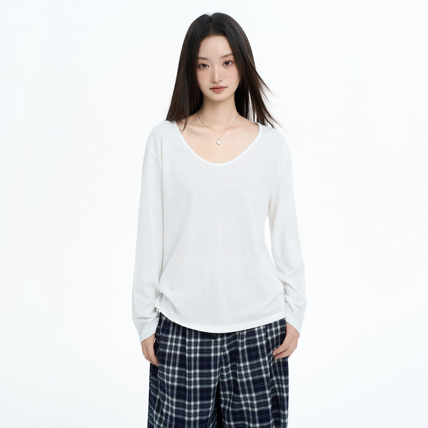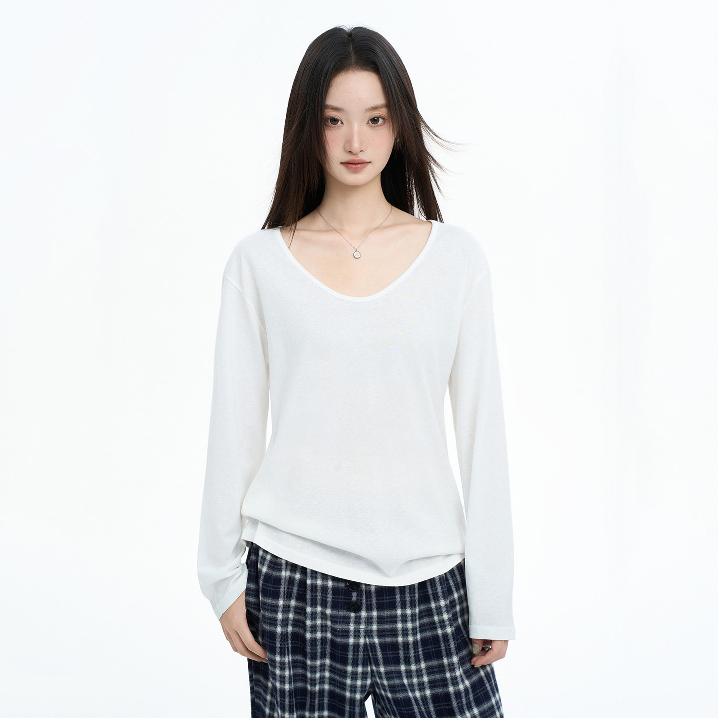 Casual White V-Neck Long-Sleeve T-Shirt for Women, Autumn/Winter 2025 New Style, Loose Fit, Slimming, Layering, Versatile Base Layer Top
