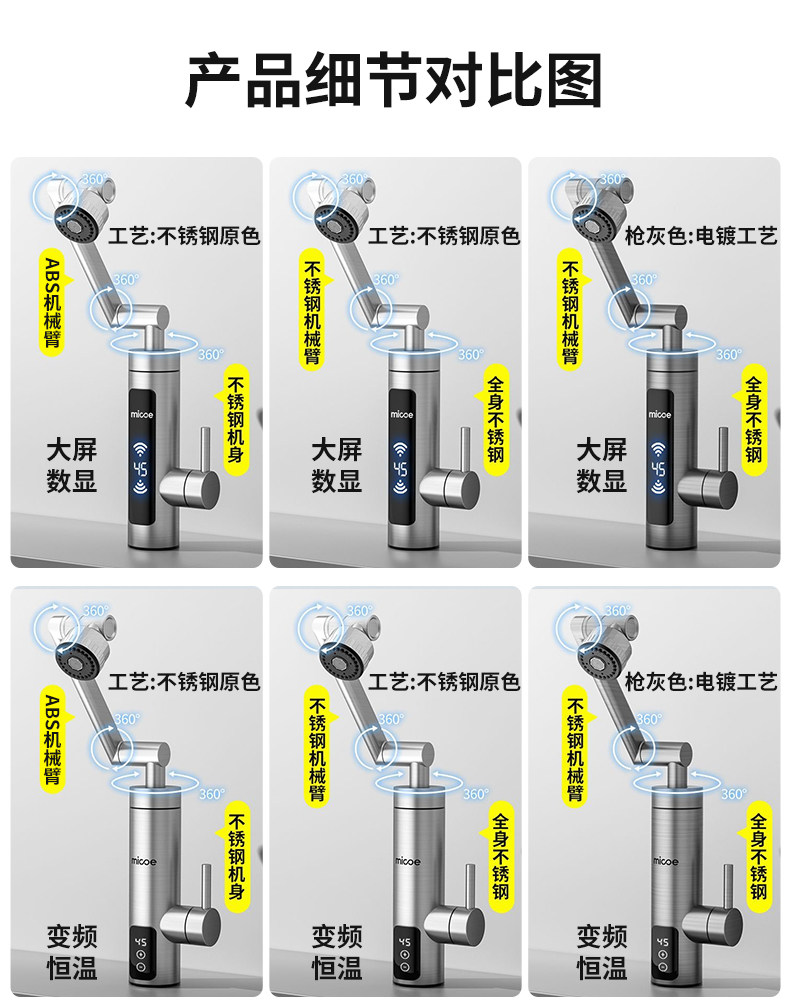 Household Electric Hot Water Faucet with Mechanical Arm, Variable Frequency, Instant Hot Water, Kitchen Appliance, Small Water Heater, Siji Muge