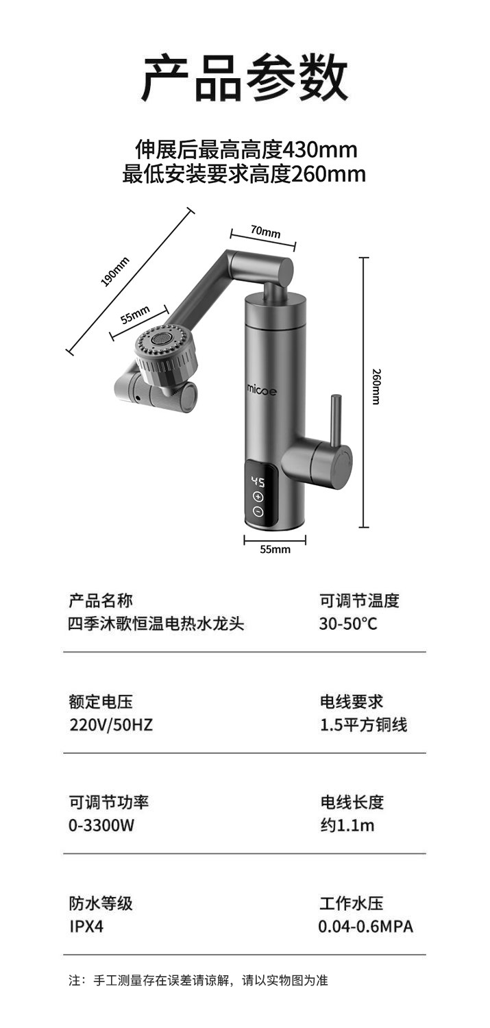 Color Classification White Model + Leakage Protection + Water Supply Pipe [Ticket Included],Silver Model + Leakage Protection + Water Supply Pipe [Ticket Included],White Large Screen + Leakage Protection + Water Supply Pipe [Ticket Included],Silver Large Screen + Leakage Protection + Water Supply Pipe [Ticket Included],Gun Gray Large Screen + Leakage Protection + Water Supply Pipe [Ticket Included],Stainless Steel Abs Robotic Arm + Leakage Protection + Water Supply Pipe [Includes Tax Invoice],Stainless Steel + Leakage Protection + Water Supply Pipe [Invoice Included],Stainless Steel + Leakage Protection + Water Supply Pipe [Invoice Included],Stainless Steel Inverter Water Heater with Leakage Protection and Water Inlet Pipe [Invoice Included],White Constant Temperature Inverter Model + Leakage Protection + Water Inlet Pipe [Ticket Included],Silver Constant Temperature Variable Frequency Model + Leakage Protection + Water Supply Pipe [Ticket Included],Gun Gray Constant Temperature Inverter Model + Leakage Protection + Water Supply Pipe [Ticket Included],Stainless Steel Thermostatic Inverter Water Heater + Leakage Protection + Water Inlet Pipe [Invoice Included],Stainless Steel Abs Robotic Arm Thermostatic Inverter Model + Leakage Protection + Water Inlet Pipe [Tax Included],Double Handle White (Upgraded Model) + Leakage Protection + Water Supply Pipe [Ticket Included],Double Handle Silver (Upgraded Model) + Leakage Protection + Water Supply Pipe [Ticket Included]