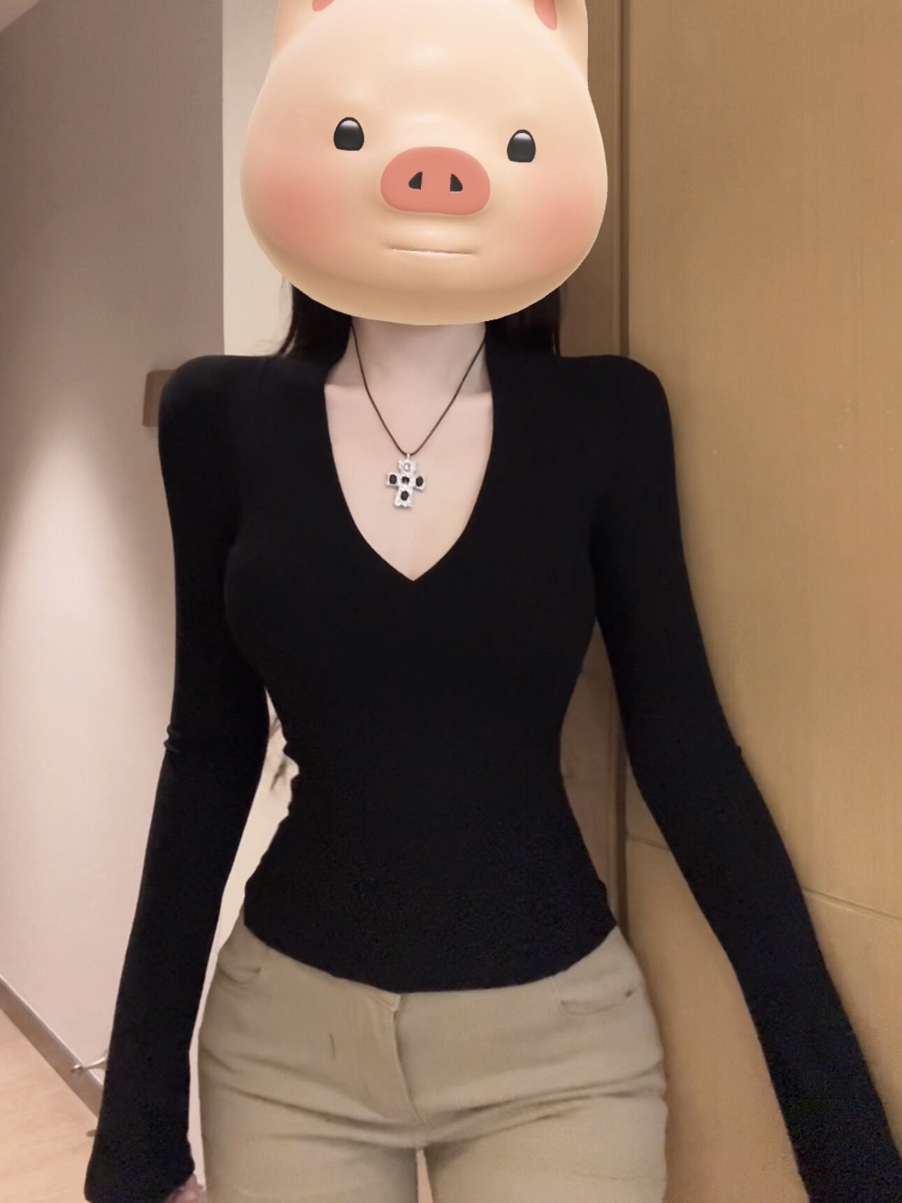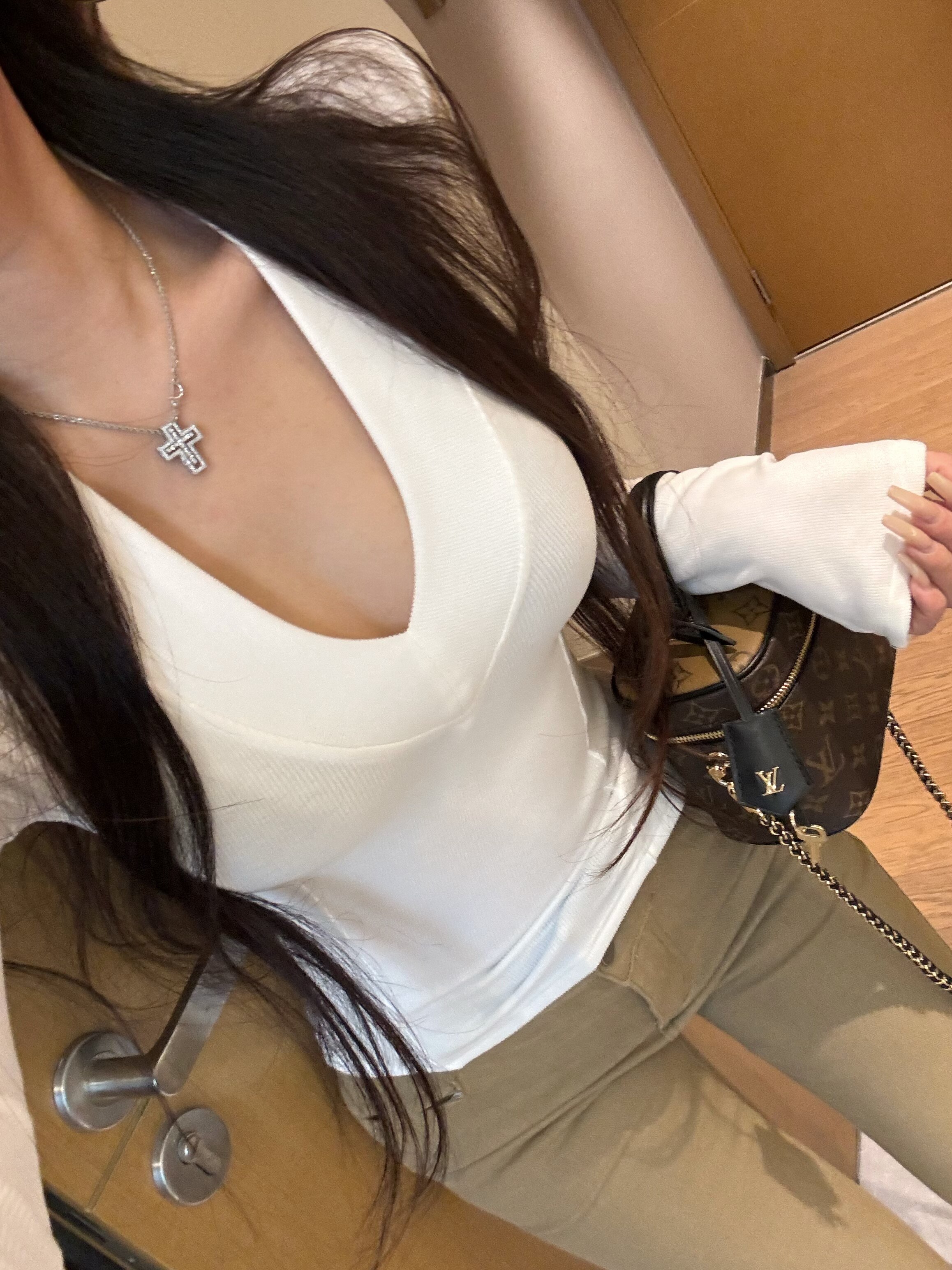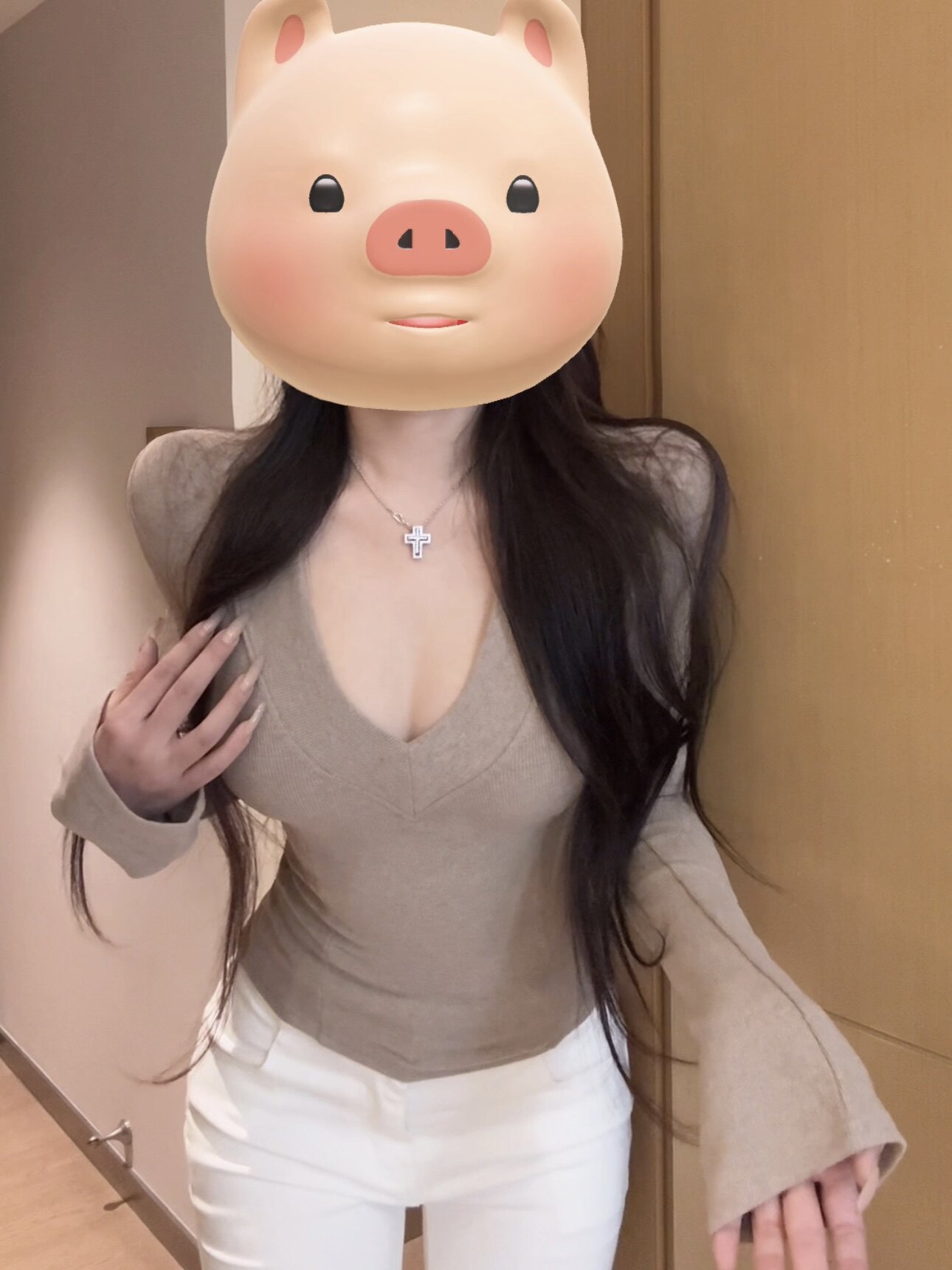Hong Kong Style Mature V-Neck Flared Long-Sleeve T-Shirt for Women, Autumn and Winter Pure Desire Sexy Fishbone Waist-Cinching Regular Shoulder Base Layer Top