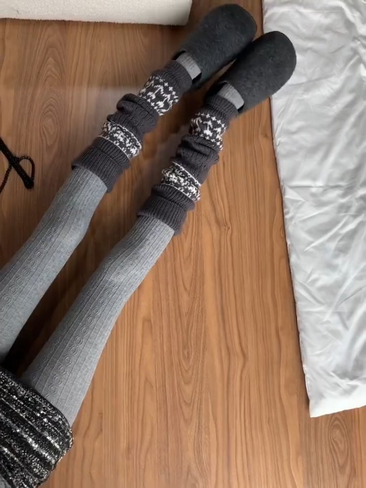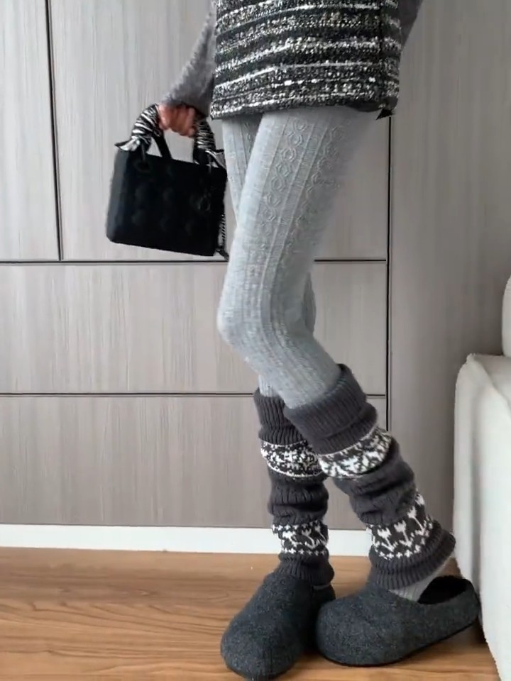 Retro Fair Isle Stacked Socks for Autumn and Winter, Warm and Suitable for Pairing with Snow Boots, Leggings, Cashmere Thickened Gray Calf Sleeves