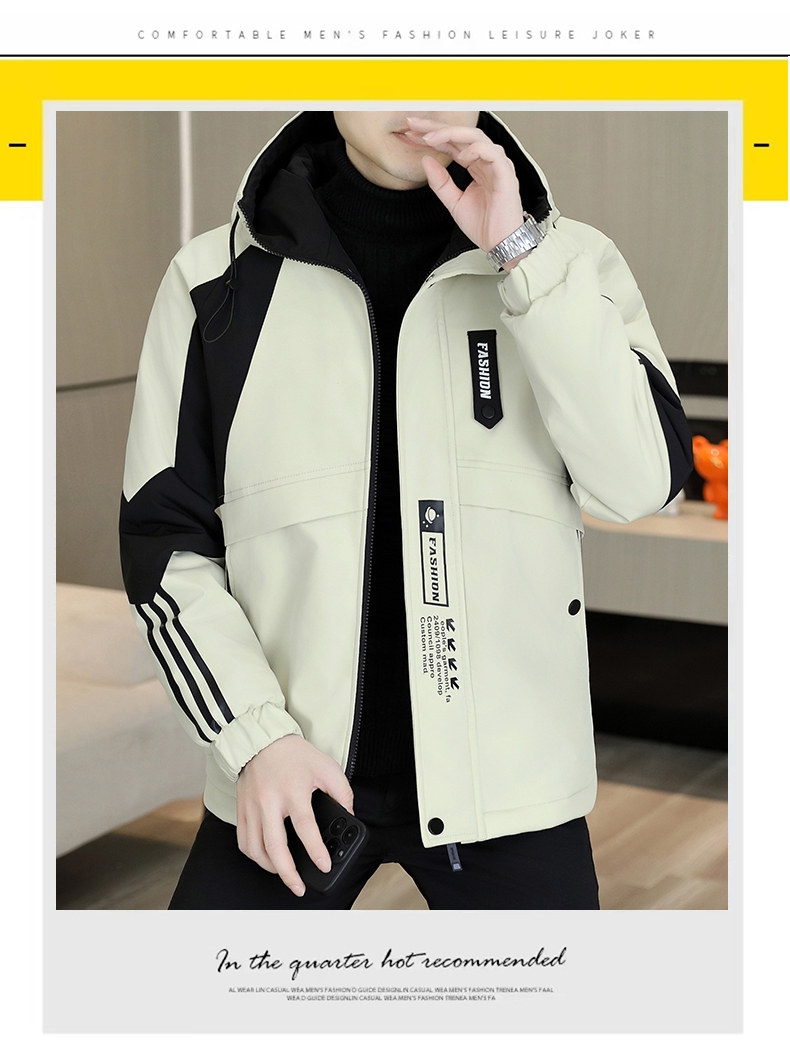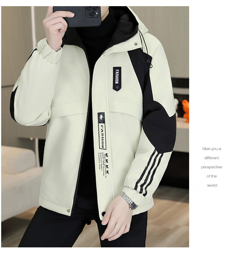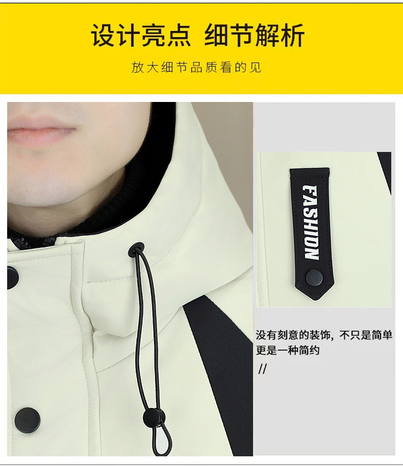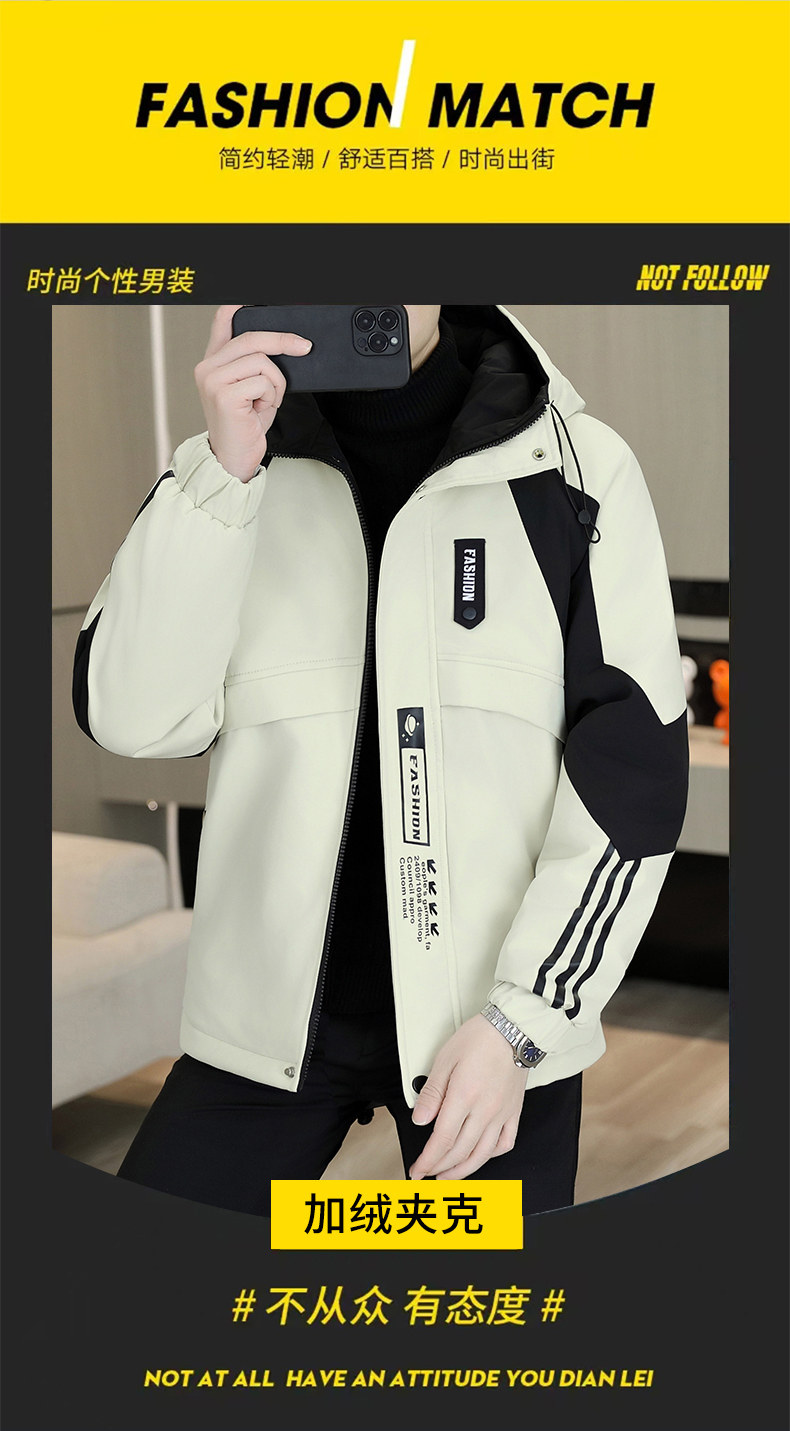 Plush jacket men's winter hooded thickened warm work jacket teenagers trendy casual contrast color parka cotton jacket