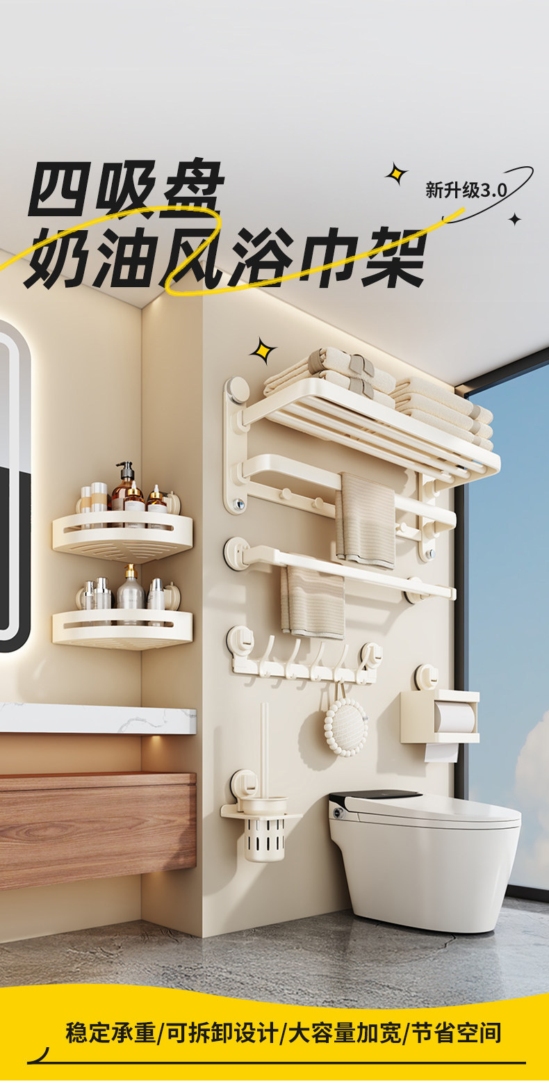 Color Classification 【2026 New Model❤Four Suction Cups] Milk White-Double Folding Towel Rack 40cm,【2026 New Model❤Four Suction Cups] Milk White-Double Folding Towel Rack 50cm,【2026 New Model❤Four Suction Cups] Milk White-Double Folding Towel Rack 60cm,2026 New Model❤Four Suction Cups - Cream Color [Two-Piece Set a - Bath Towel Rack 60cm + Towel Bar 60cm],2026 New Model❤Four Suction Cups - Milky White [Two-Piece Set B - Bath Towel Rack 60cm + Triangle Basket*2],2026 New Model❤Four Suction Cups - Cream Color [Three-Piece Set a - Bath Towel Rack 60cm + Towel Bar 60cm + Triangle Basket * 2],2026 New Model❤Four Suction Cups - Milky White [Three-Piece Set B - Bath Towel Rack 60cm + Triangle Basket * 2 + Paper Towel Holder],2026 New Model❤Four Suction Cups - Milky White [Four-Piece Set - Bath Towel Rack + Triangular Basket * 2 + Paper Towel Holder + Toilet Brush],2026 New Model❤Four Suction Cups - Milky White [Five-Piece Set - Bath Towel Rack + Towel Bar + Triangular Basket * 2 + Paper Towel Holder + Toilet Brush],2026 New Model ❤ Four Suction Cups - Milky White [Six-Piece Set - Bath Towel Rack + Towel Bar + Triangular Basket * 2 + Paper Towel Holder + Toilet Brush + Row Hook]