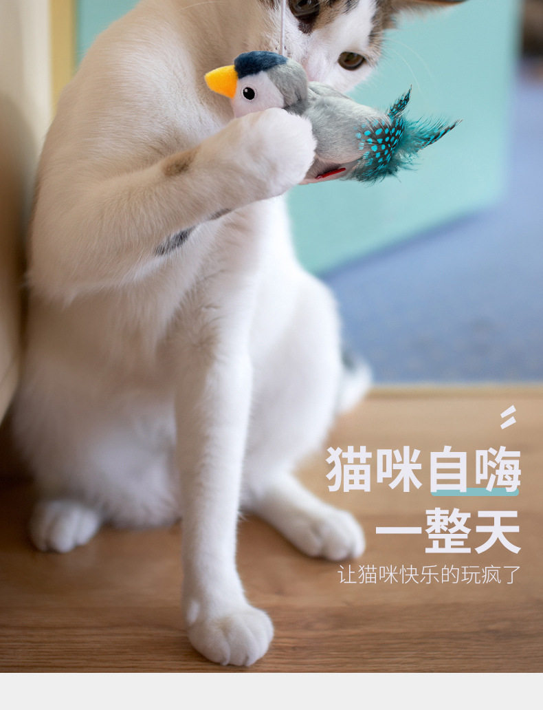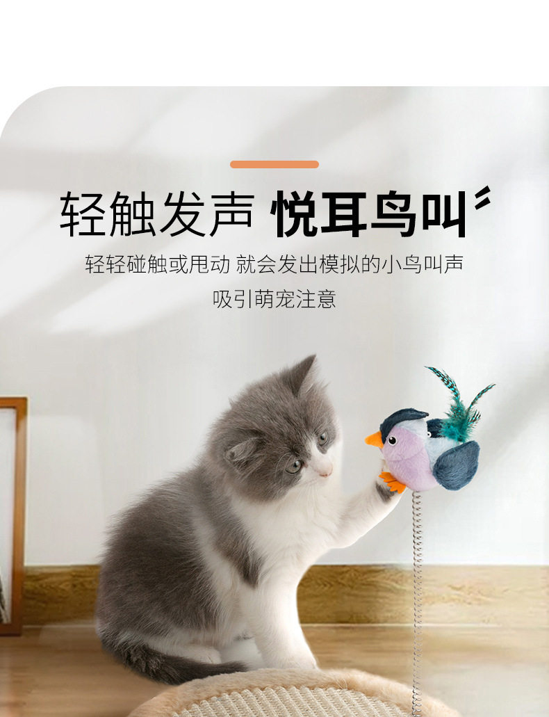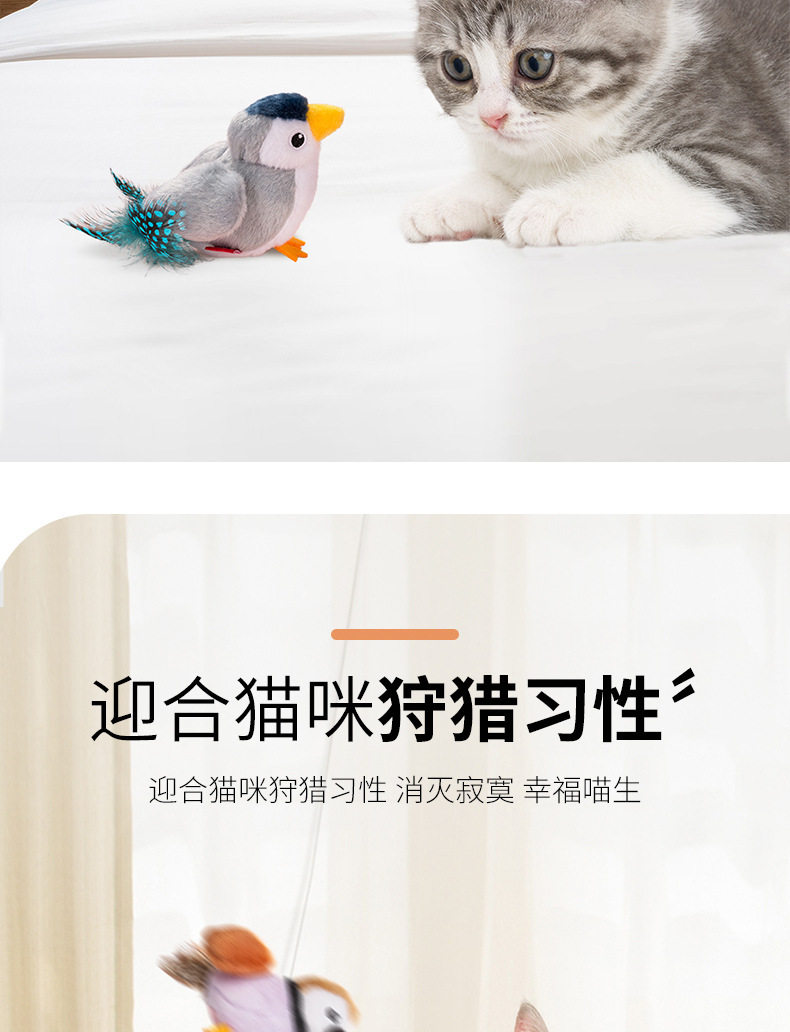 Electric Sound-Making Cat Toy, Automatic Cat Teaser, Realistic Bird Sound Teaser Stick, Hanging Bird Sound Toy for Cats to Entertain Themselves and Relieve Boredom