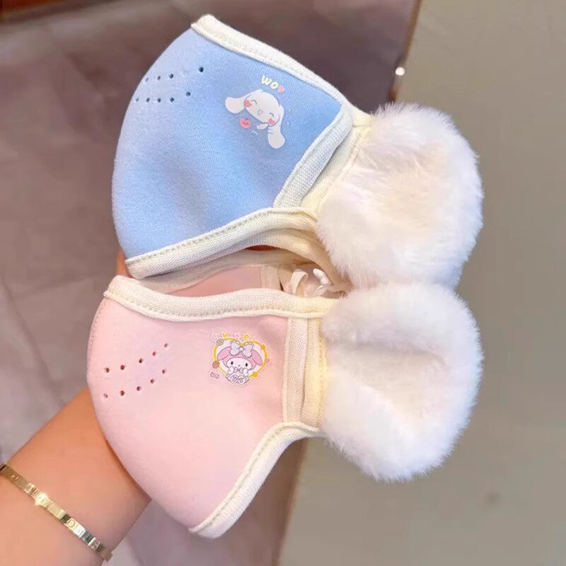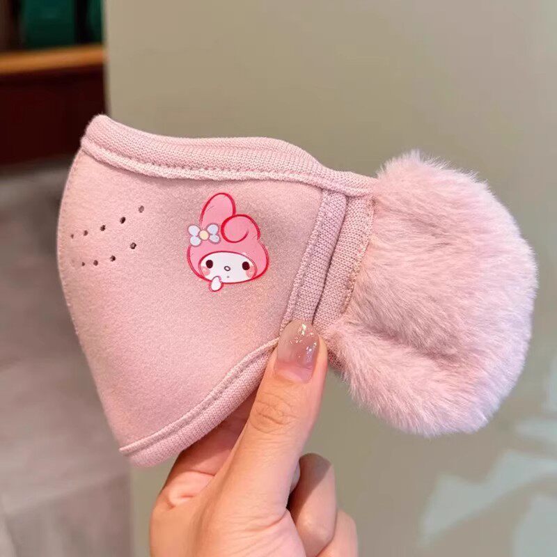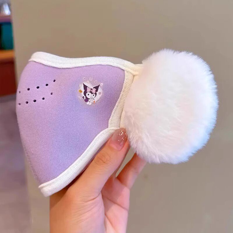 Children's Warm Mask and Earmuffs Integrated Autumn and Winter Kuromi Cartoon Cute Student Anti-Cold and Windproof Plush Mask