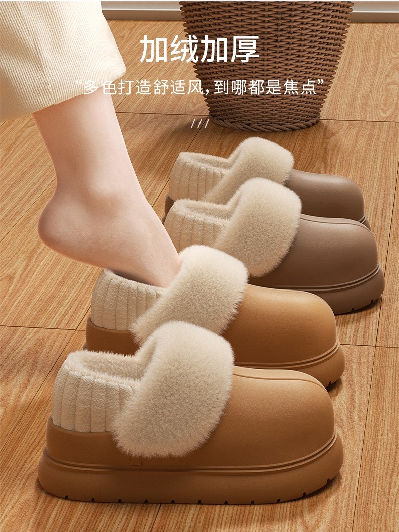 2025 New Cotton Slippers for Women, Autumn and Winter Home Indoor Non-Slip Cotton Shoes, Warm Thick-Soled Fleece-Lined Cotton Slippers for Women