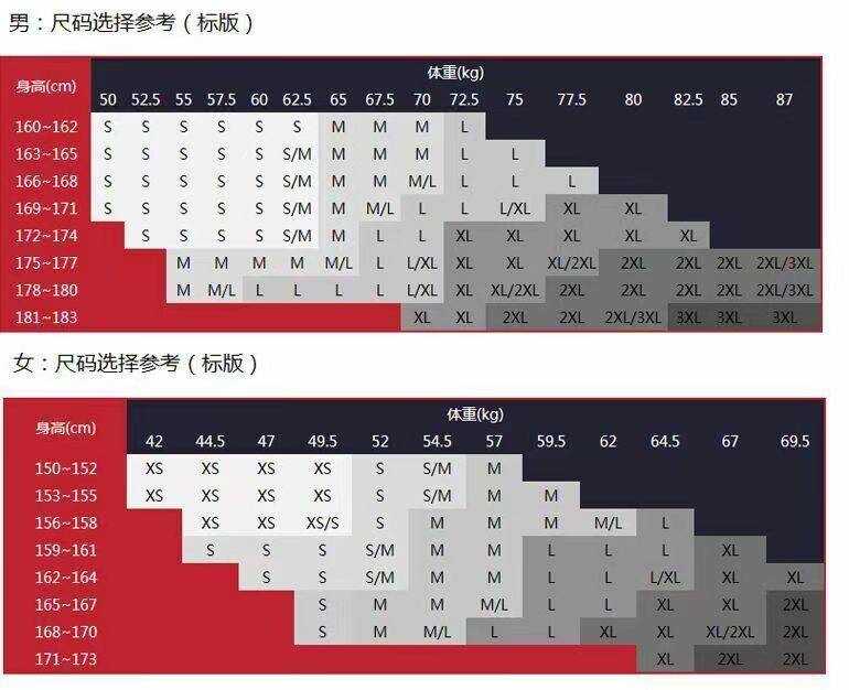 China (cm) 160-165/84-86 165-170 / 88-90 167-172 / 92-96 168-173 / 98-102 170-176 / 106-110